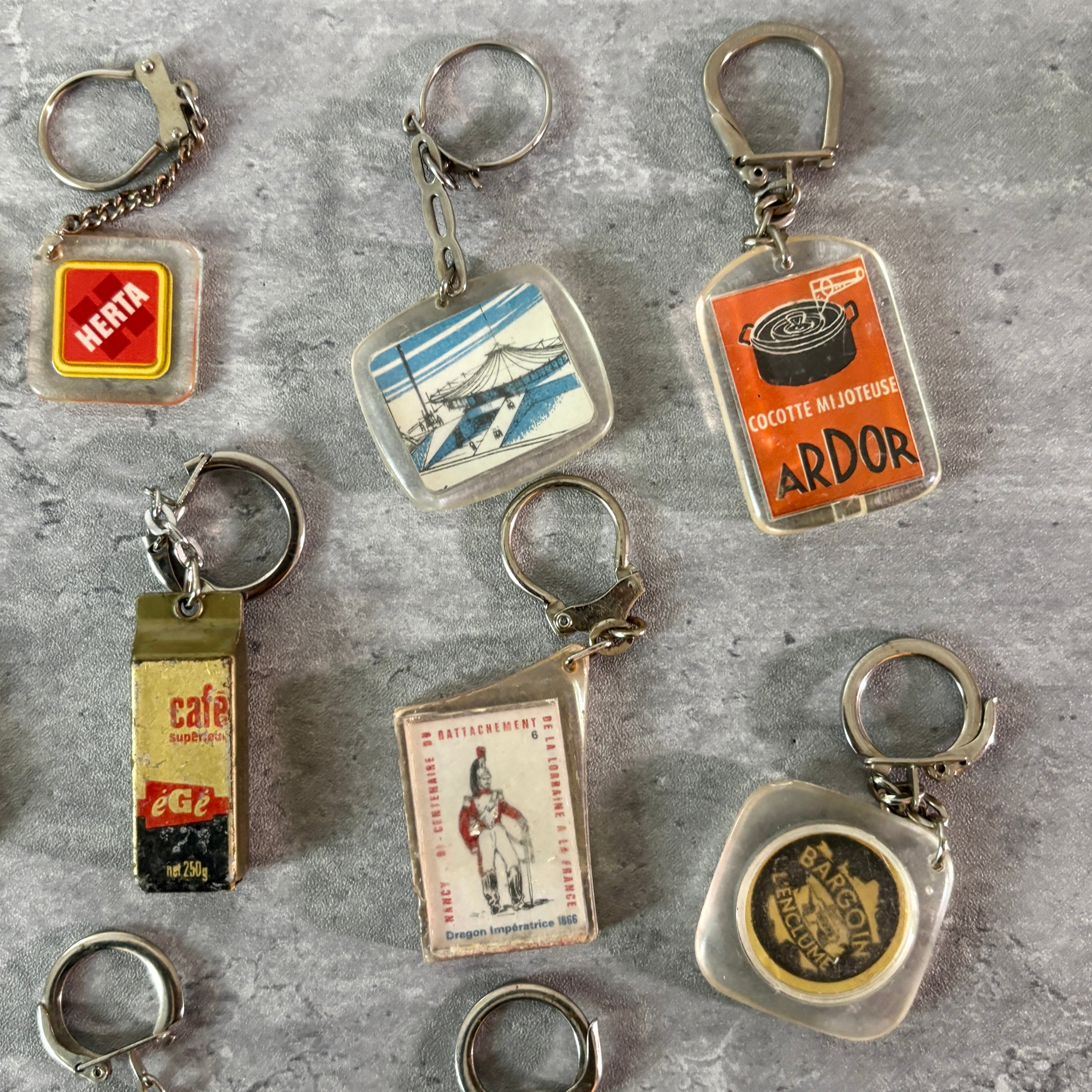 1950年ごろのレトロな雰囲気が楽しいフレンチキーホルダー。