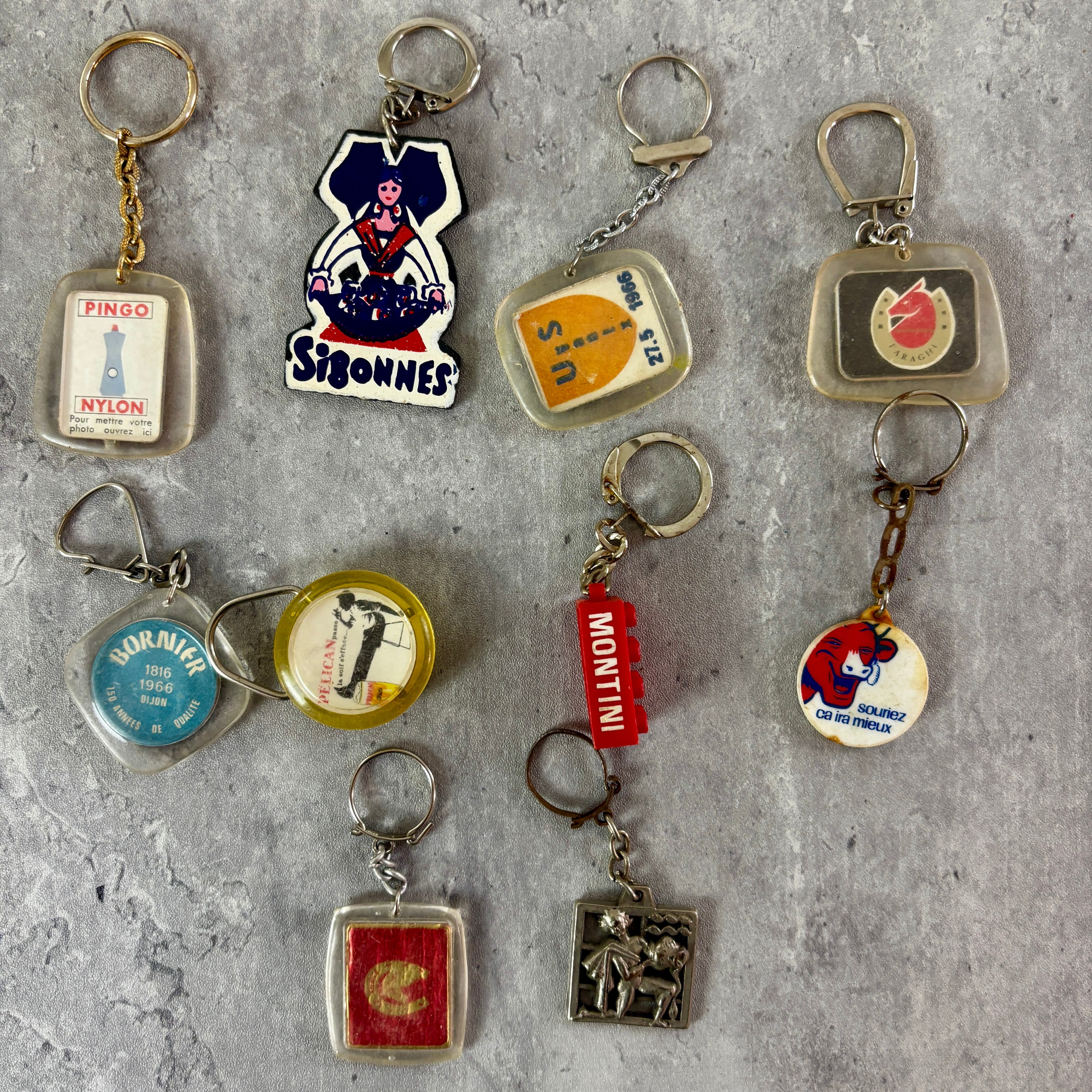 1950年ごろのレトロな雰囲気が楽しいフレンチキーホルダー。
