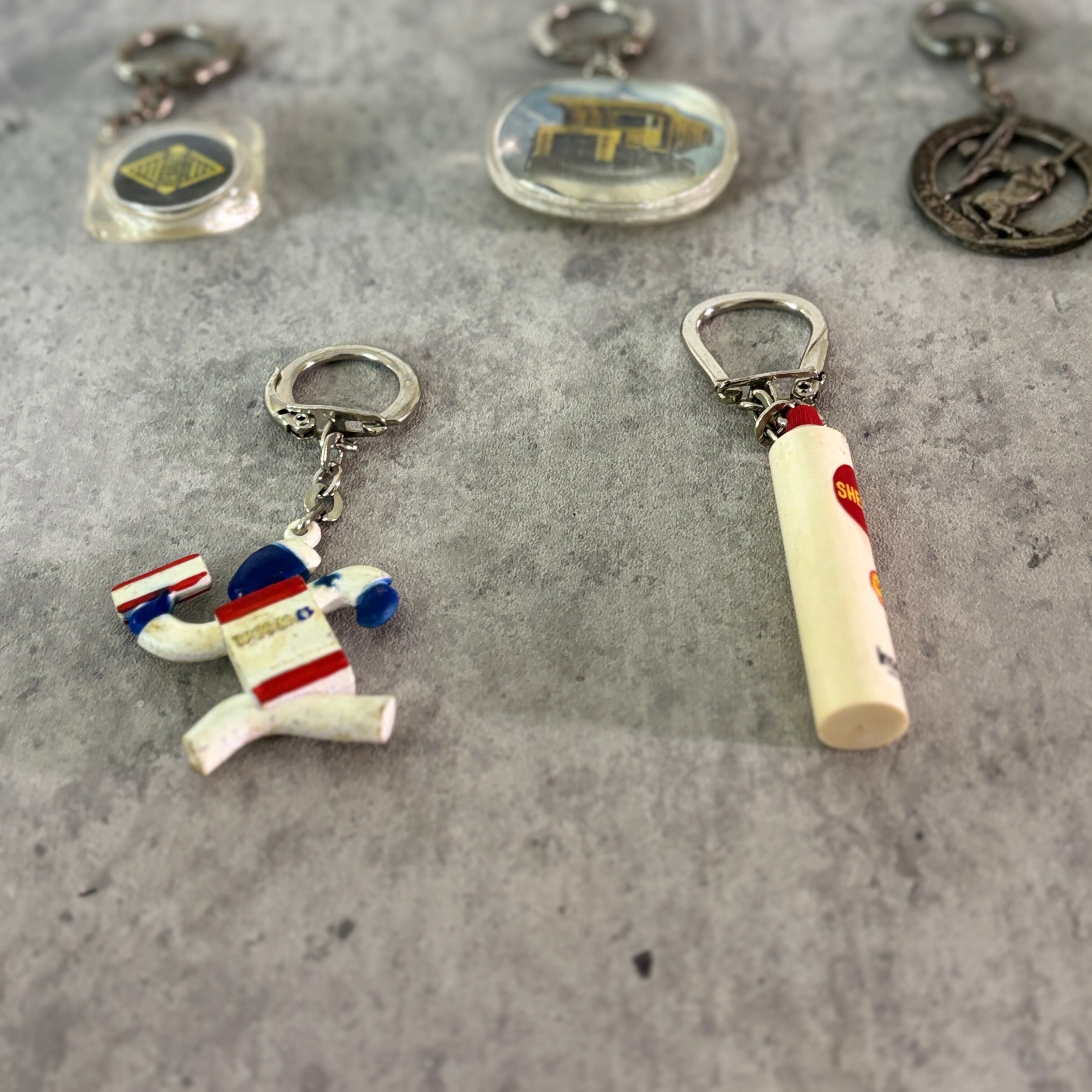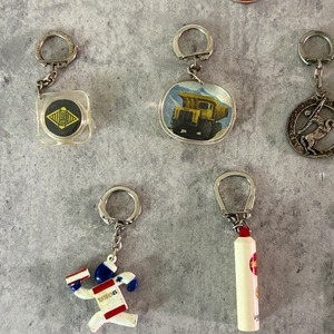 企業モノも多くて、なんだかワクワクするキーホルダーが多い印象。