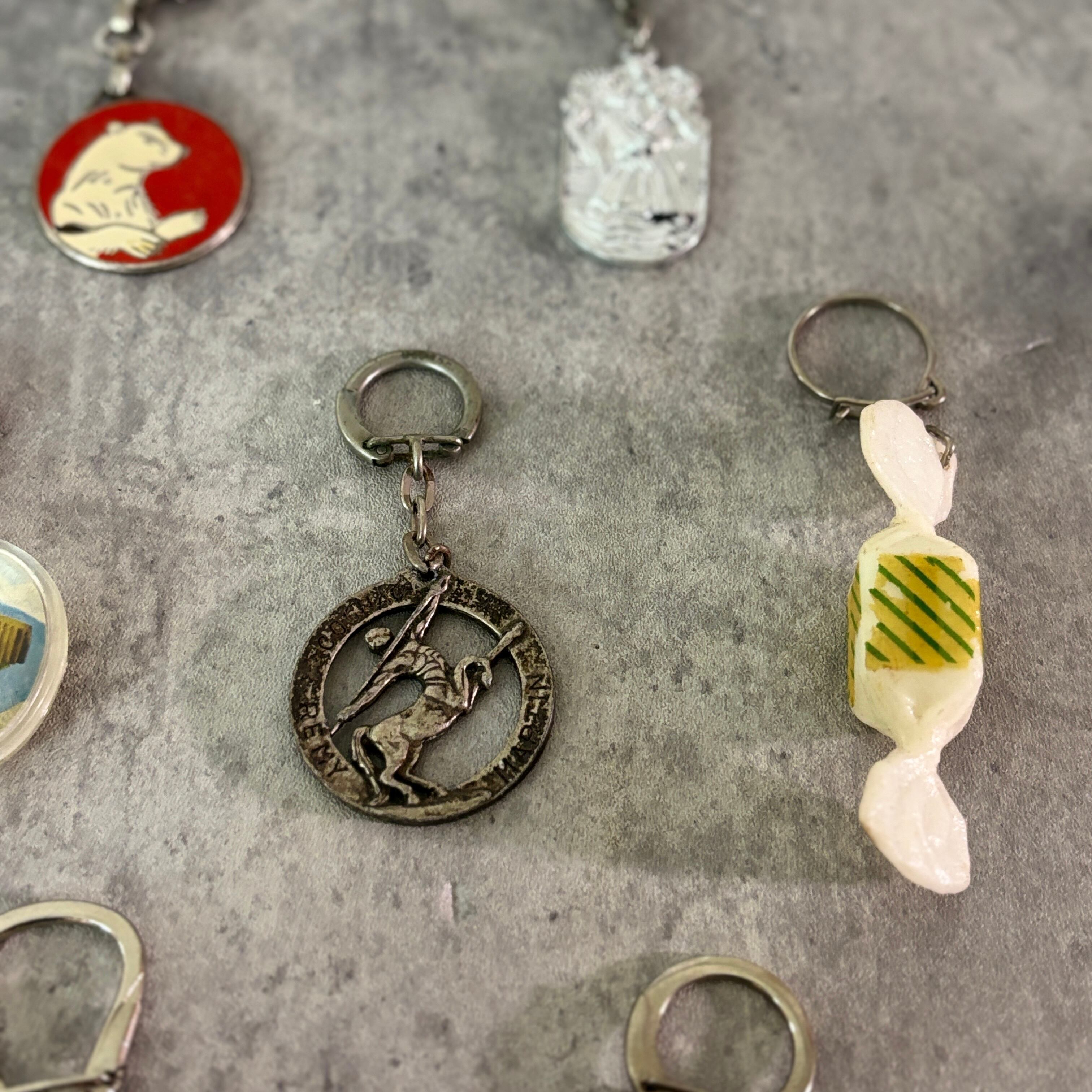 1950年ごろのレトロな雰囲気が楽しいフレンチキーホルダー。