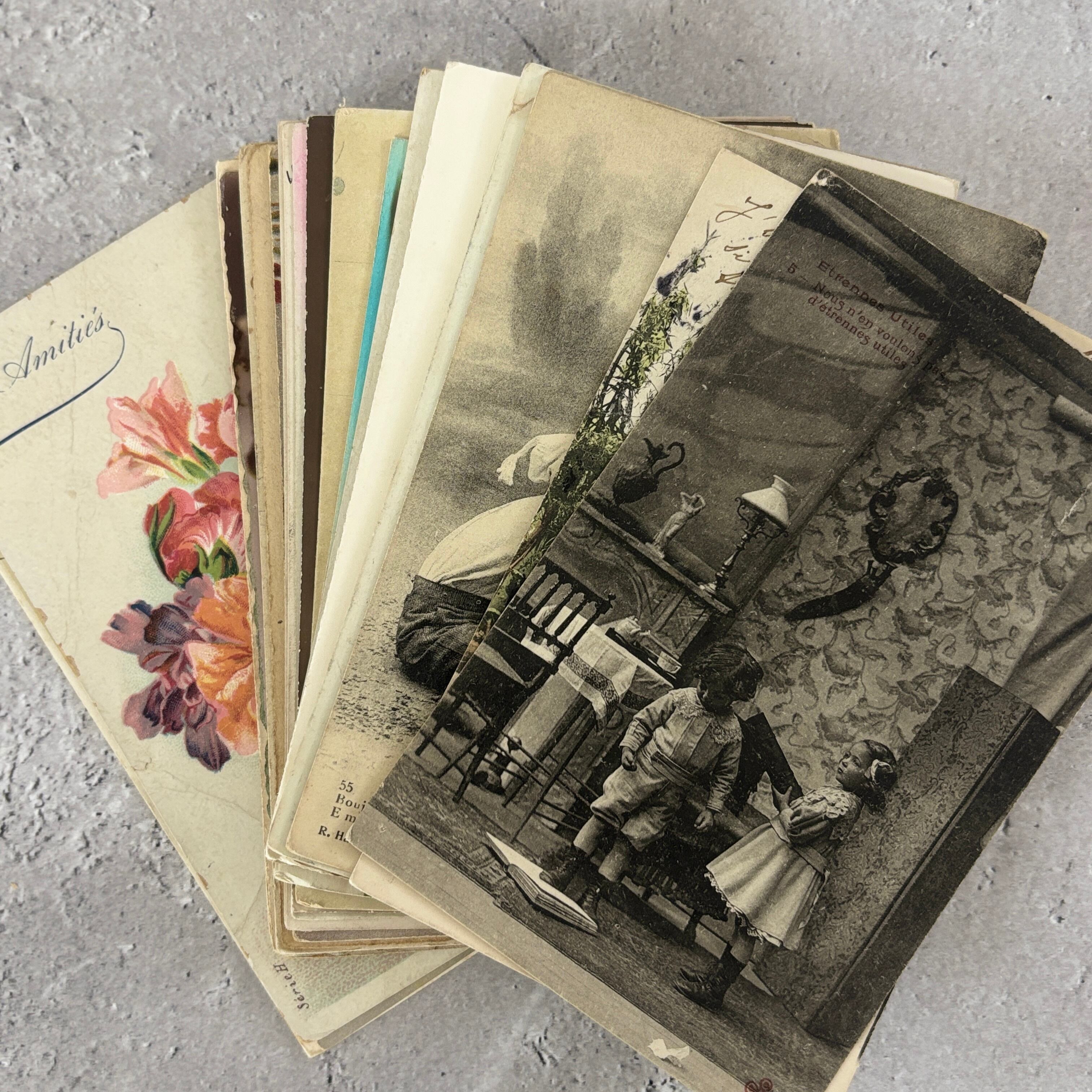 **訳あり**フランス ポストカード 30枚 雑貨 アンティーク 海外 ヴィンテージ 紙もの ジャンクジャーナル インテリア コラージュ 2408005-32