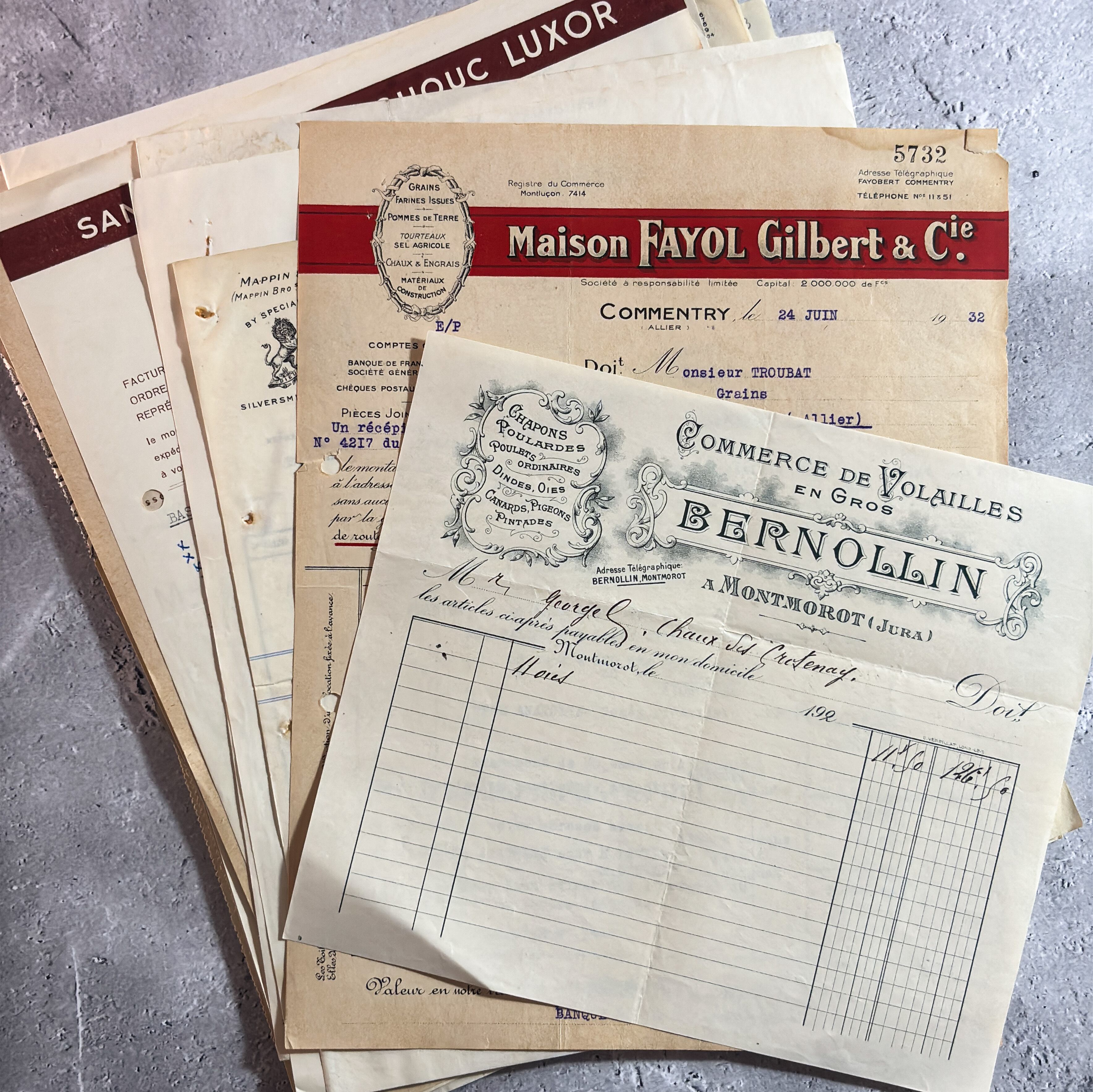 30枚 1900年〜 アンティーク 紙ものフランス 伝票類 領収書 ジャンクジャーナル 2412032-15