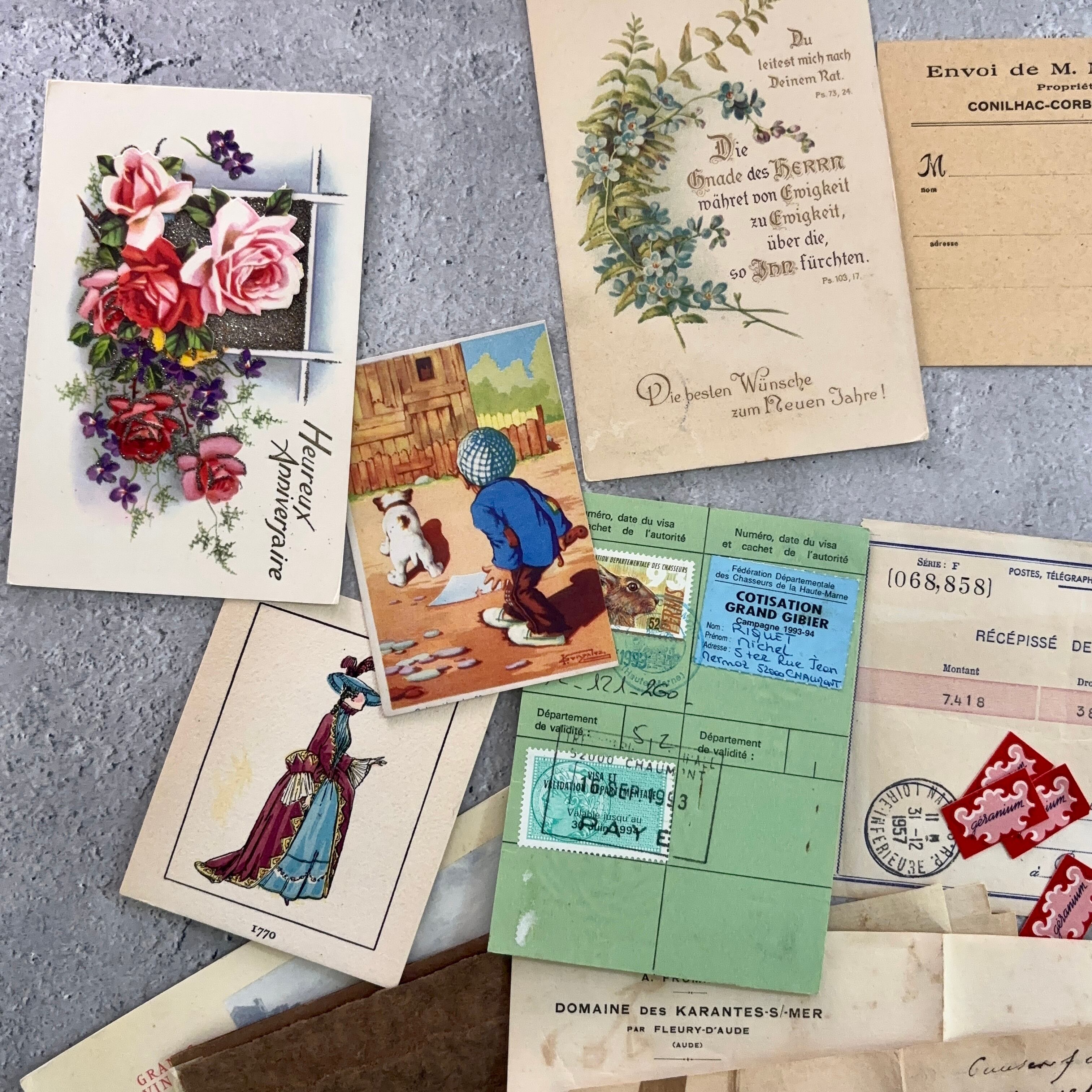 40ピース 1900年〜 アンティーク いろいろな古い紙 ジャンクジャーナル 2210063-9