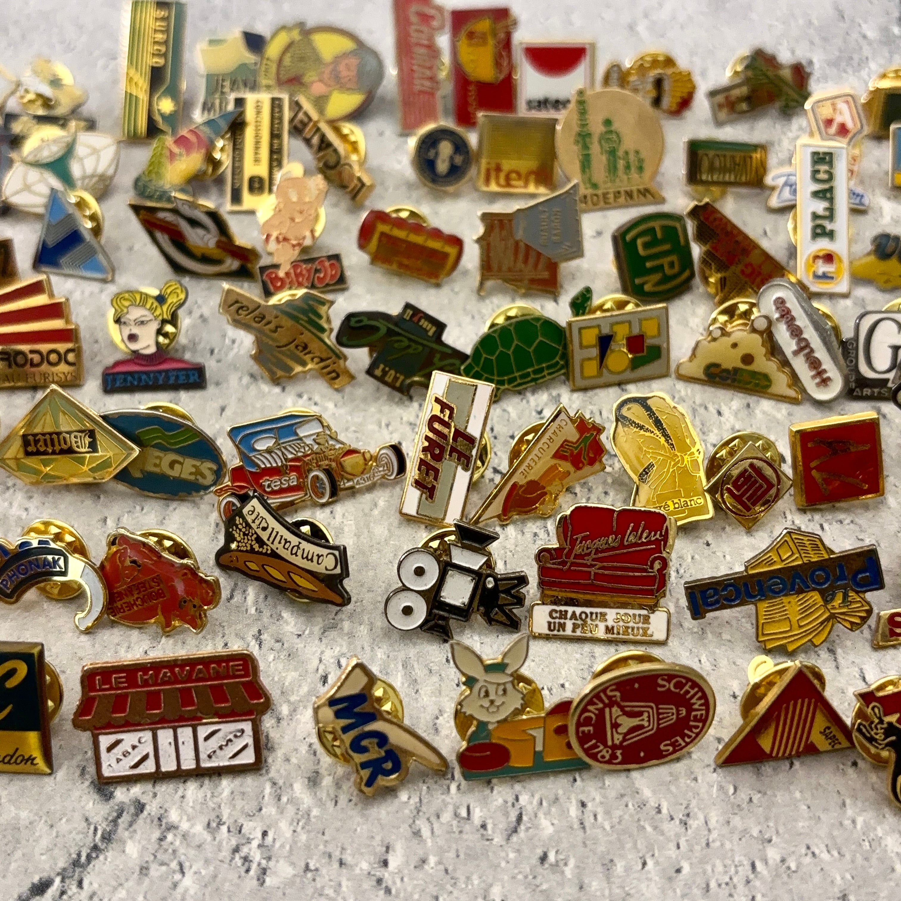 *小ぶり* 100個 フランス雑貨 ヴィンテージ ピンバッジ ピンズ France pins Pin badge vintage 古着 通販 リメイク ブローチ アタッチメント付属 雑貨 2508007_2506011-1