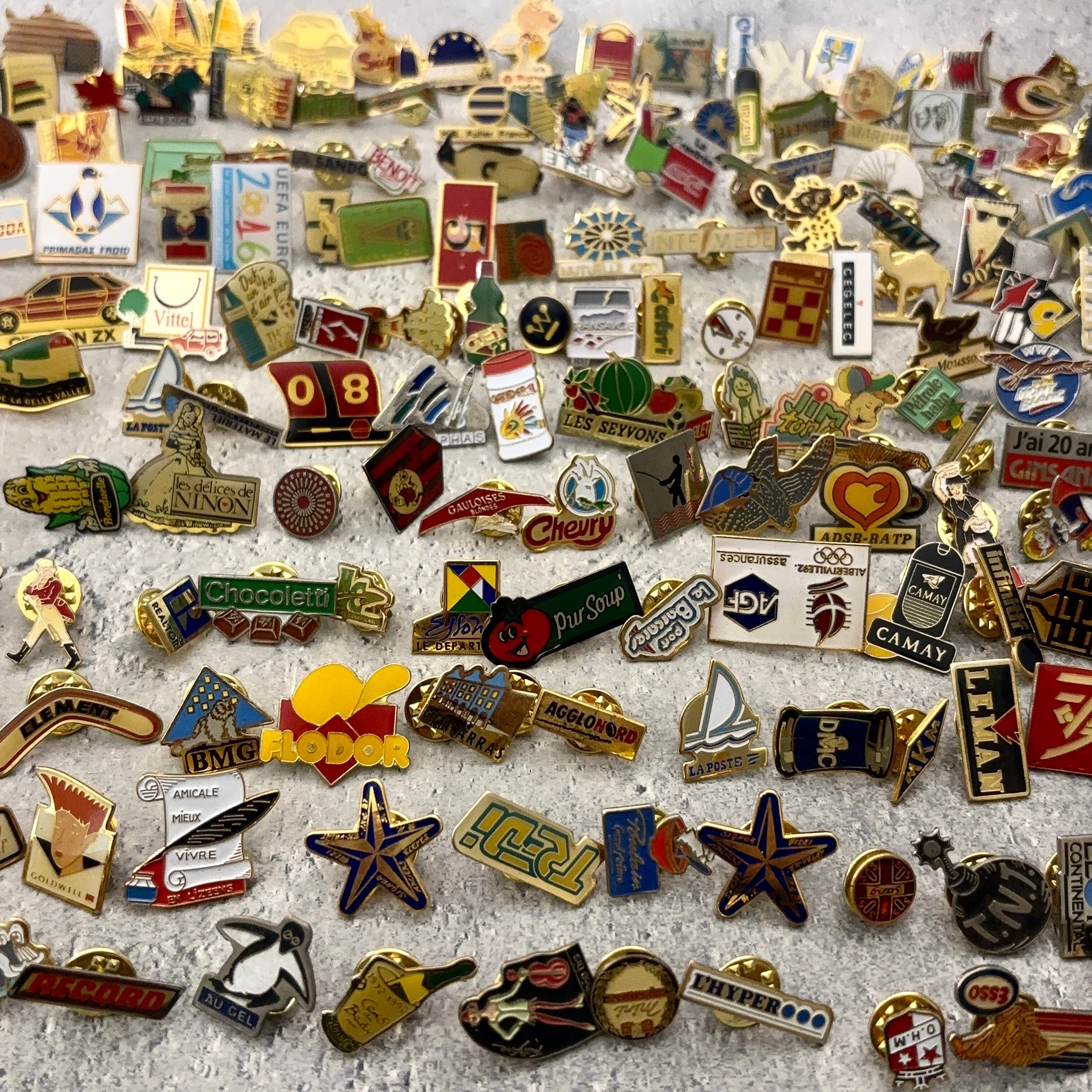 *ダブりあり・小ぶりサイズ*175個 フランス雑貨 ヴィンテージ ピンバッジ ピンズ France pins Pin badge vintage 古着 通販 リメイク ブローチ アタッチメント付属 雑貨 2506028_2506011