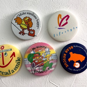 5個 ヴィンテージ レトロ 缶バッジ vintage ビンテージ 古着 通販 リメイク 雑貨 2508010-2