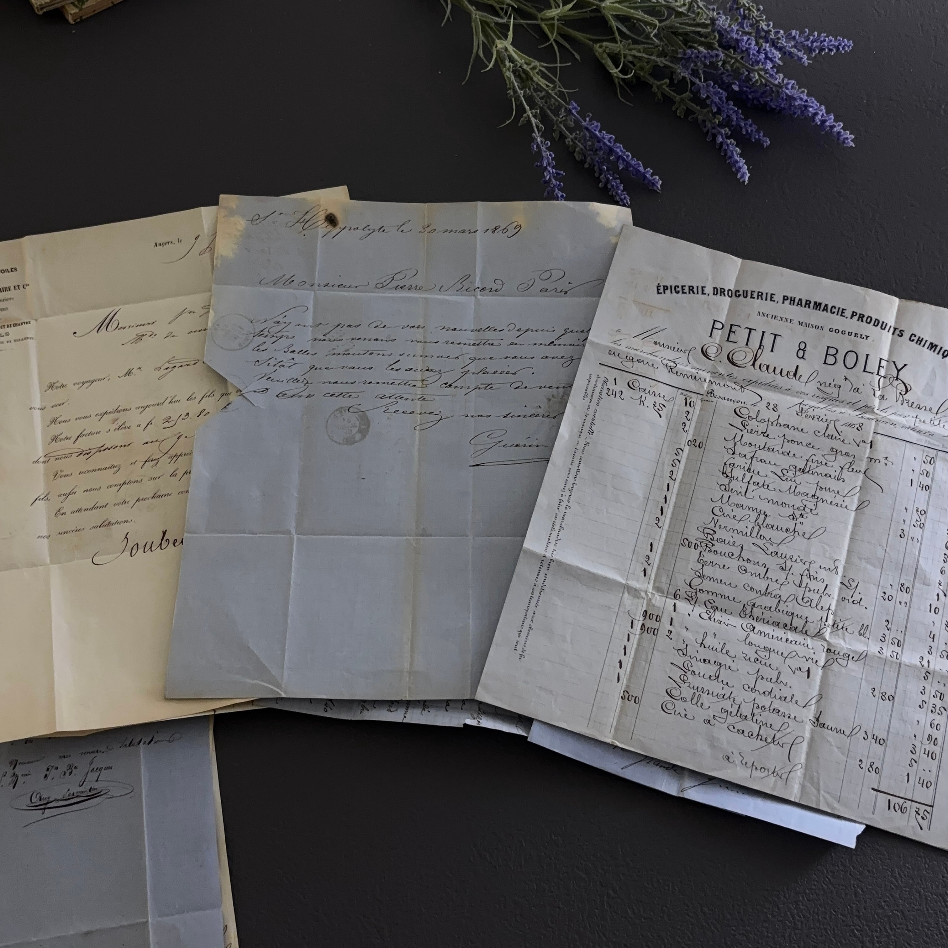 フランス各地から届いた実逓書簡。