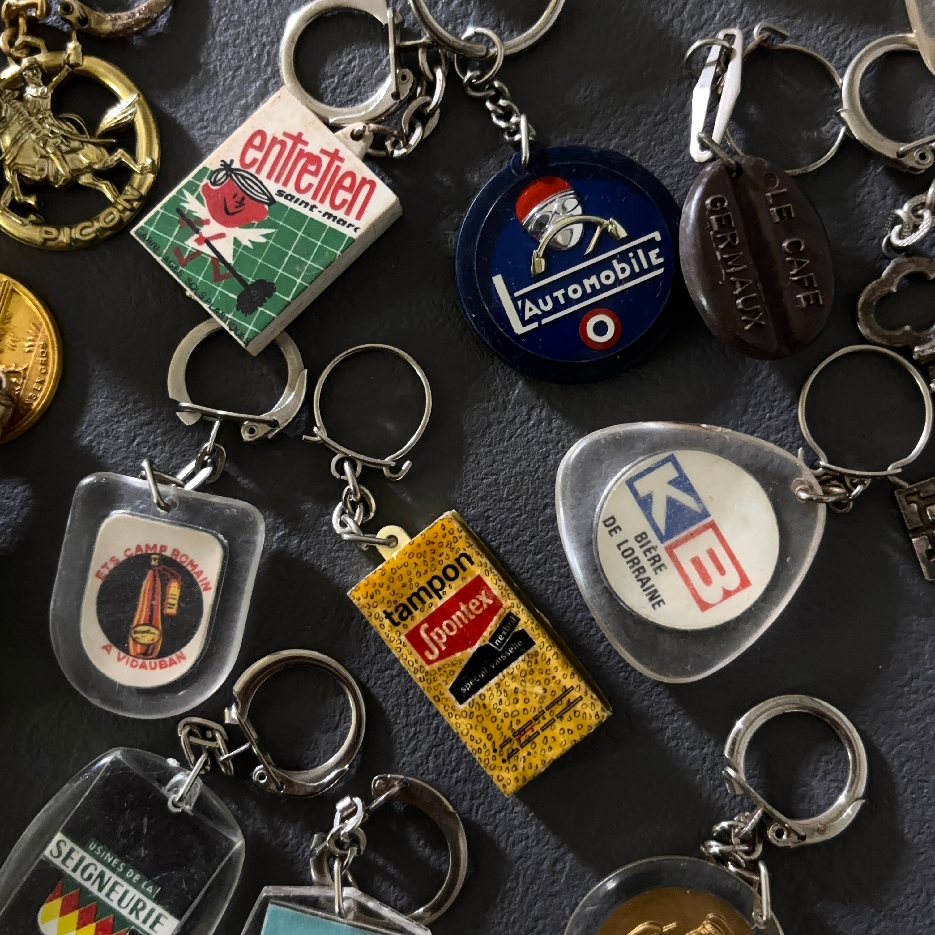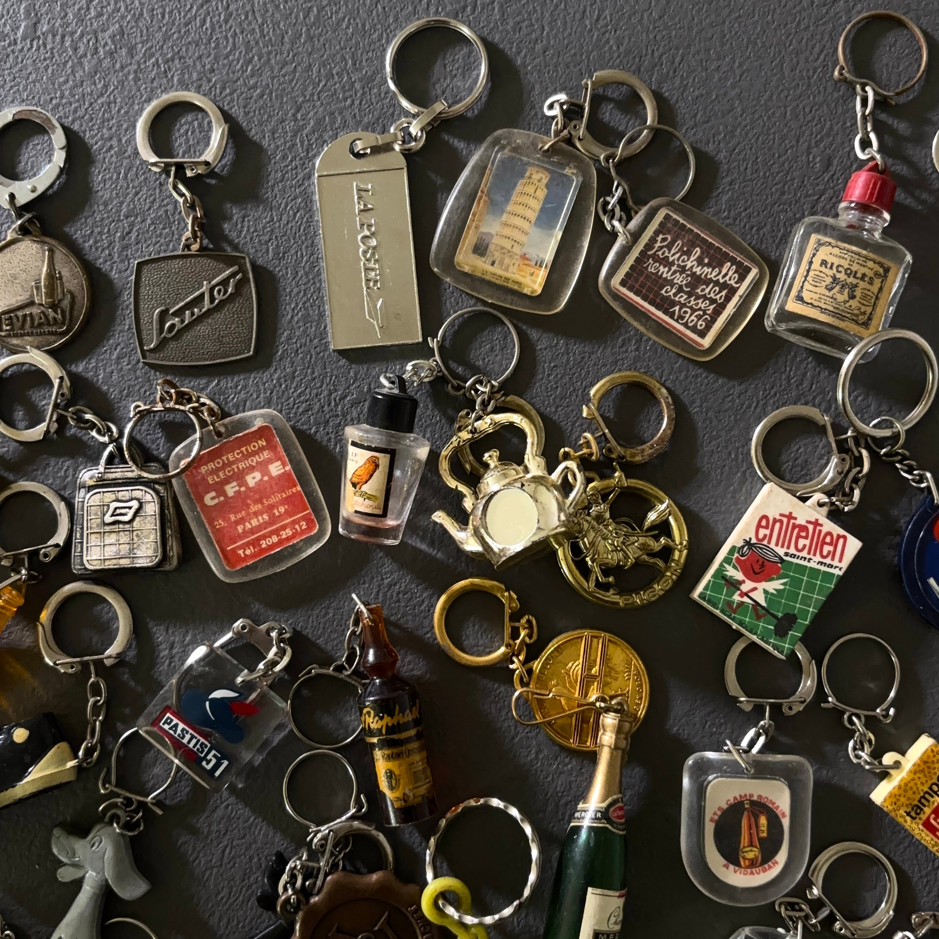 1950年ごろのレトロな雰囲気が楽しいフレンチキーホルダー。