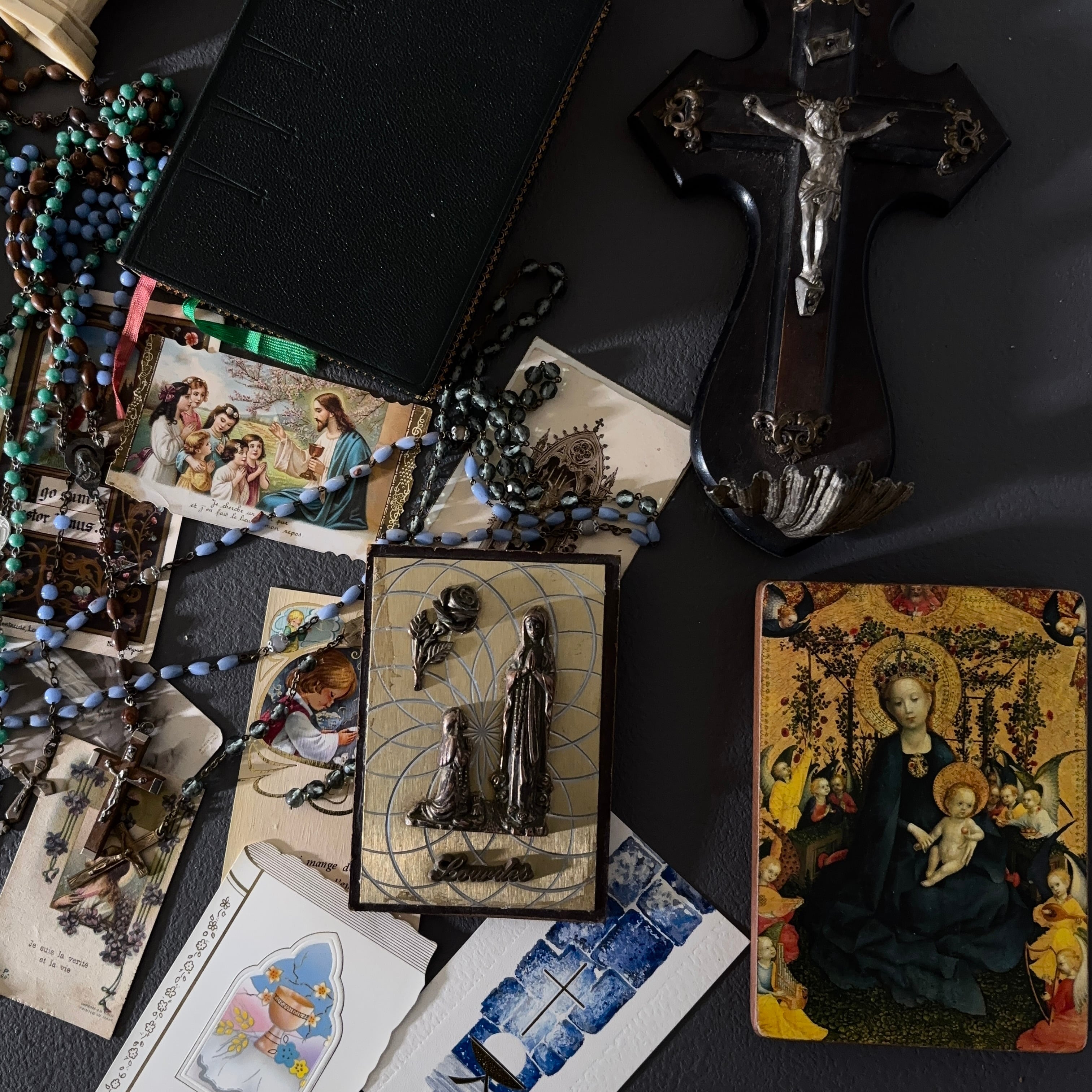 聖品まとめ売り フランス アンティーク 壁掛け ミゼル 十字架 聖像レリーフ ロザリオ など ヴィンテージ 宗教雑貨 2303004-2