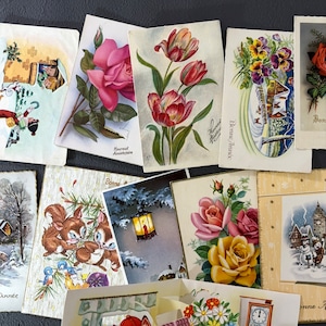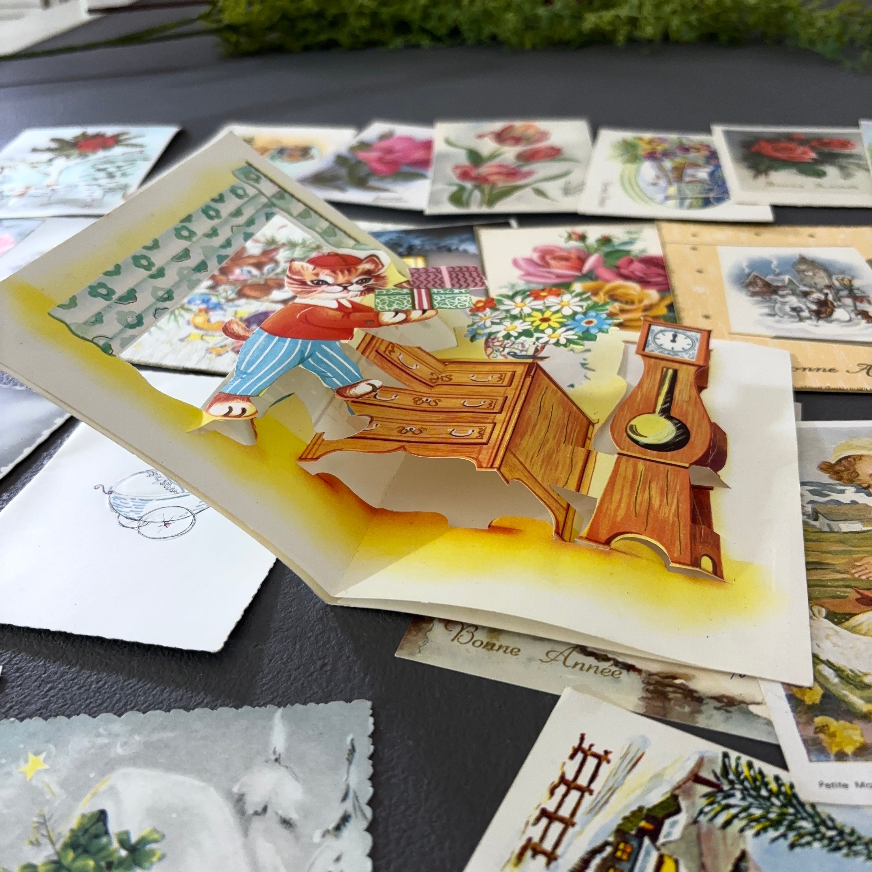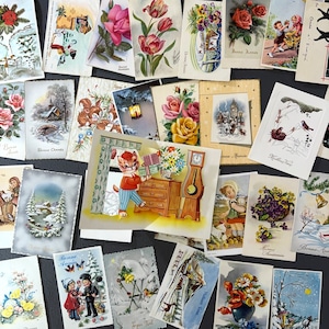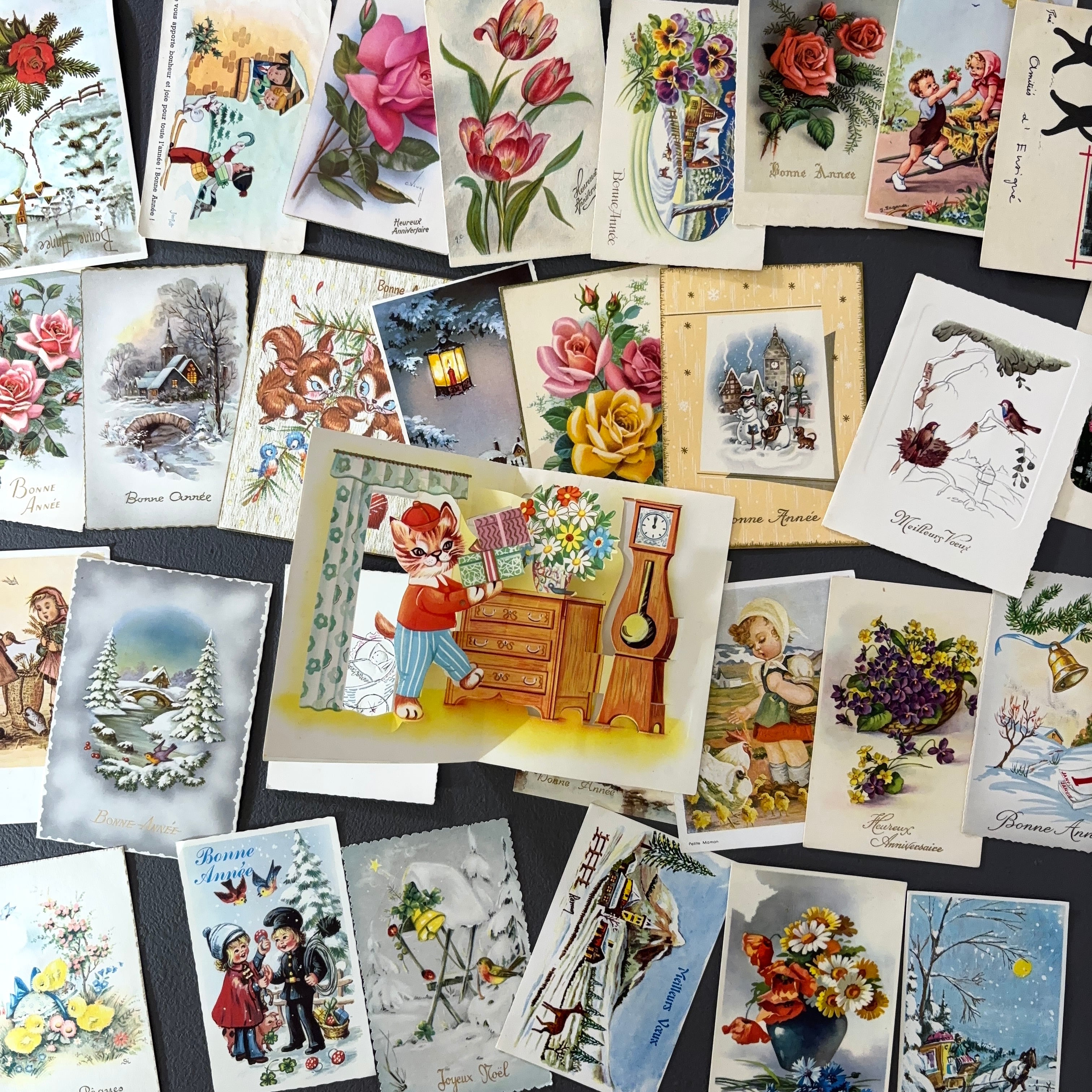 フランス ヴィンテージ グリーティングカード ポストカード 30枚 雑貨 花柄・風景・立体ポップアップ入り 紙もの ジャンクジャーナル コラージュ 2305005-2