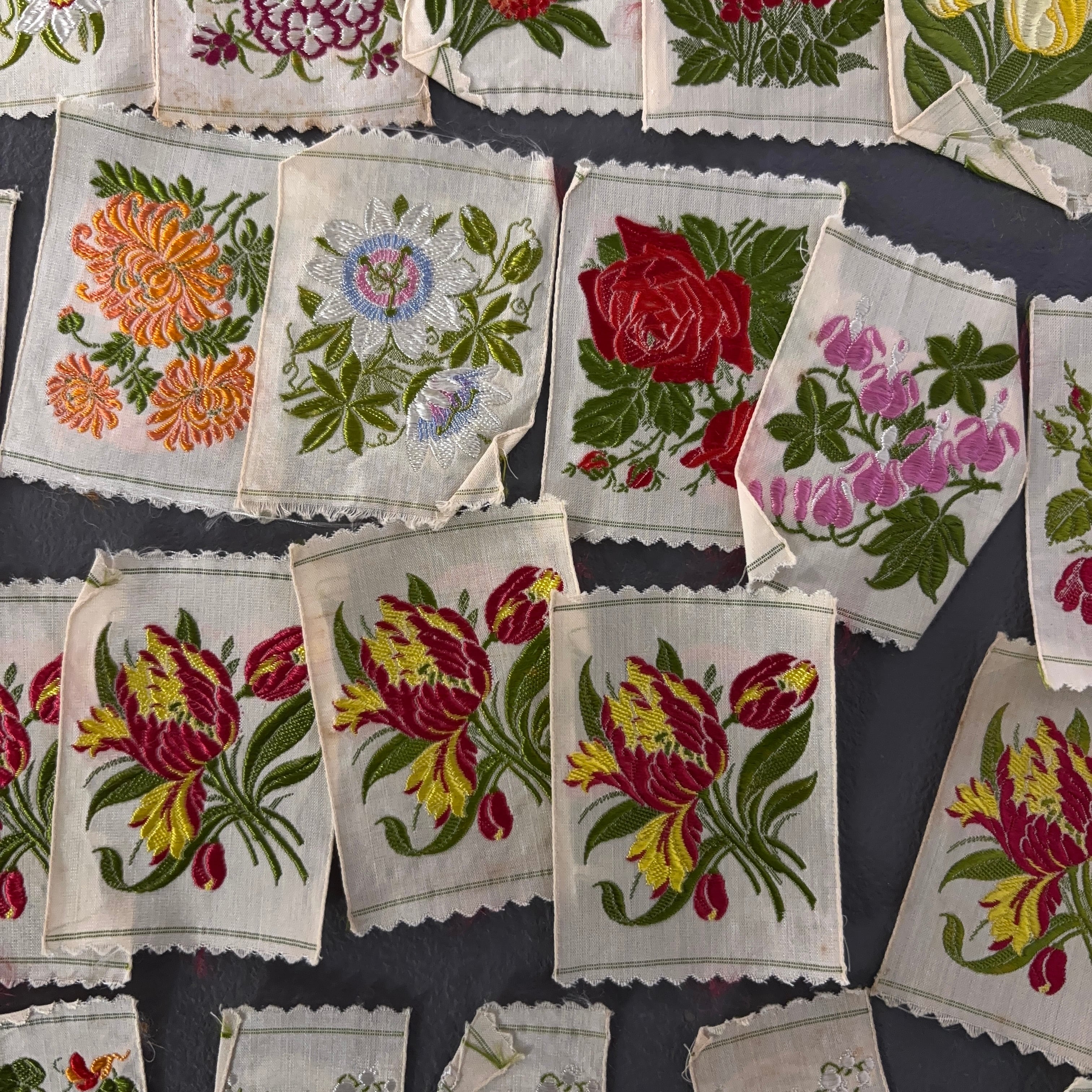 【最後の在庫】英国 イギリス KENSITAS 花刺繍 シルク シガレットカード 46枚 イギリス 英国 花 フラワー 植物 ジャンクジャーナル 2310001-2