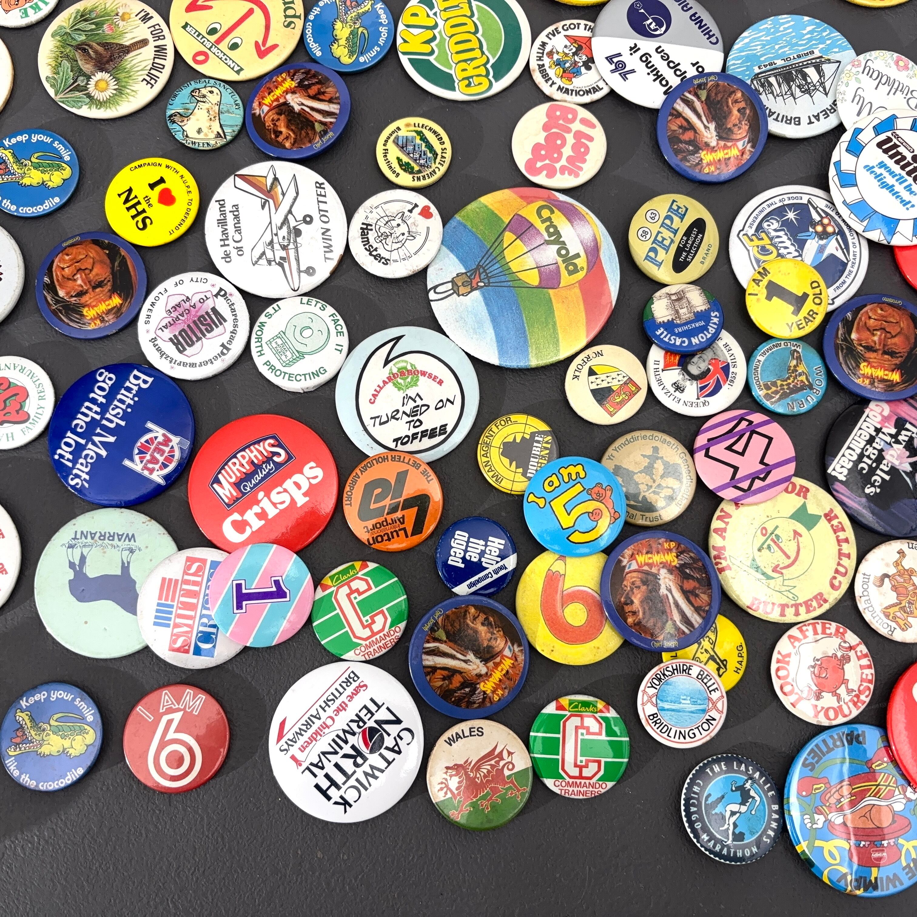 ■裏面黒ずみ個体■ 96個 ヴィンテージ レトロ 缶バッジ vintage ビンテージ 古着 通販 リメイク 雑貨 2509020