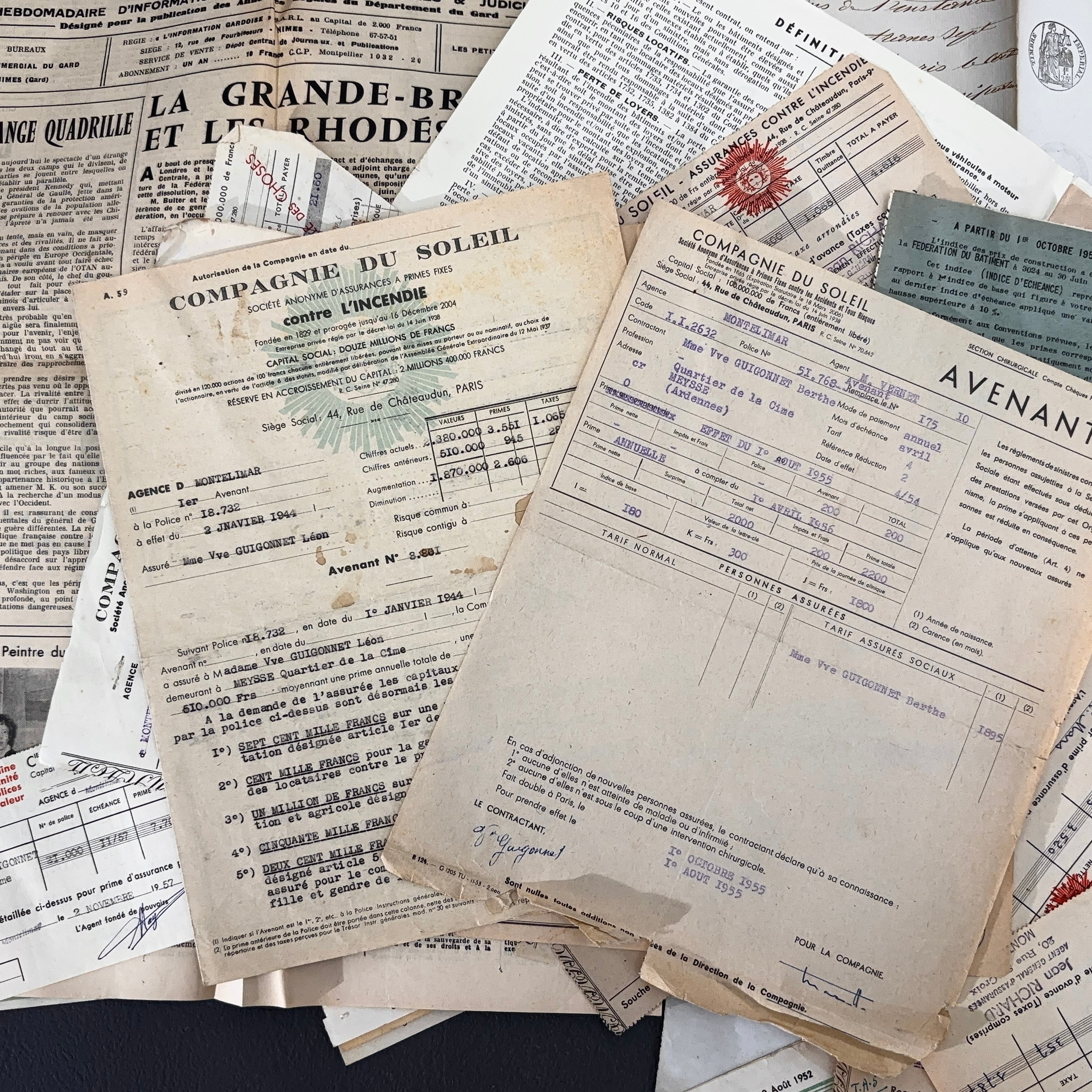 手書き書簡・公式書類・領収書・メモ帳・新聞片・写真など