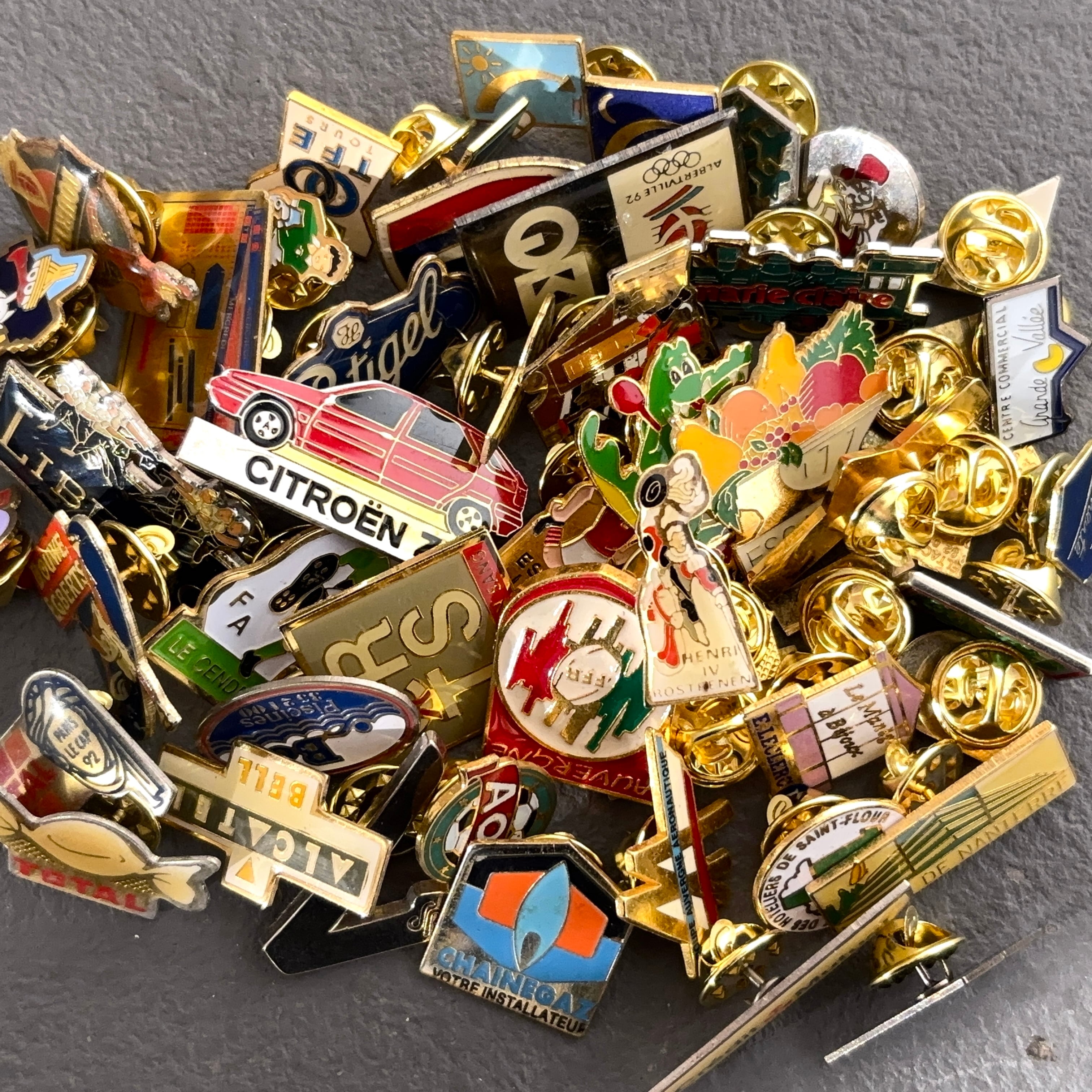 50個 フランス雑貨 ヴィンテージ ピンバッジ ピンズ France pins Pin badge vintage 古着 通販 リメイク ブローチ アタッチメント付属 雑貨 2512004_2511007-1