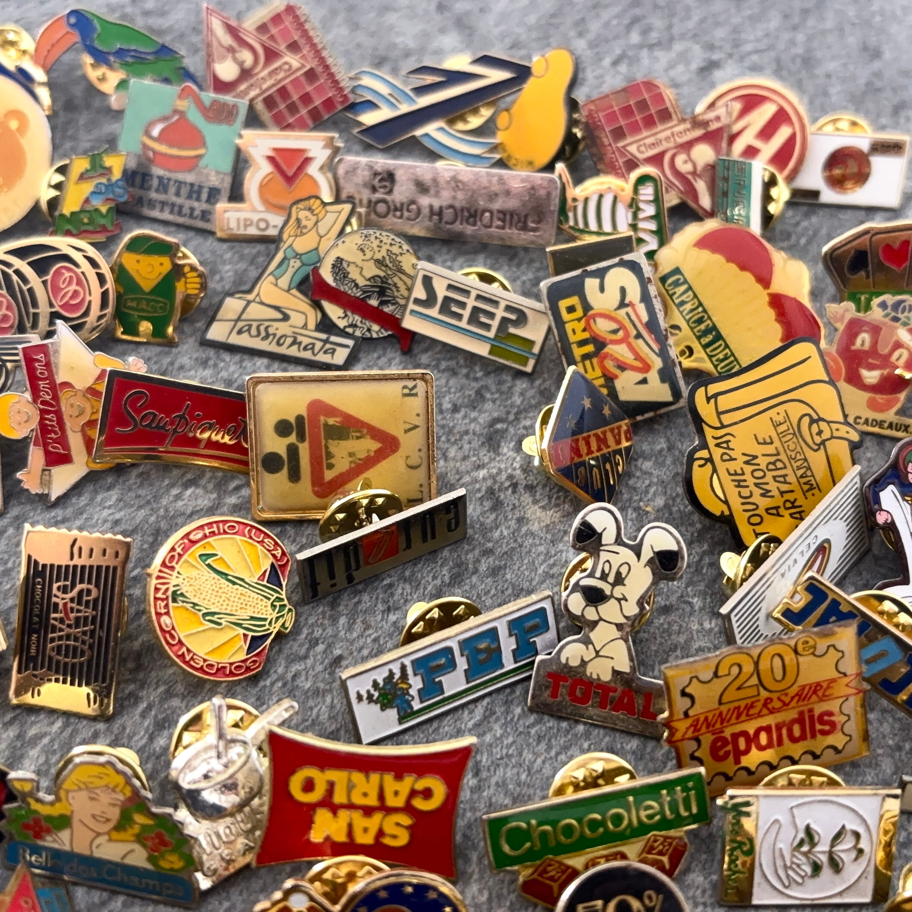 訳あり・150個 フランス雑貨 ヴィンテージ ピンバッジ ピンズ France pins Pin badge vintage 古着 通販 リメイク ブローチ アタッチメント付属 雑貨 2508022_2511007-1