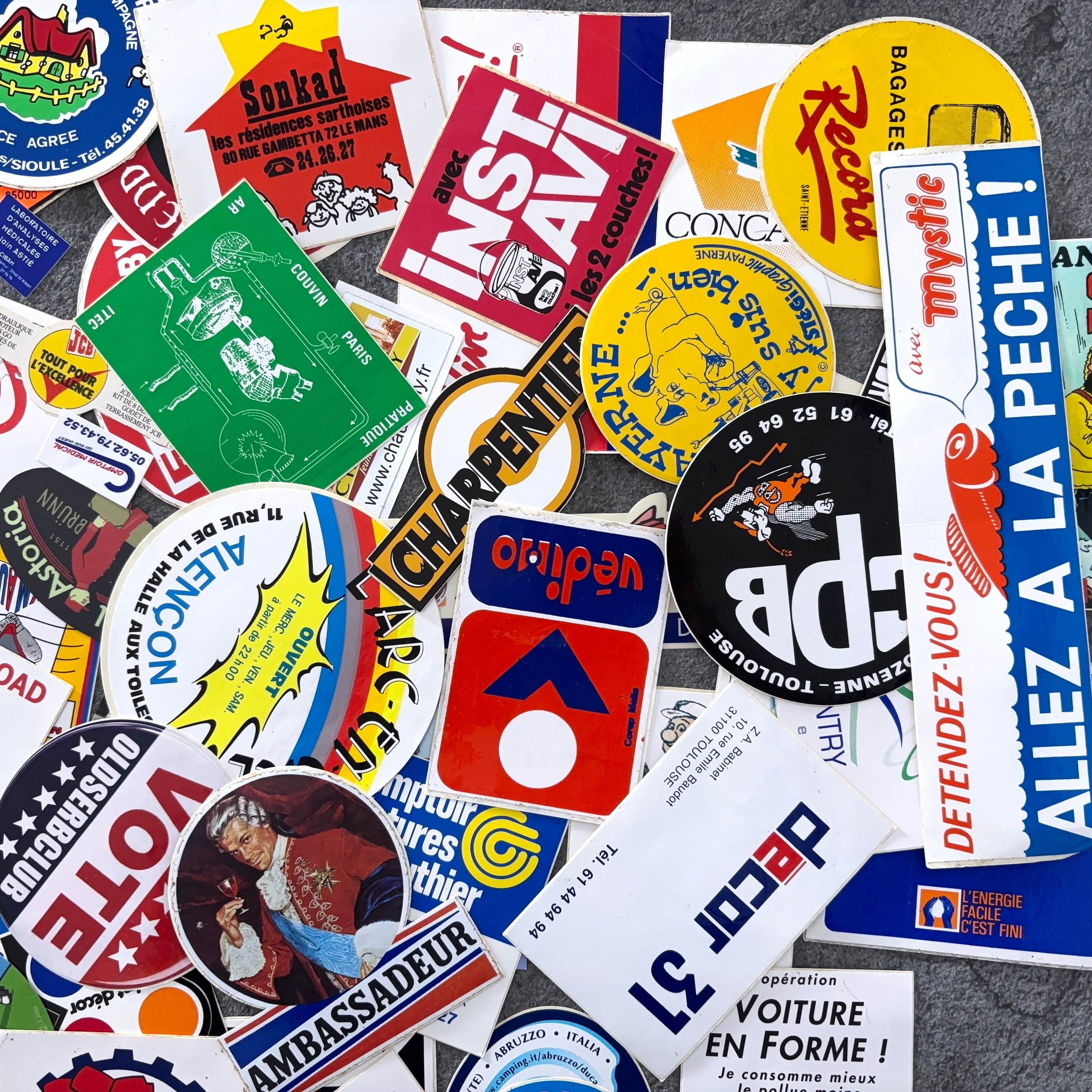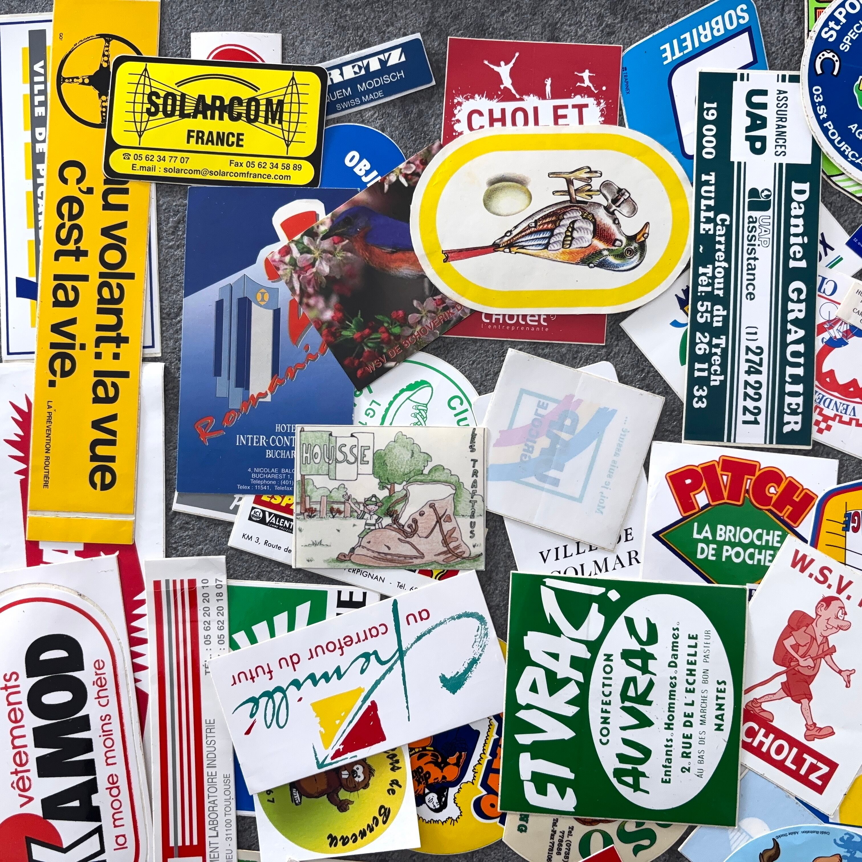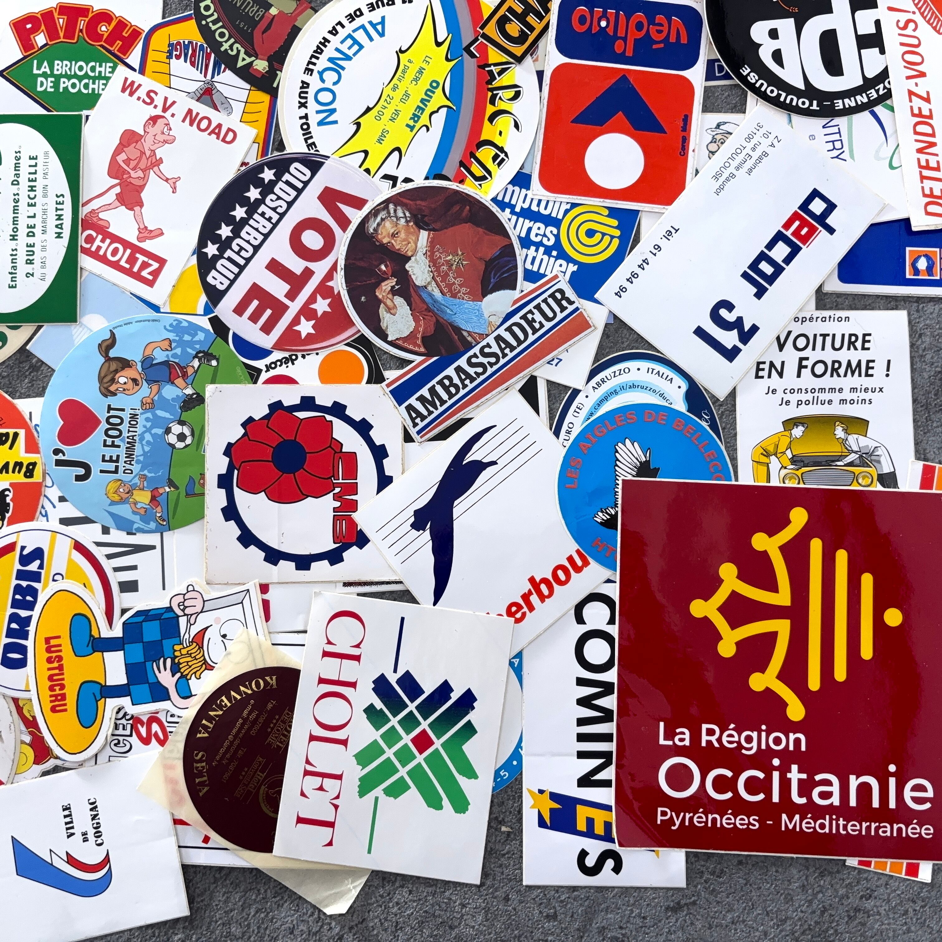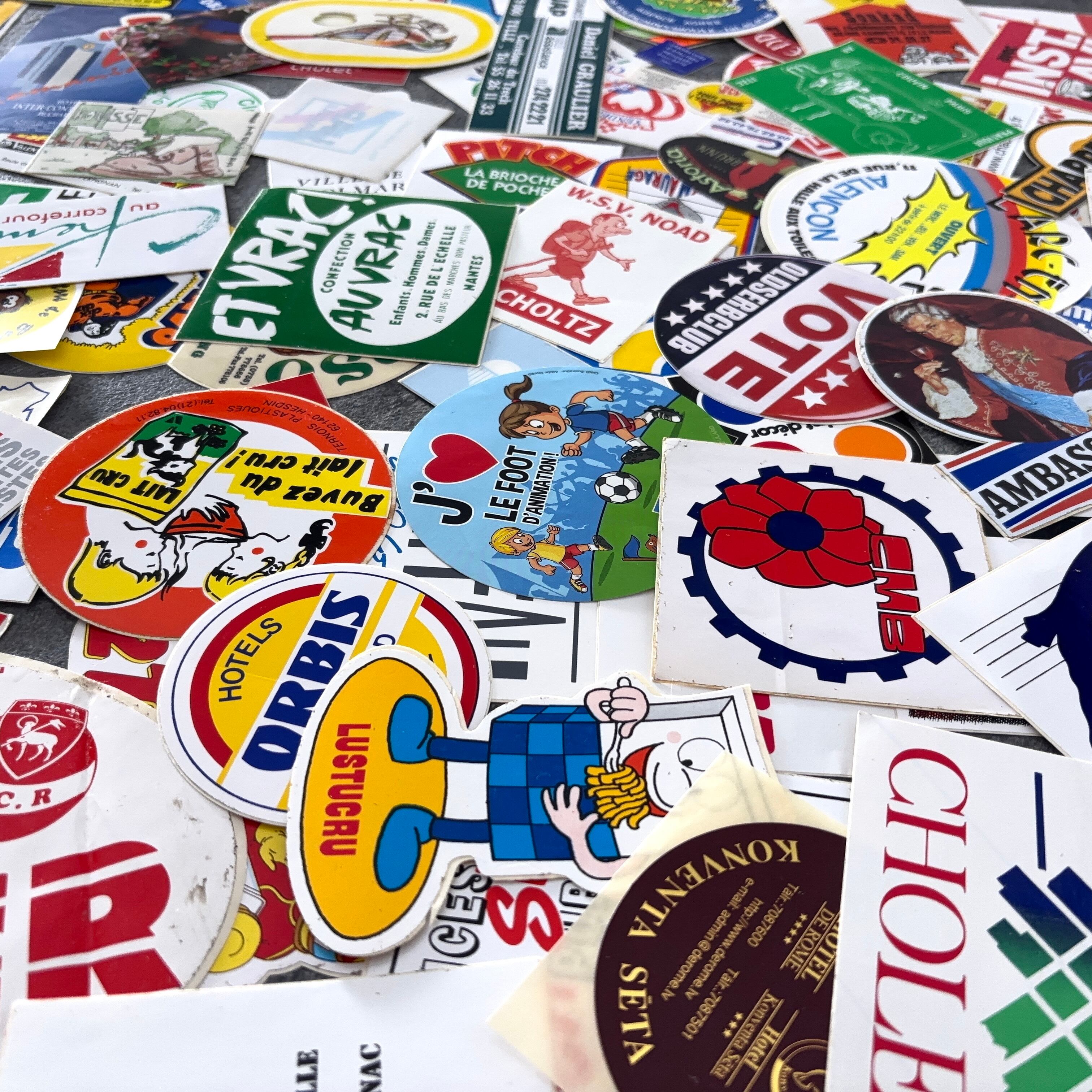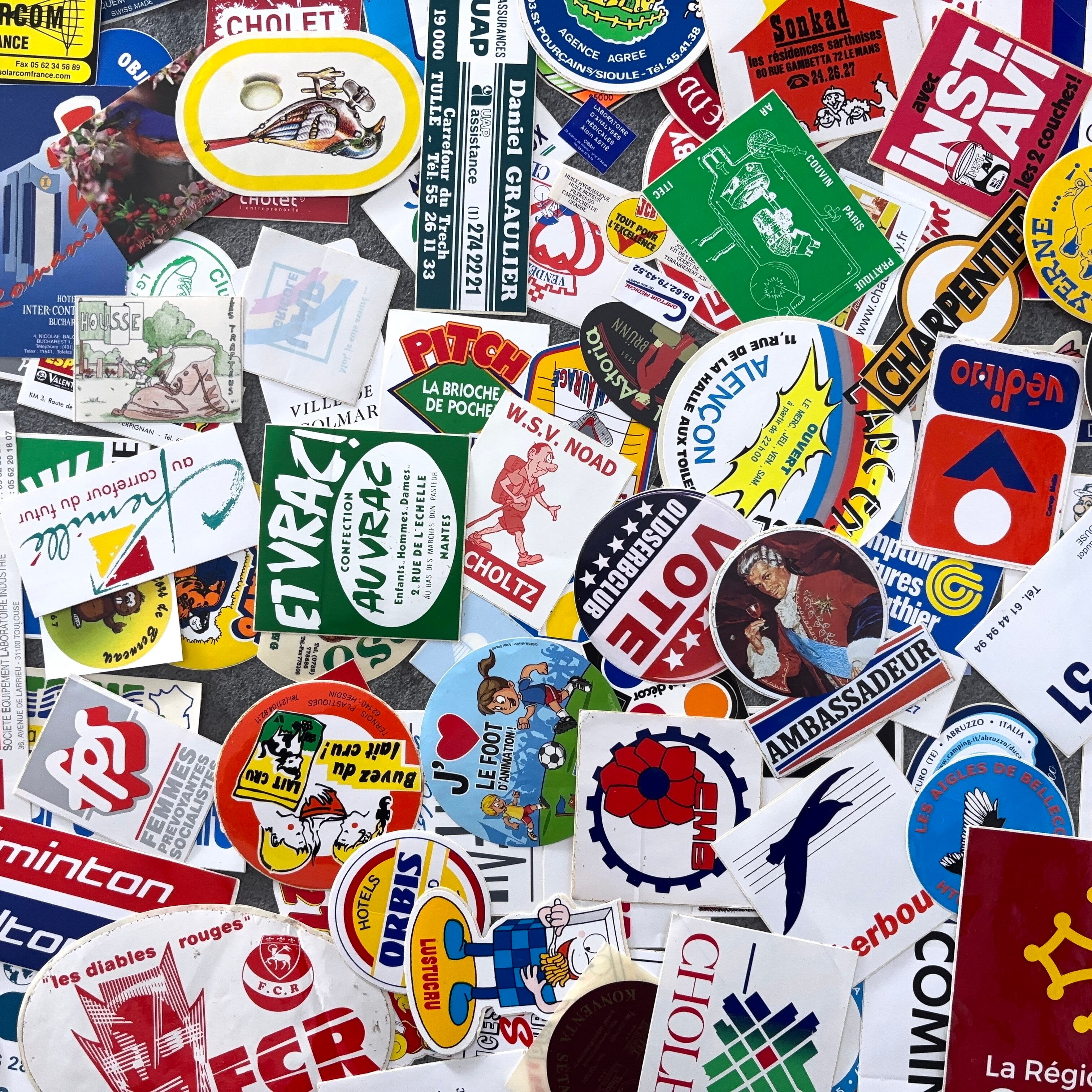 フランスのヴィンテージのステッカー100枚セットとなります。