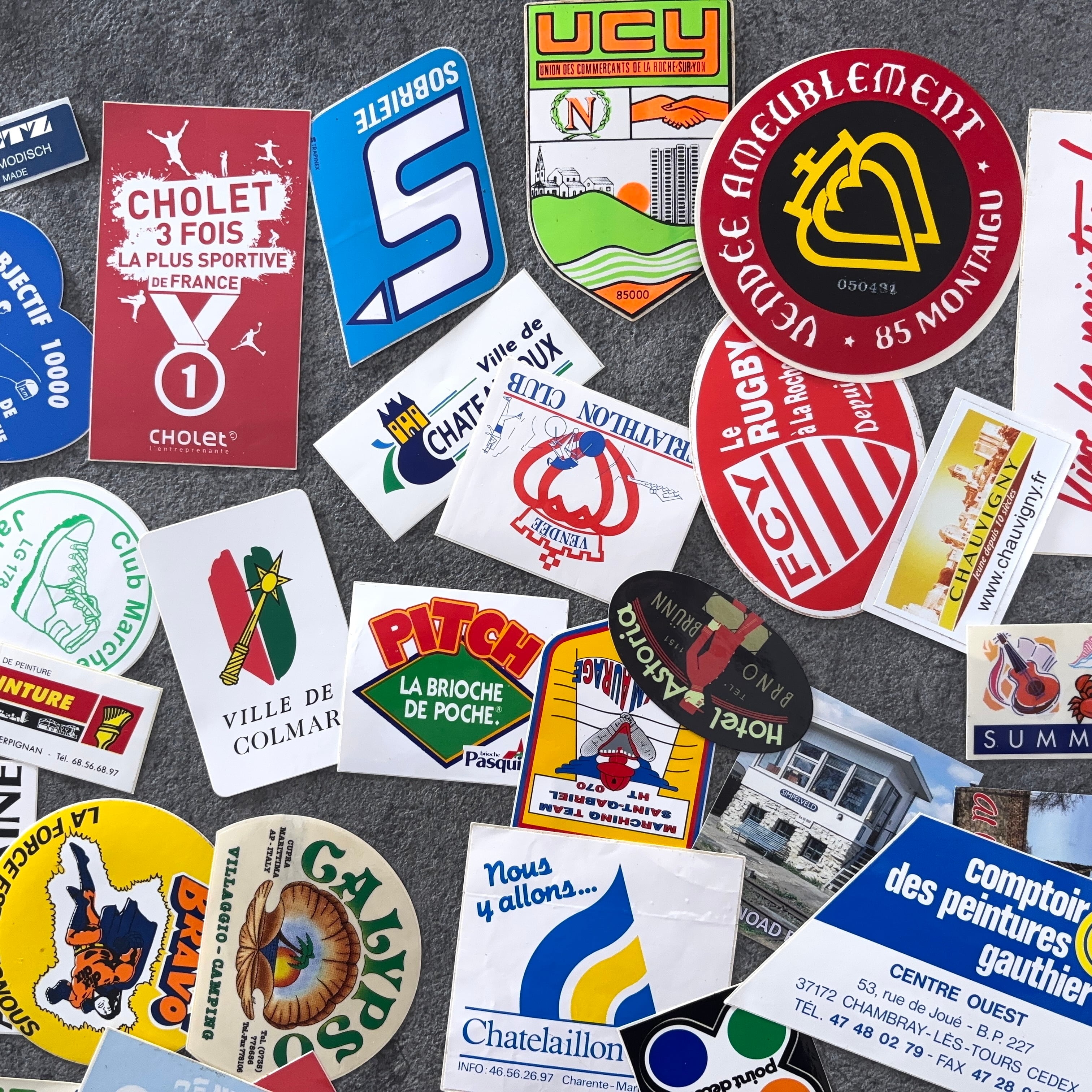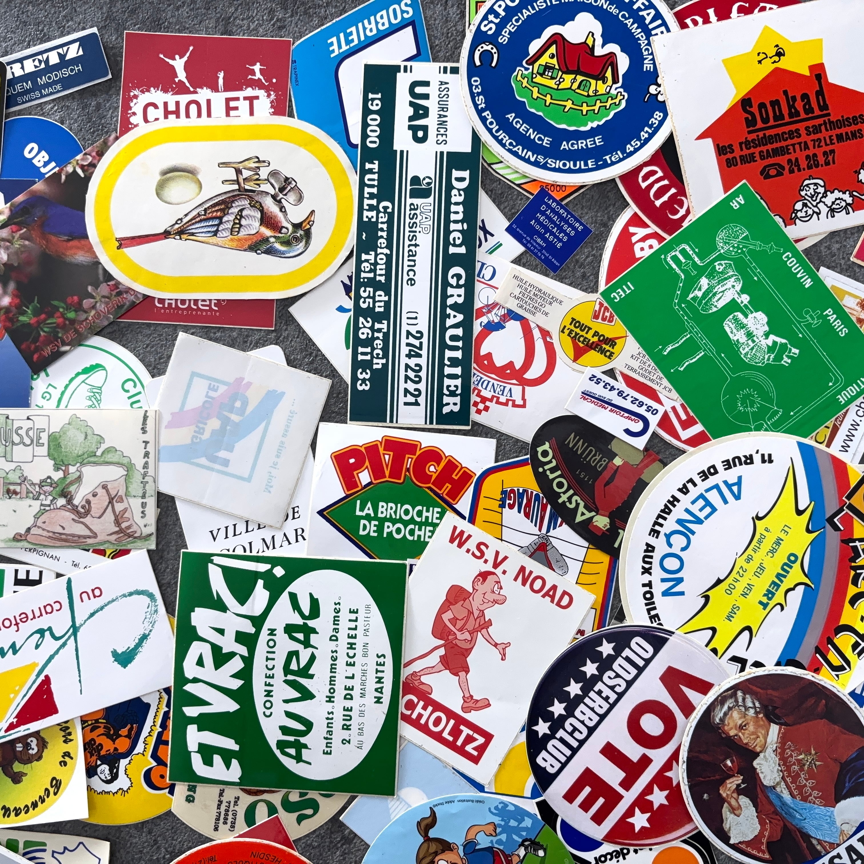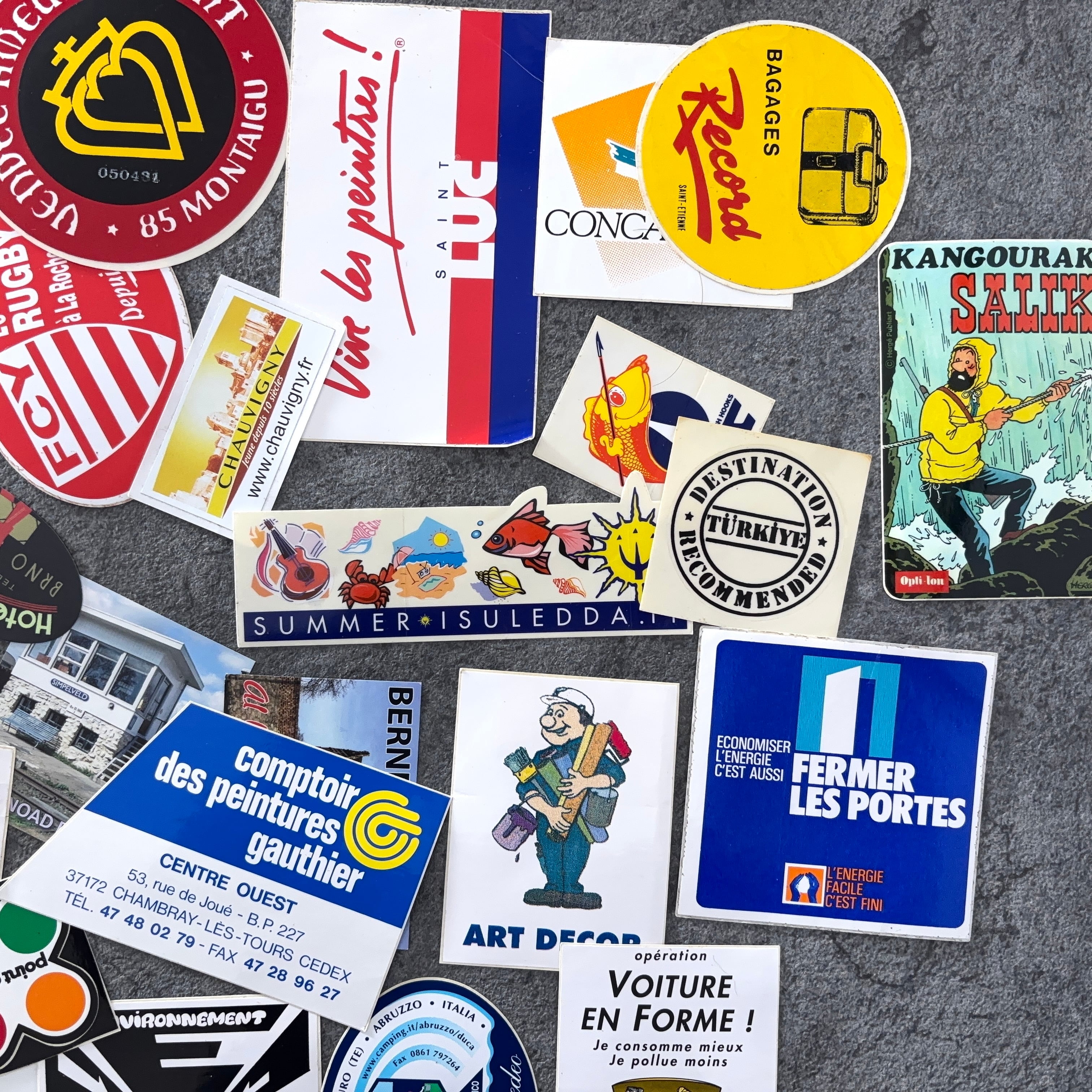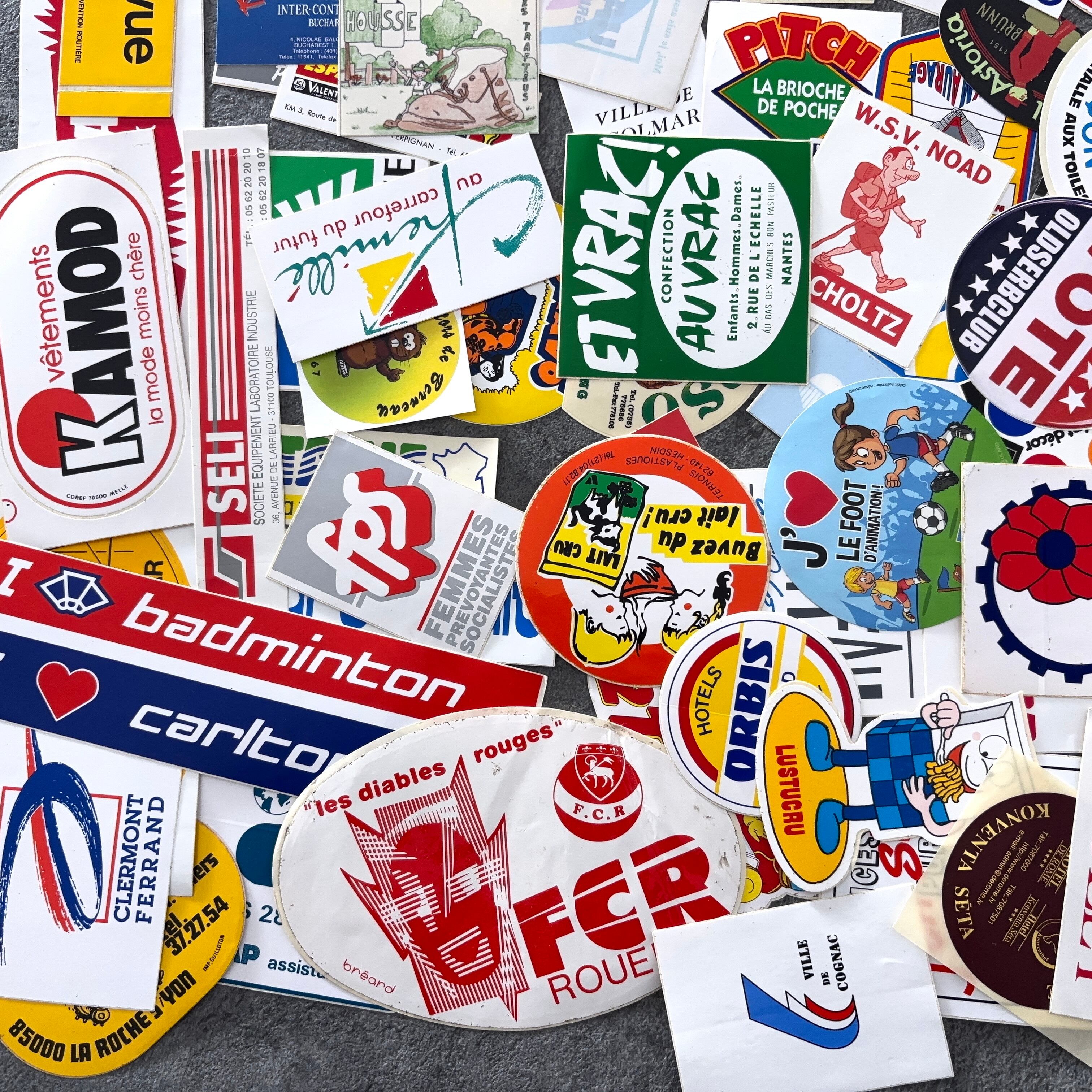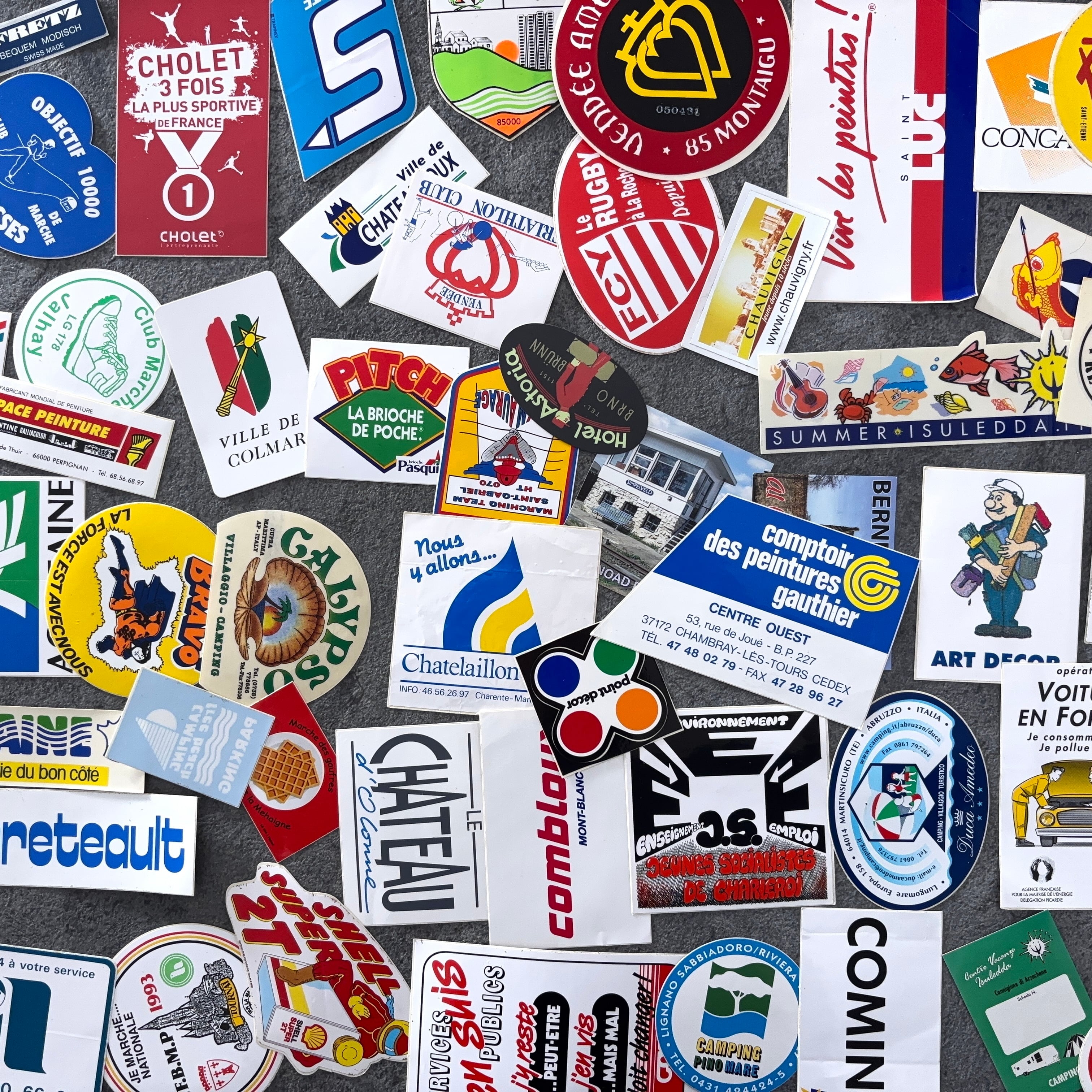 フランスのヴィンテージのステッカー100枚セットとなります。