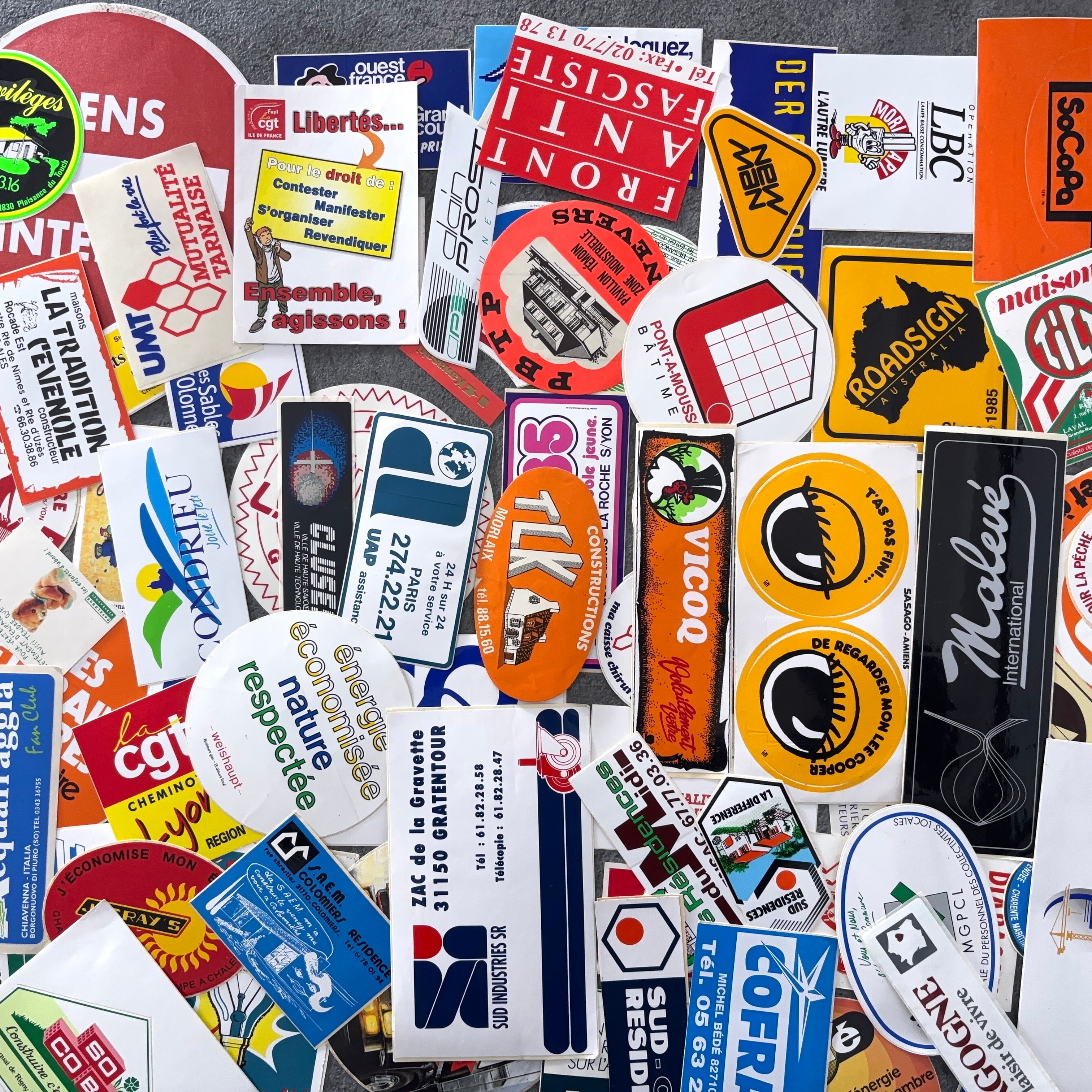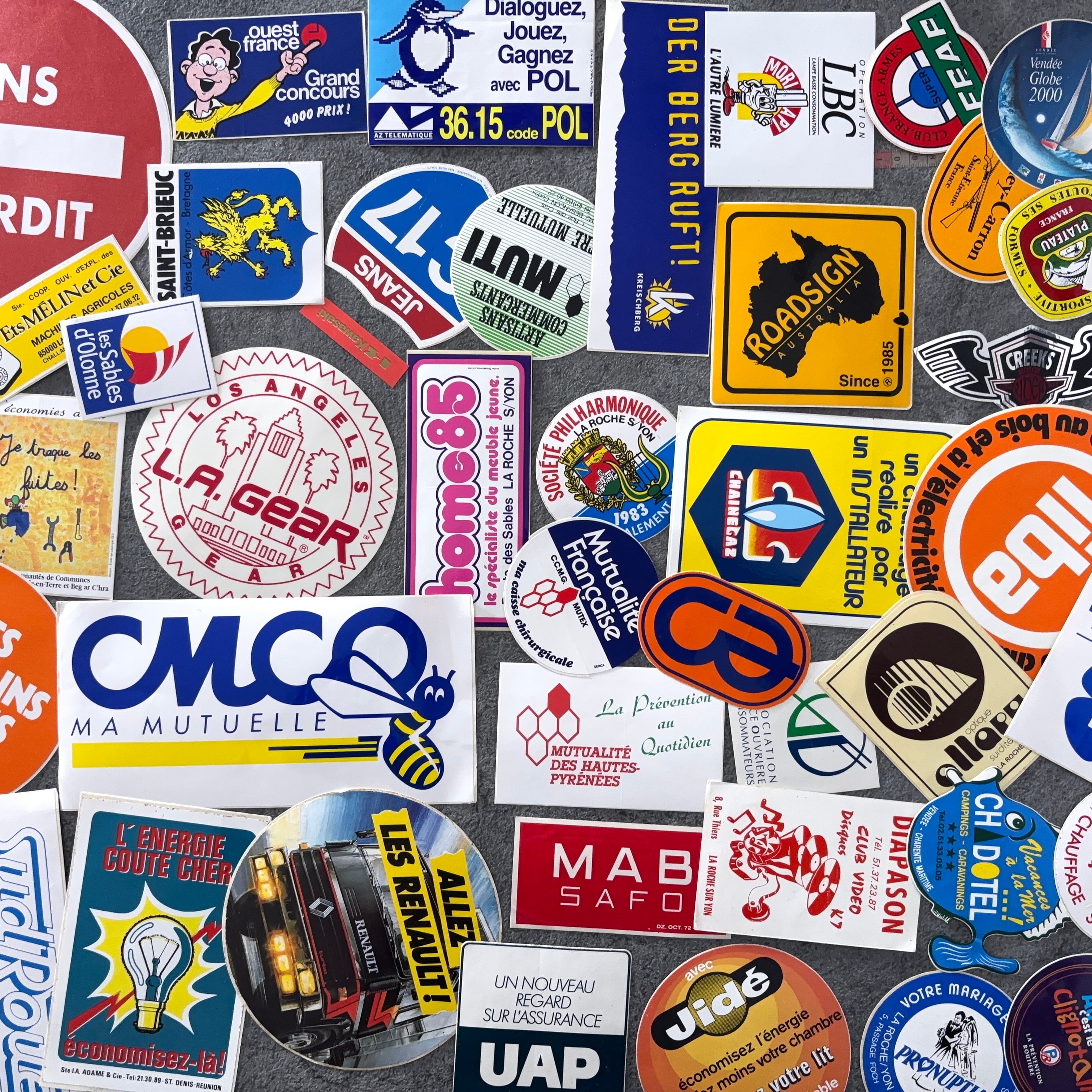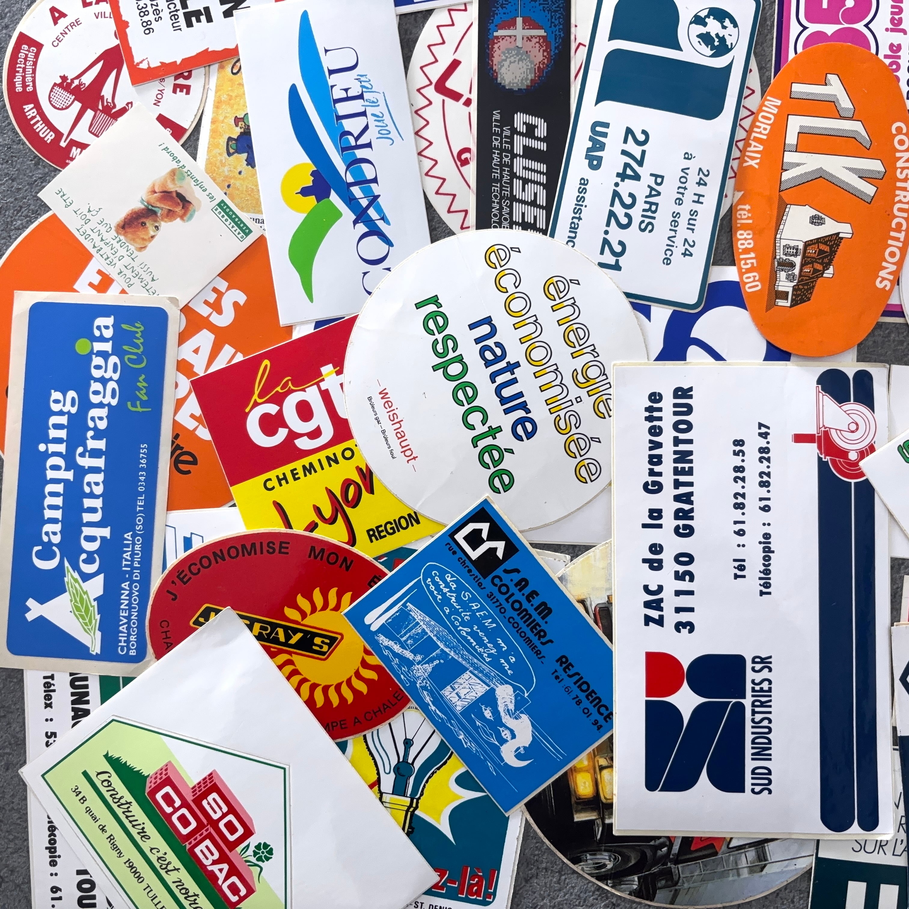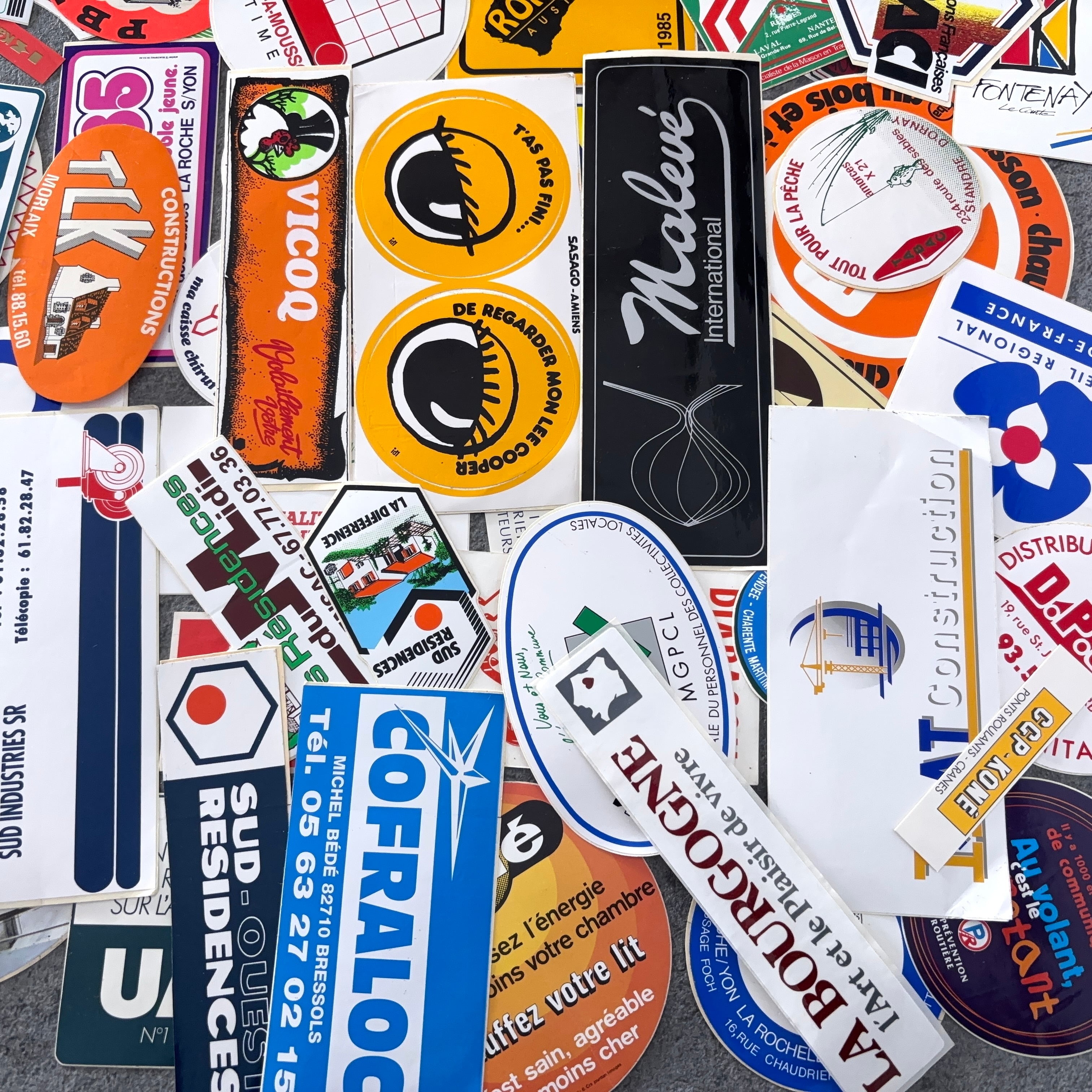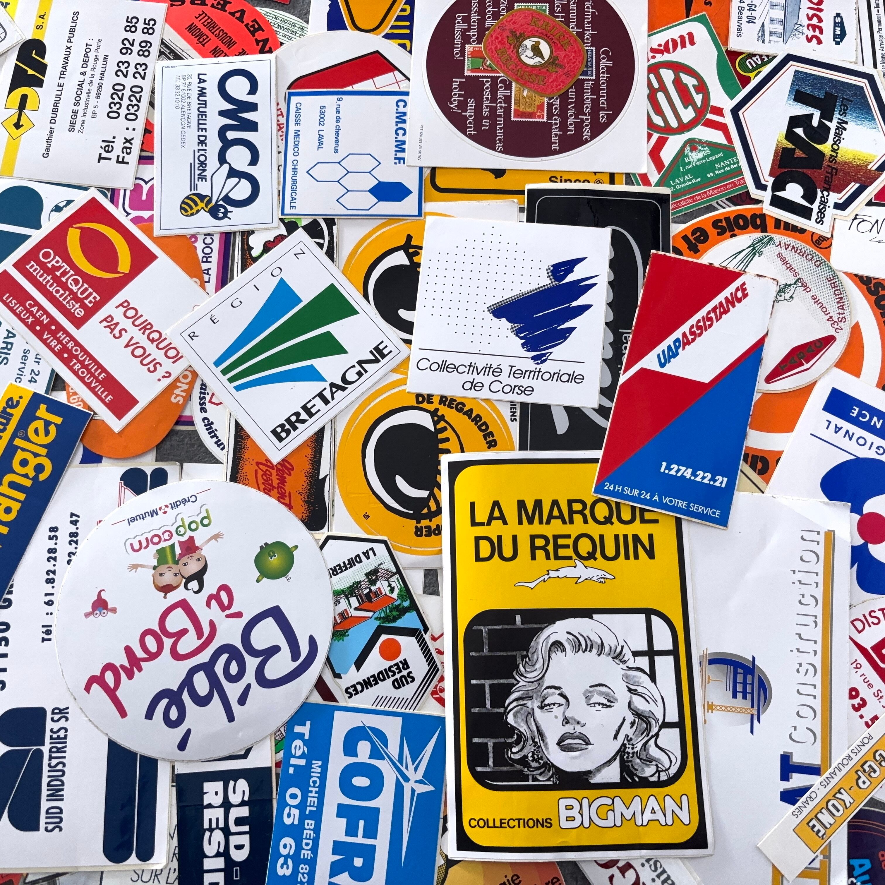 フランスのヴィンテージのステッカー100枚セットとなります。