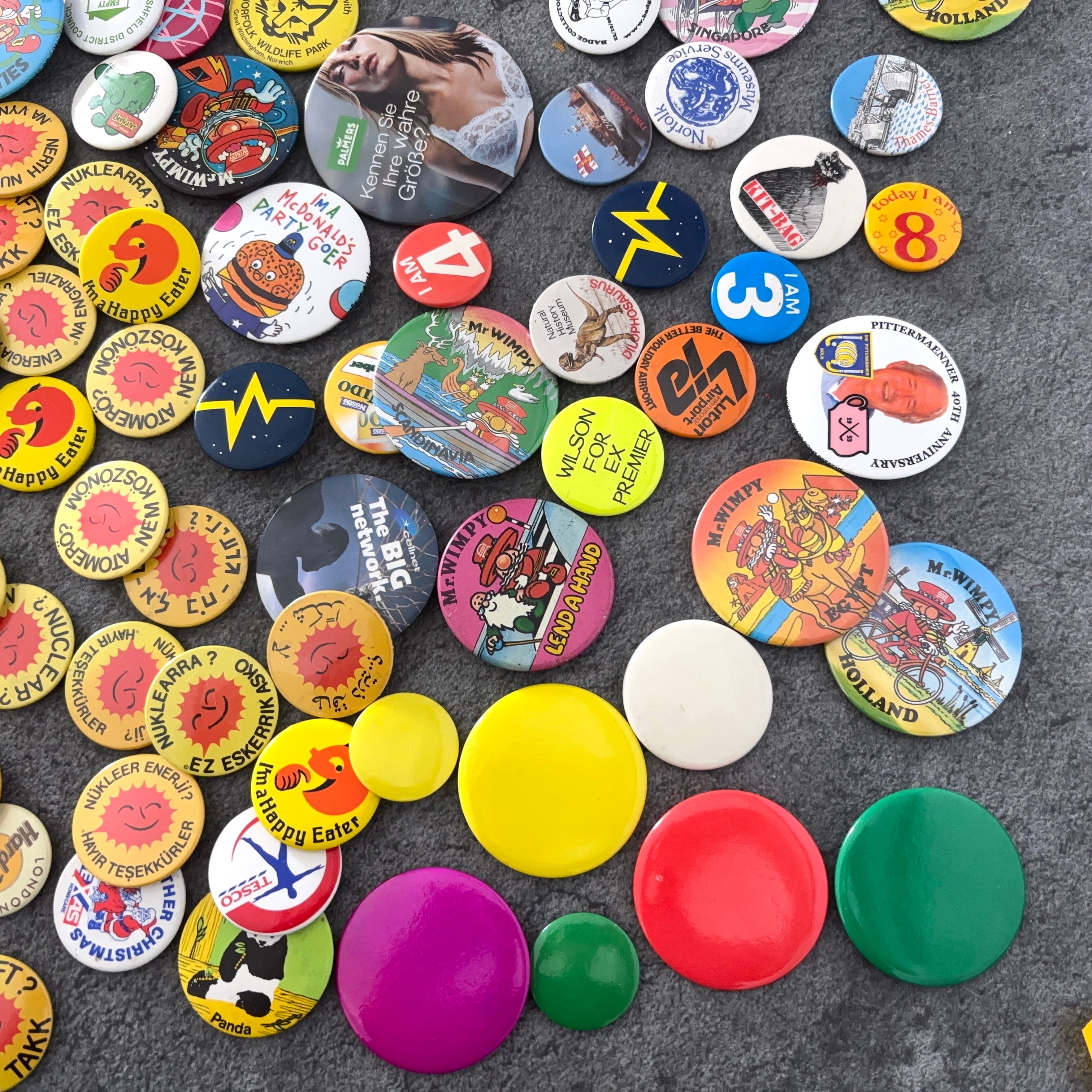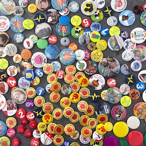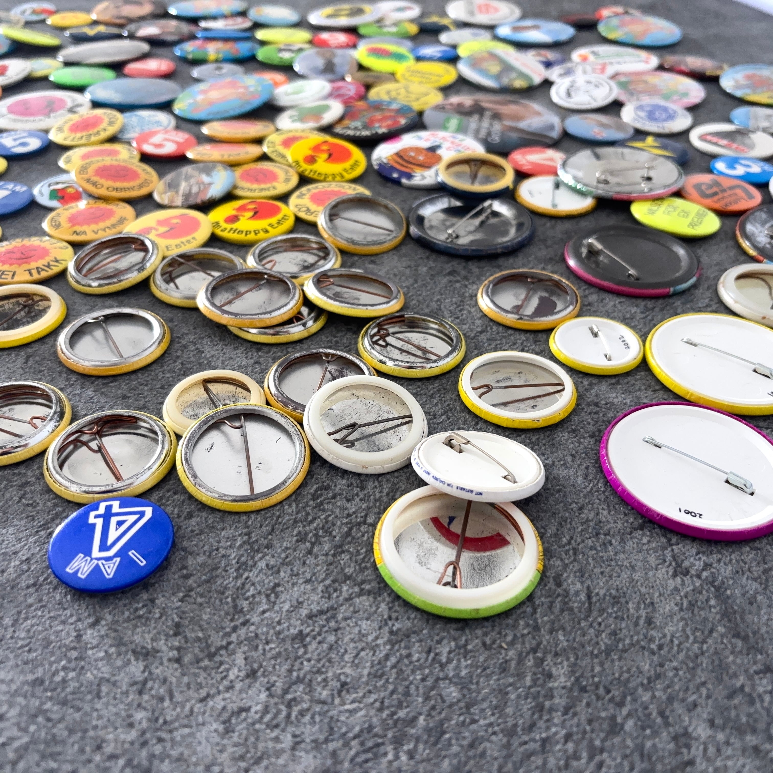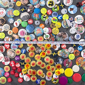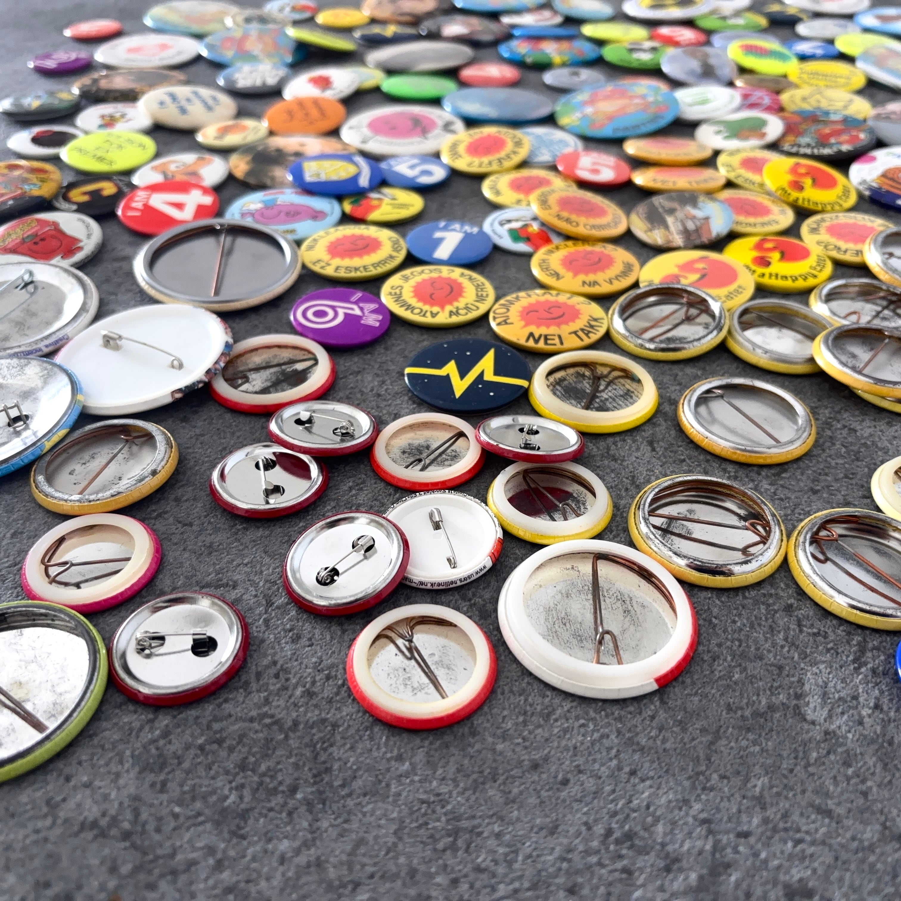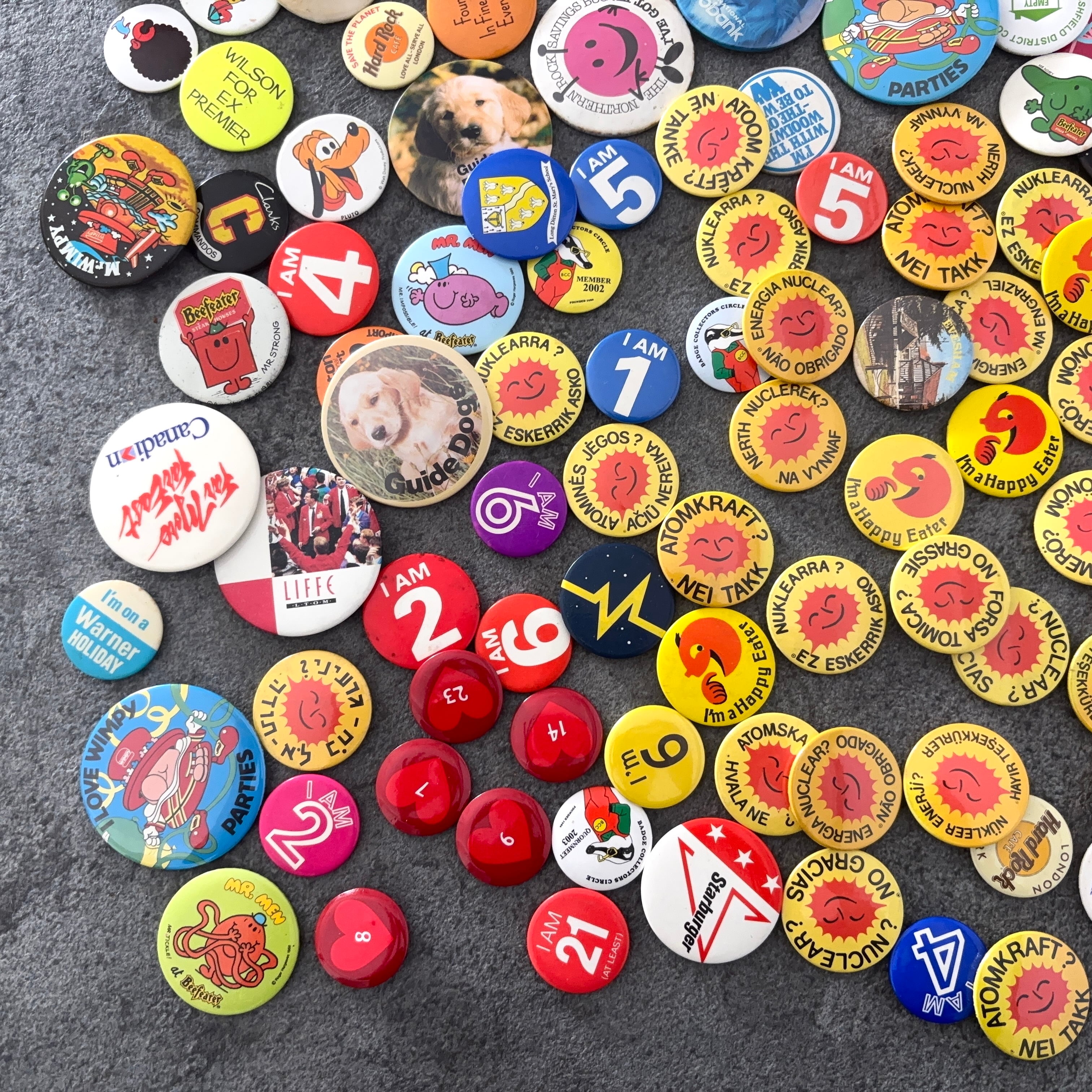 ヴィンテージの缶バッジ171個セットとなります。