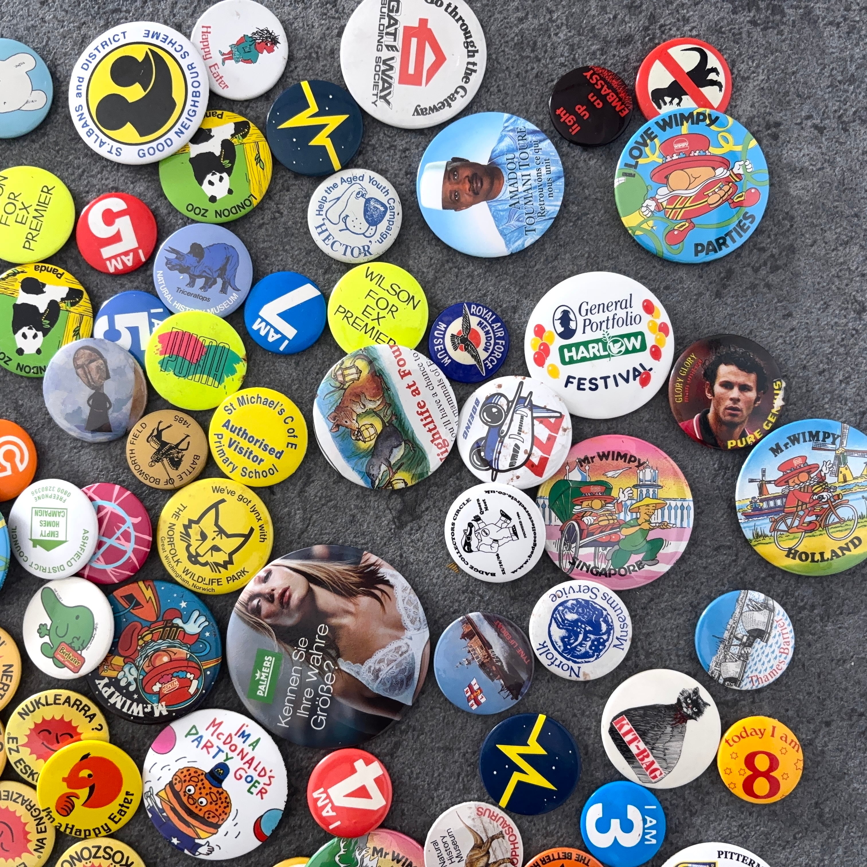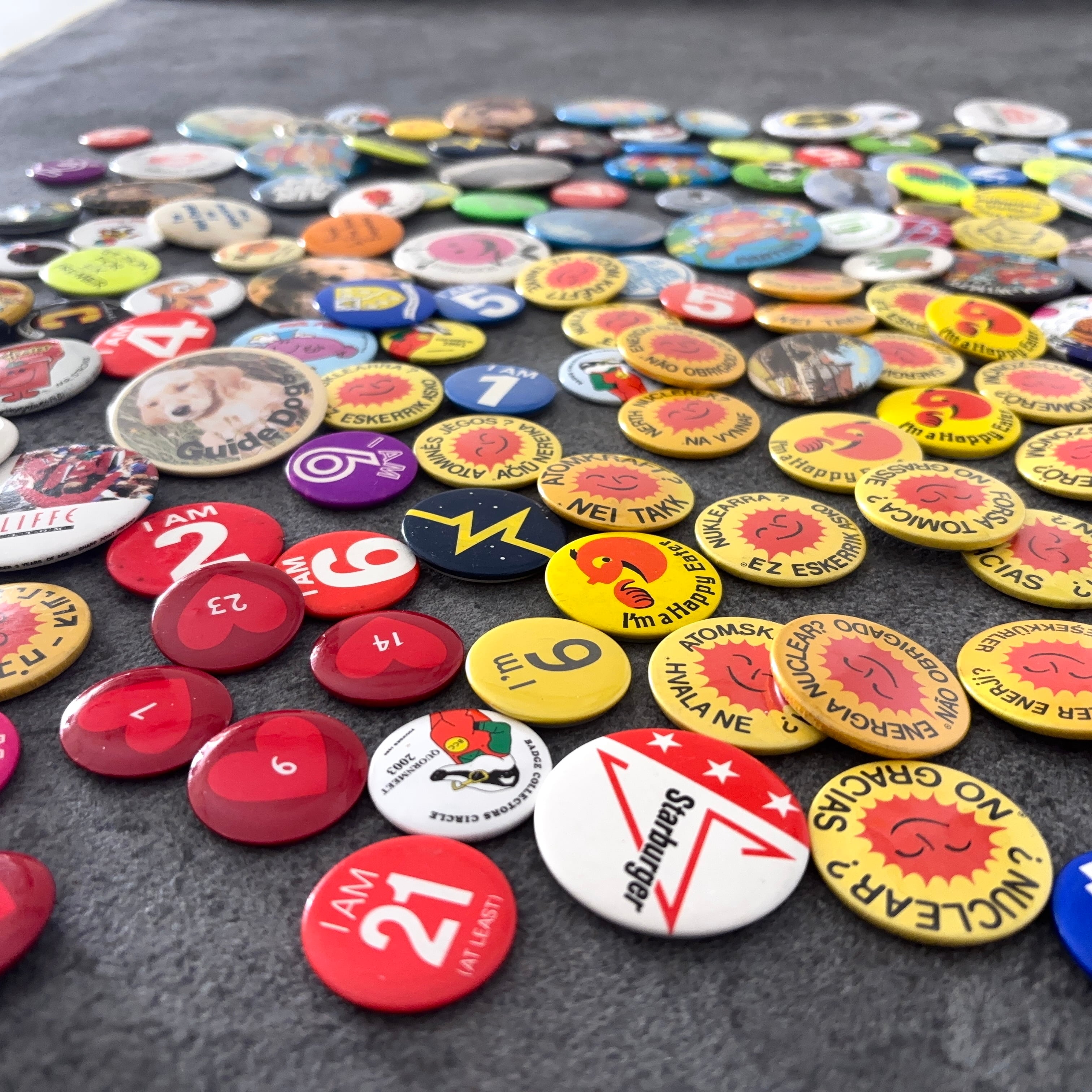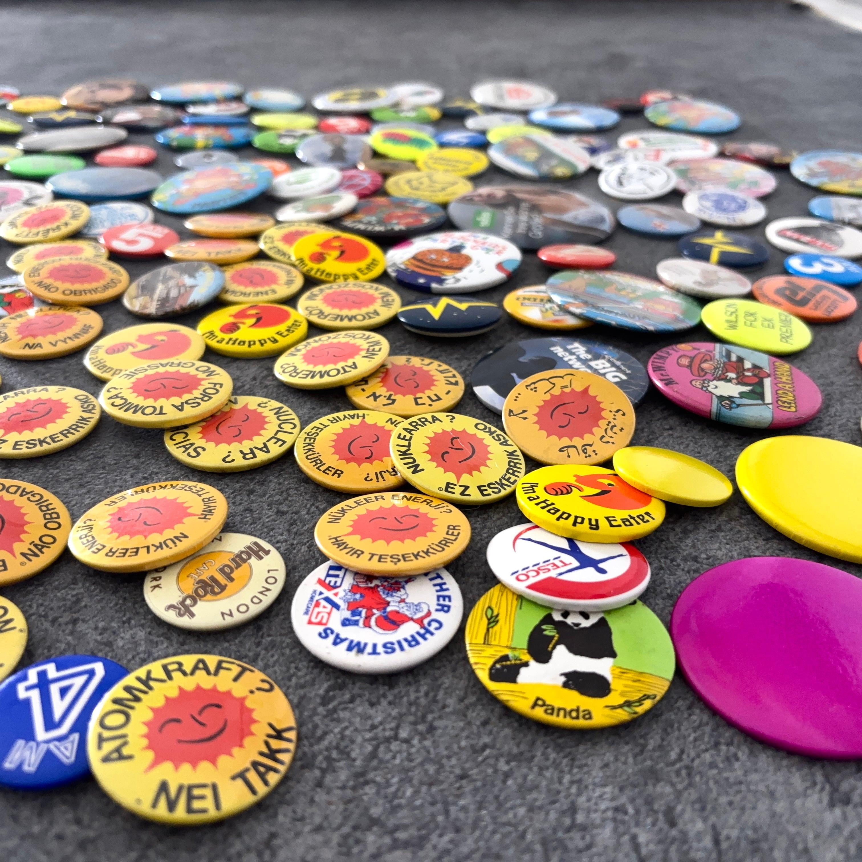 ヴィンテージの缶バッジ171個セットとなります。