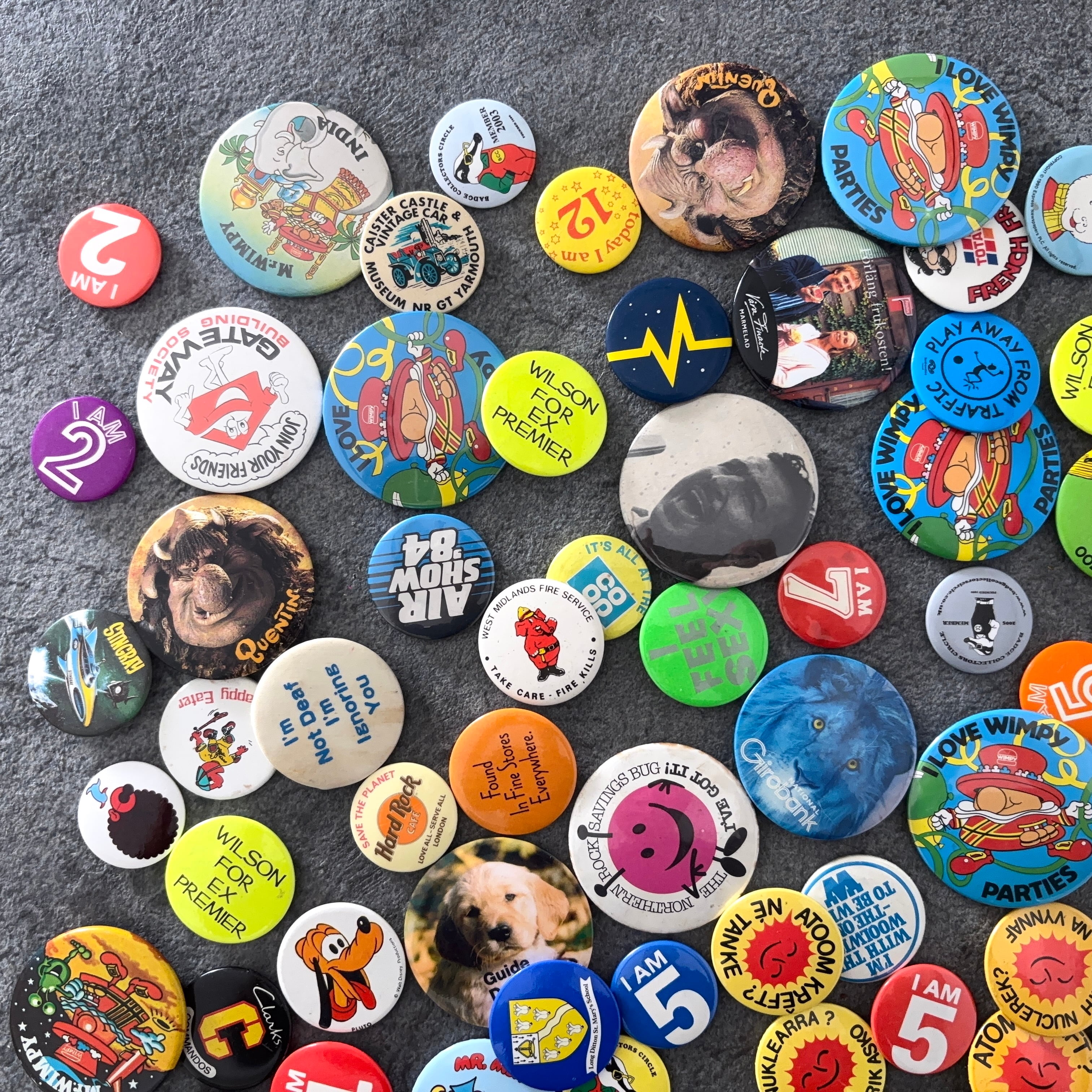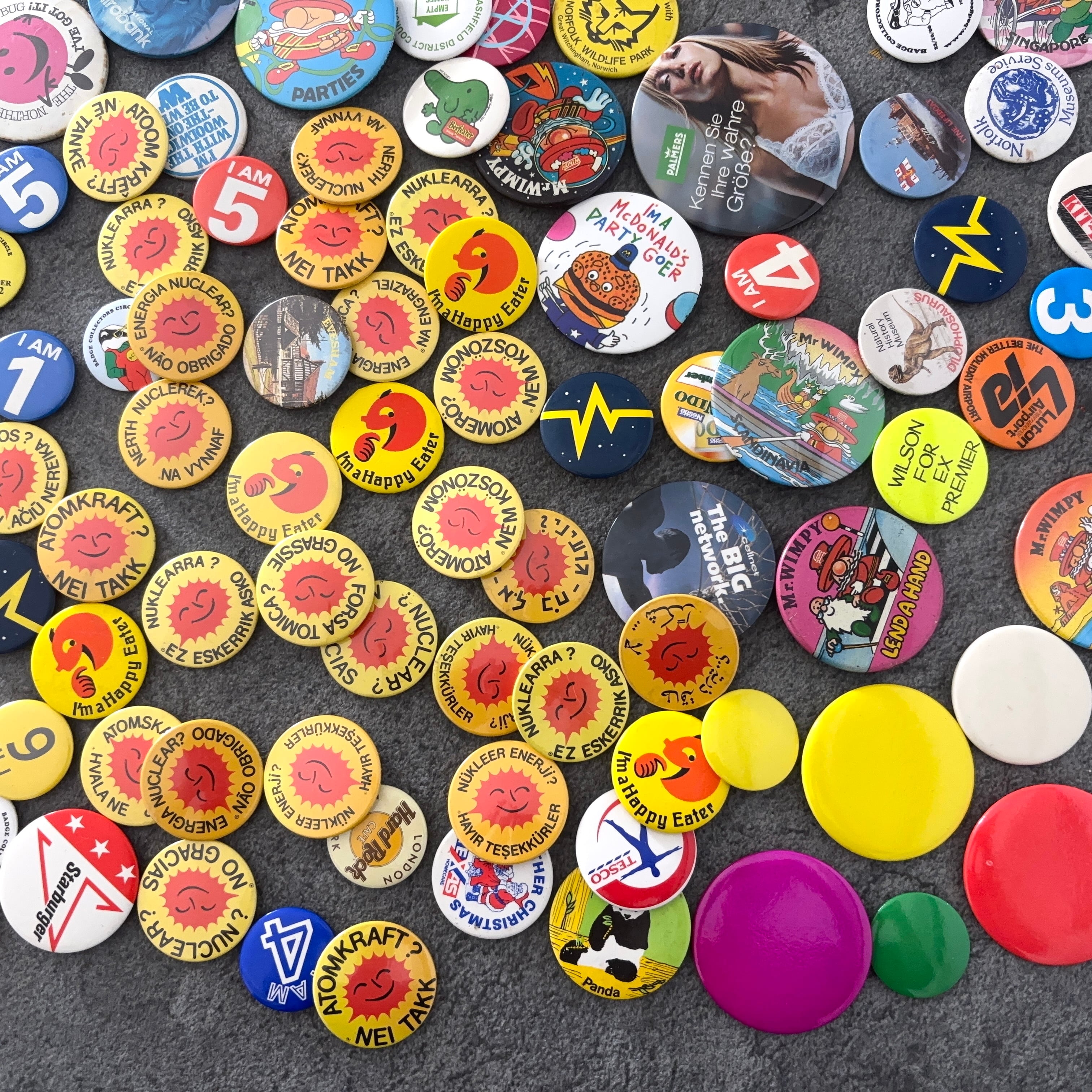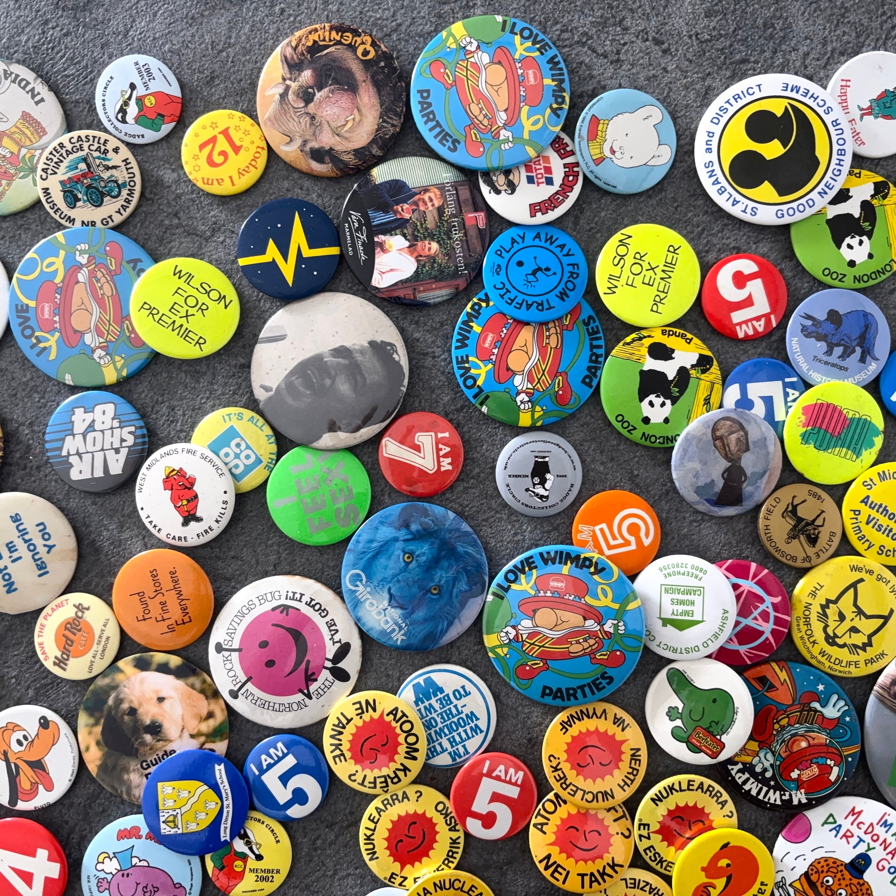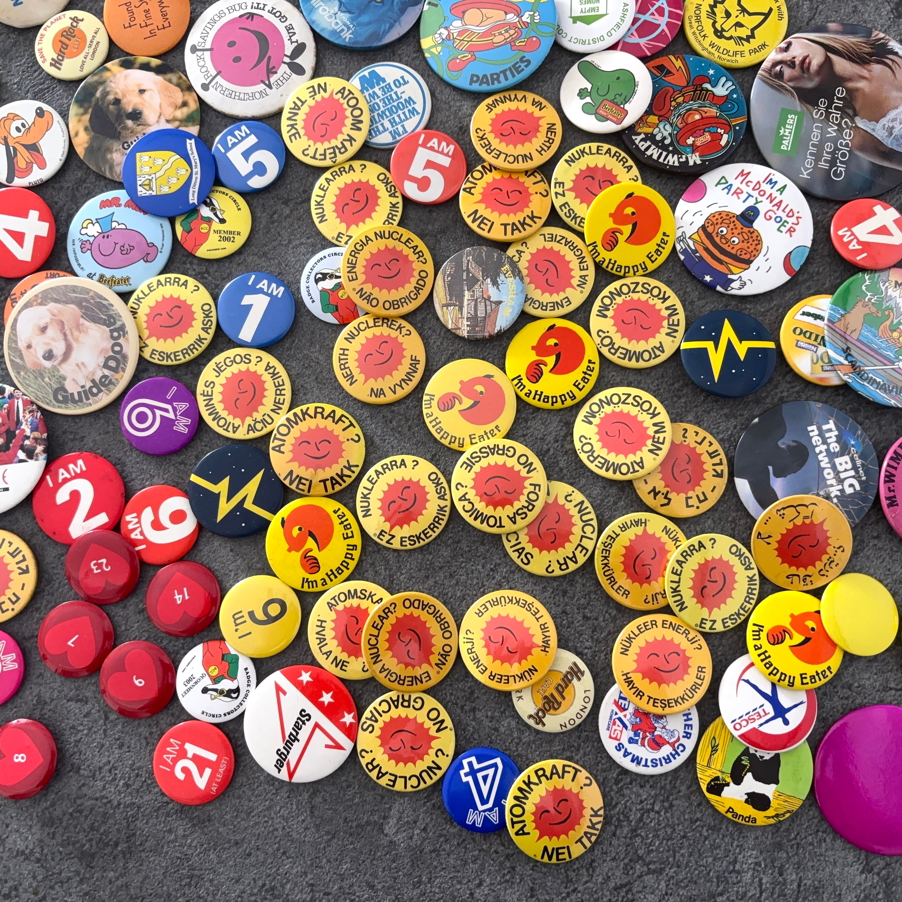ヴィンテージの缶バッジ171個セットとなります。