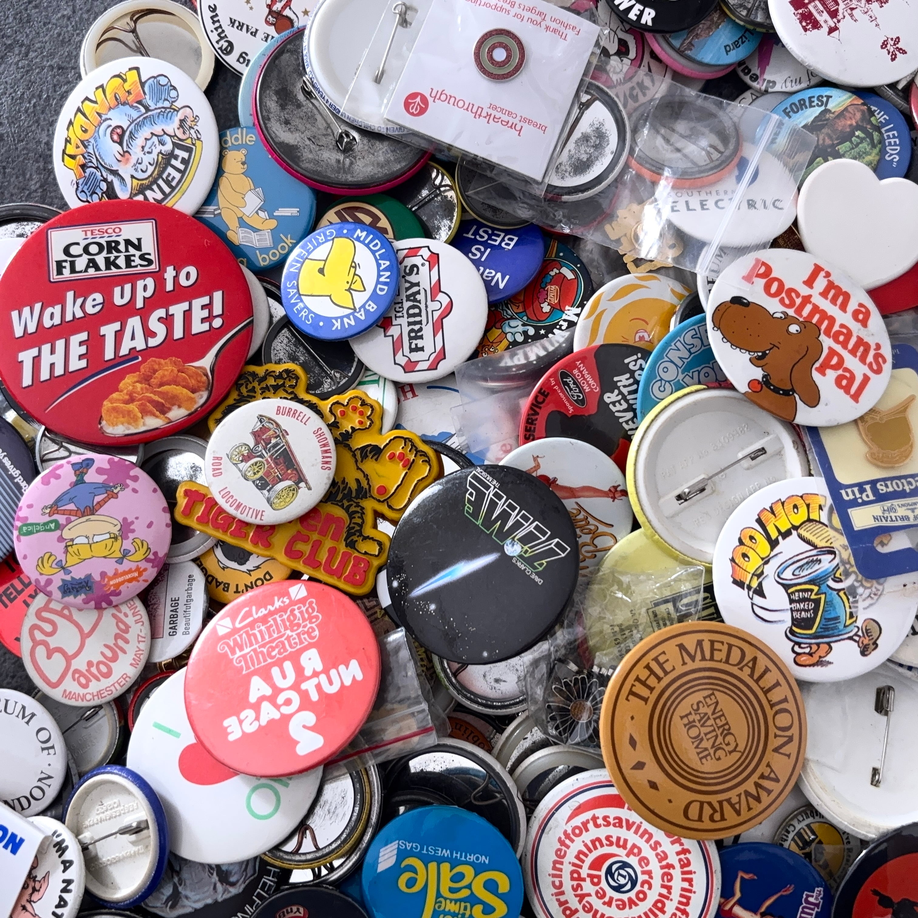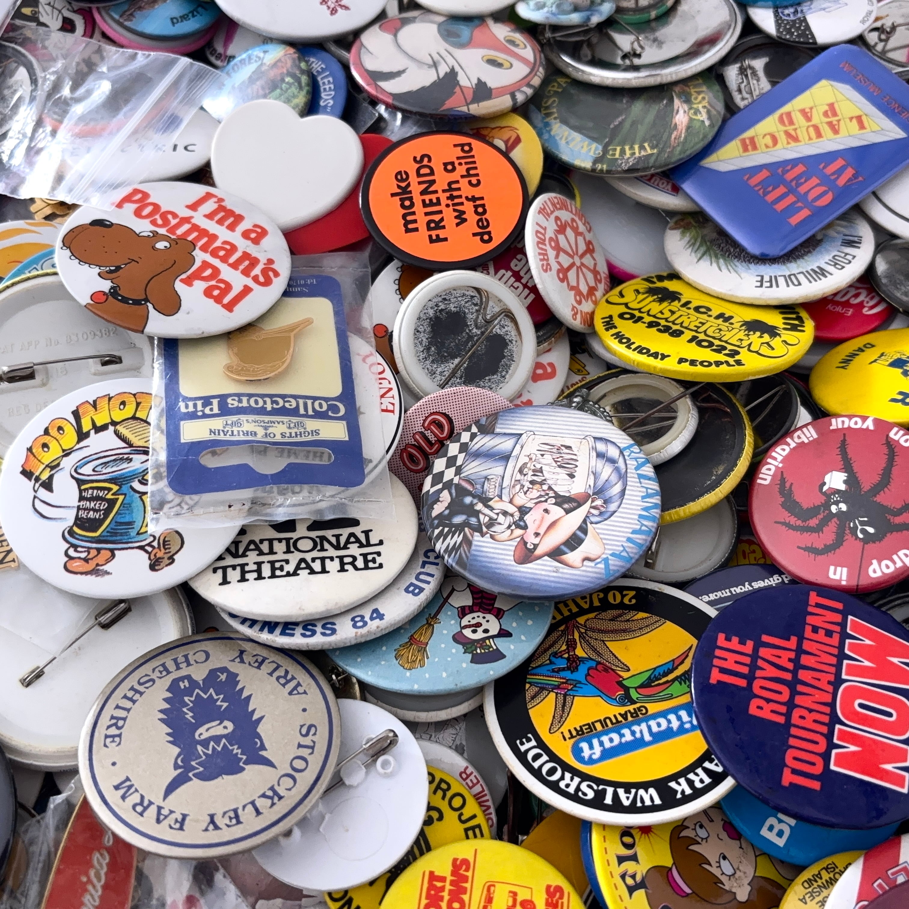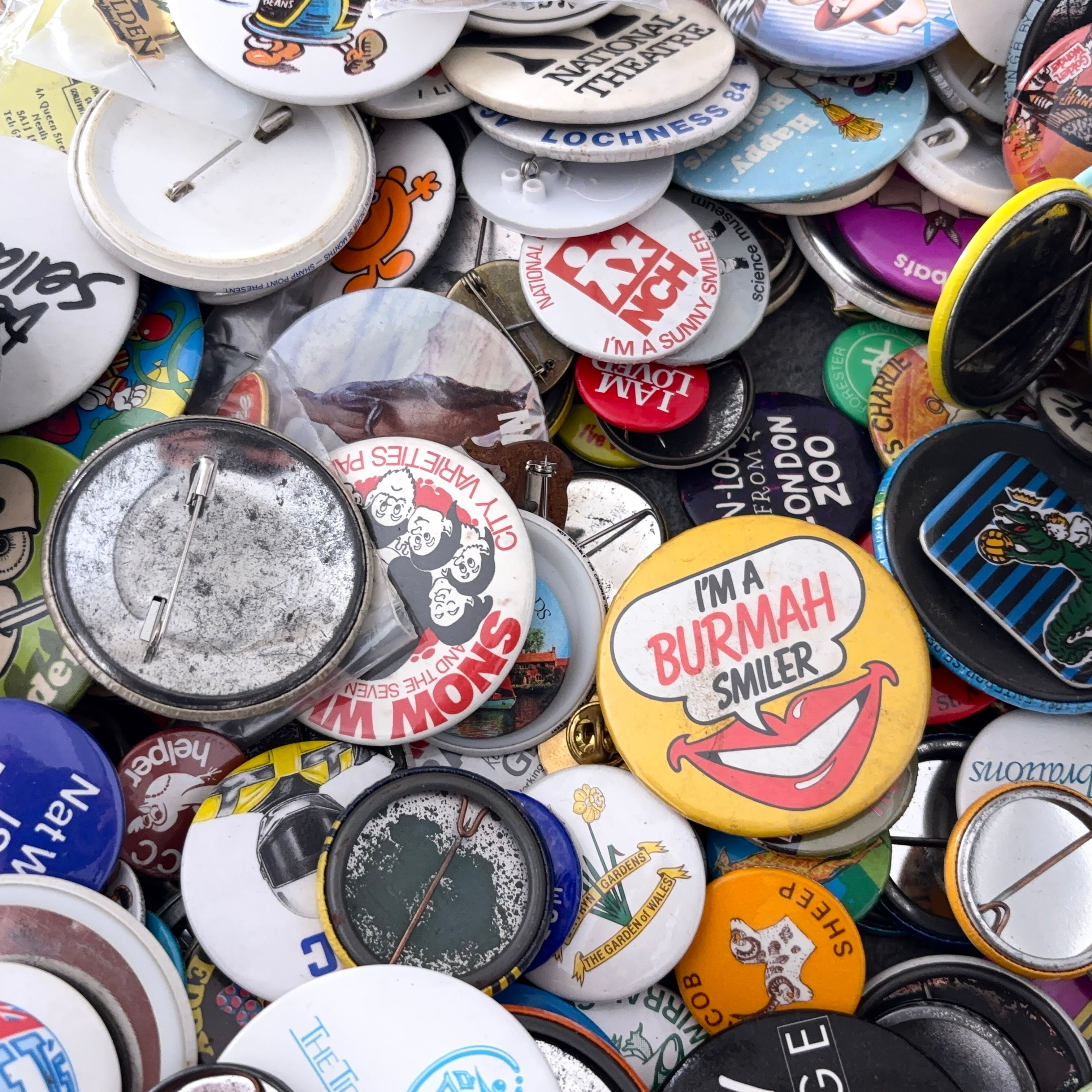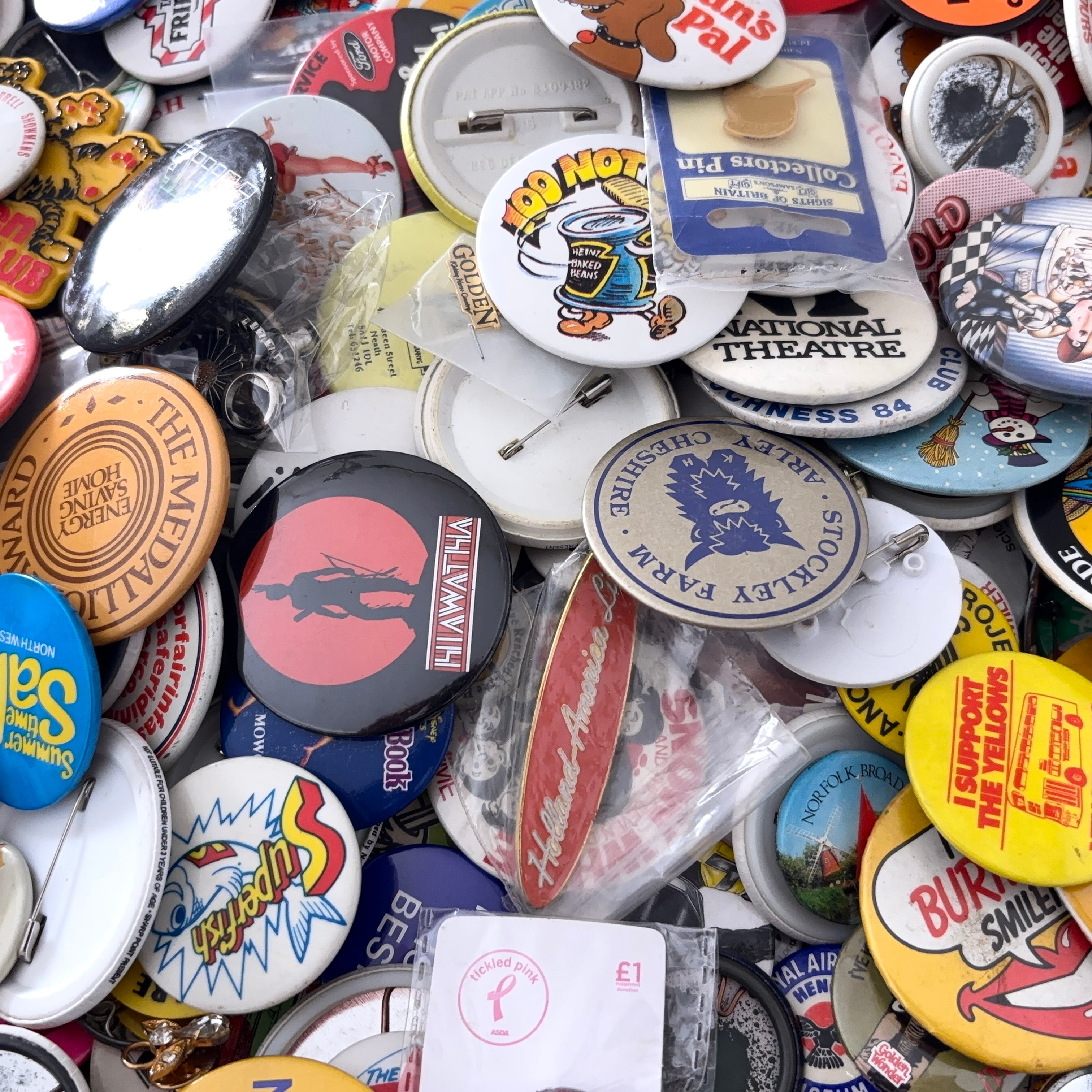 ヴィンテージの缶バッジ6.0kgのセットとなります。