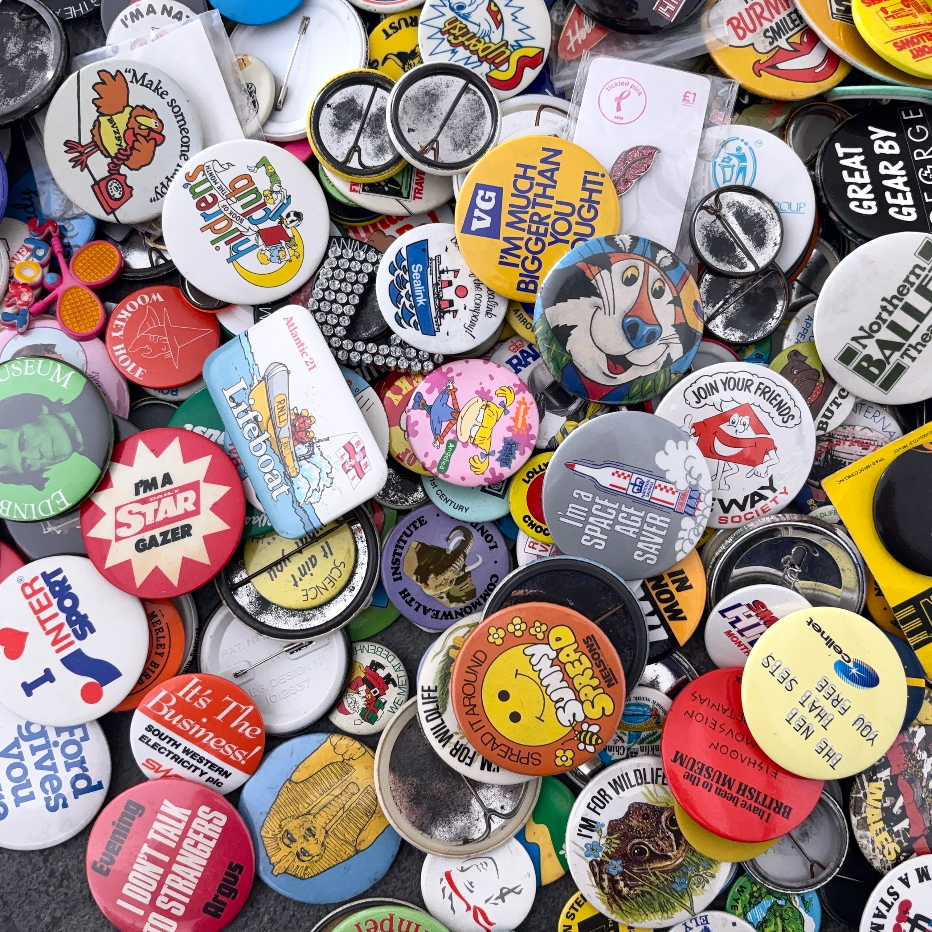 【6kg・800~1000個程度】 大量ロット・未選別・未検品 缶バッジなど ヴィンテージ レトロ vintage ビンテージ 古着 通販 リメイク 雑貨