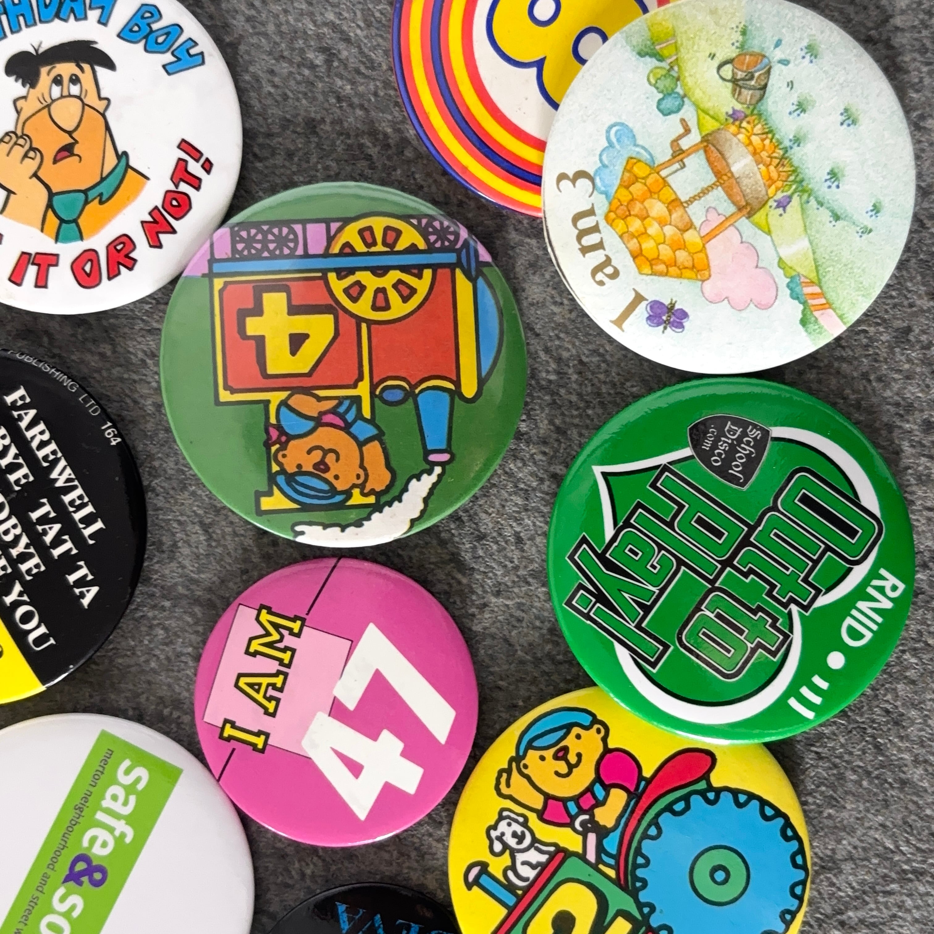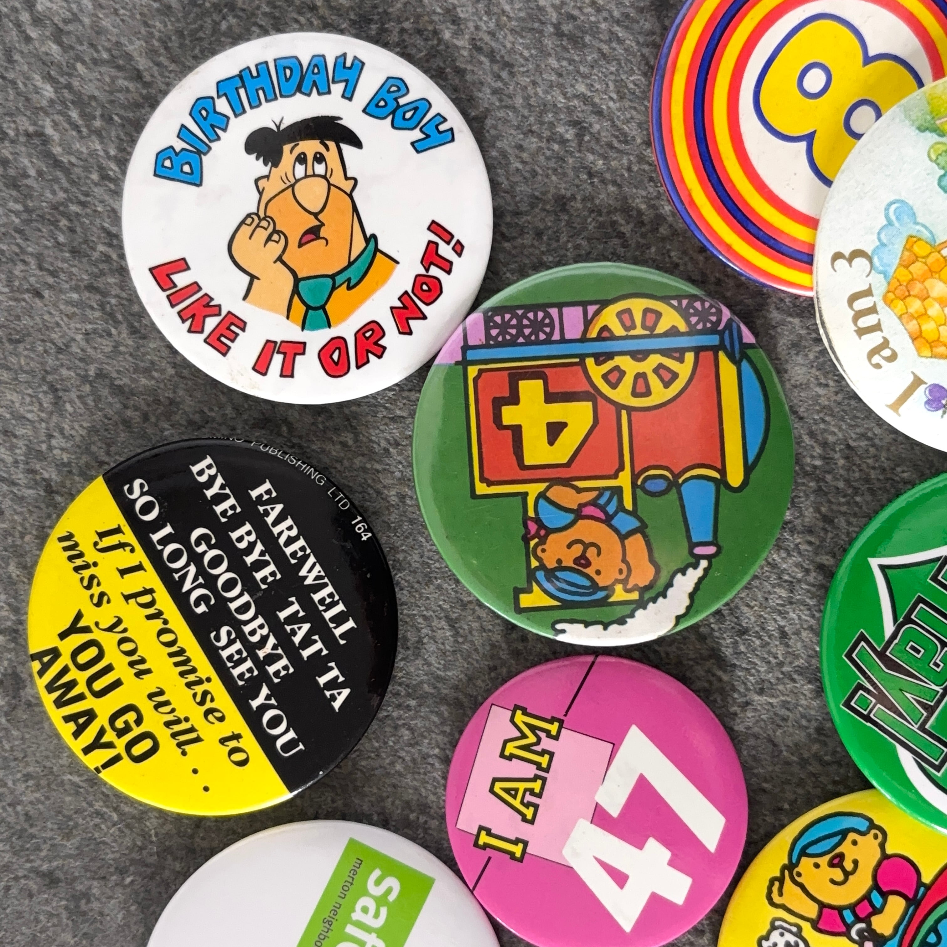 10個 ヴィンテージ レトロ 缶バッジ vintage ビンテージ 古着 通販 リメイク 雑貨 2602006-8