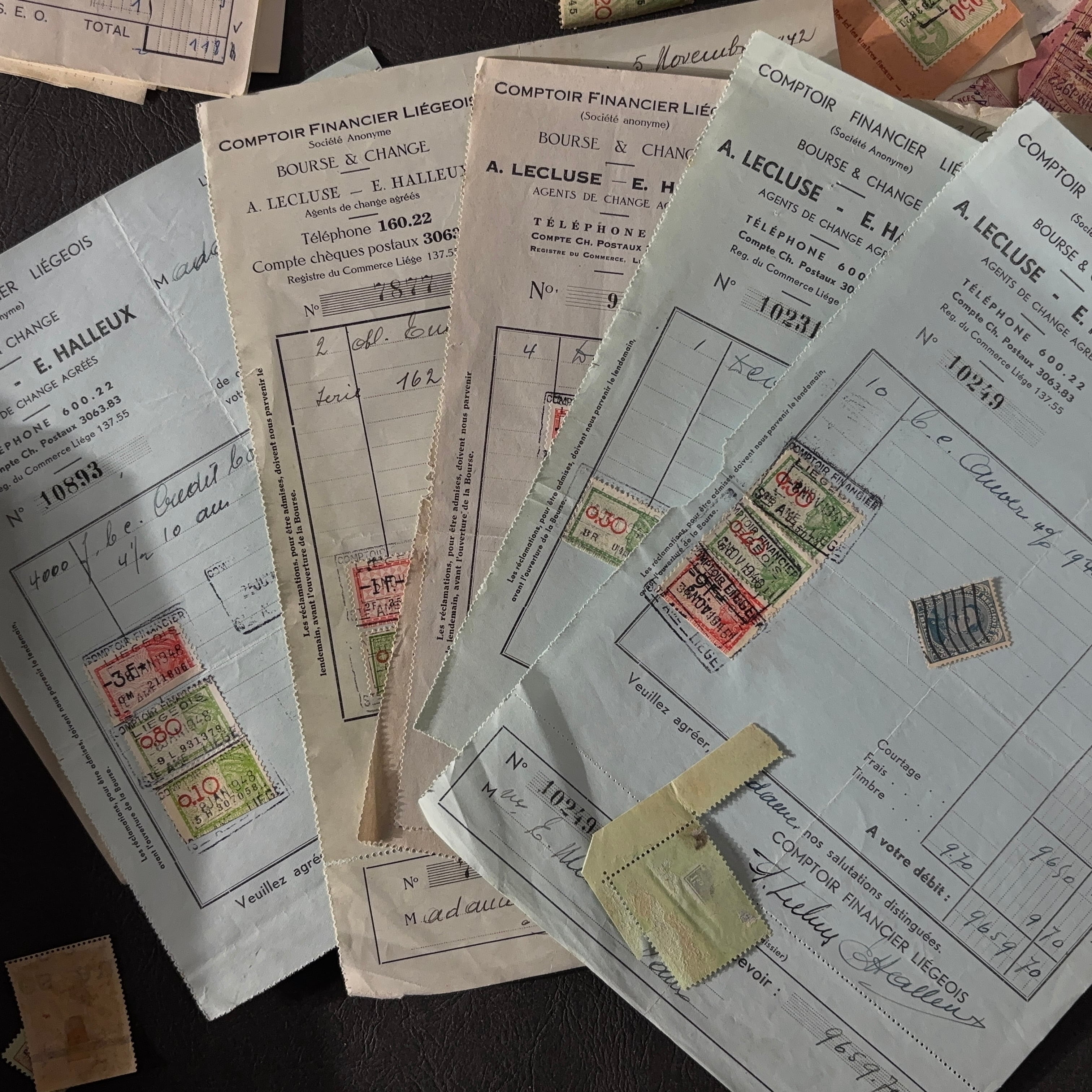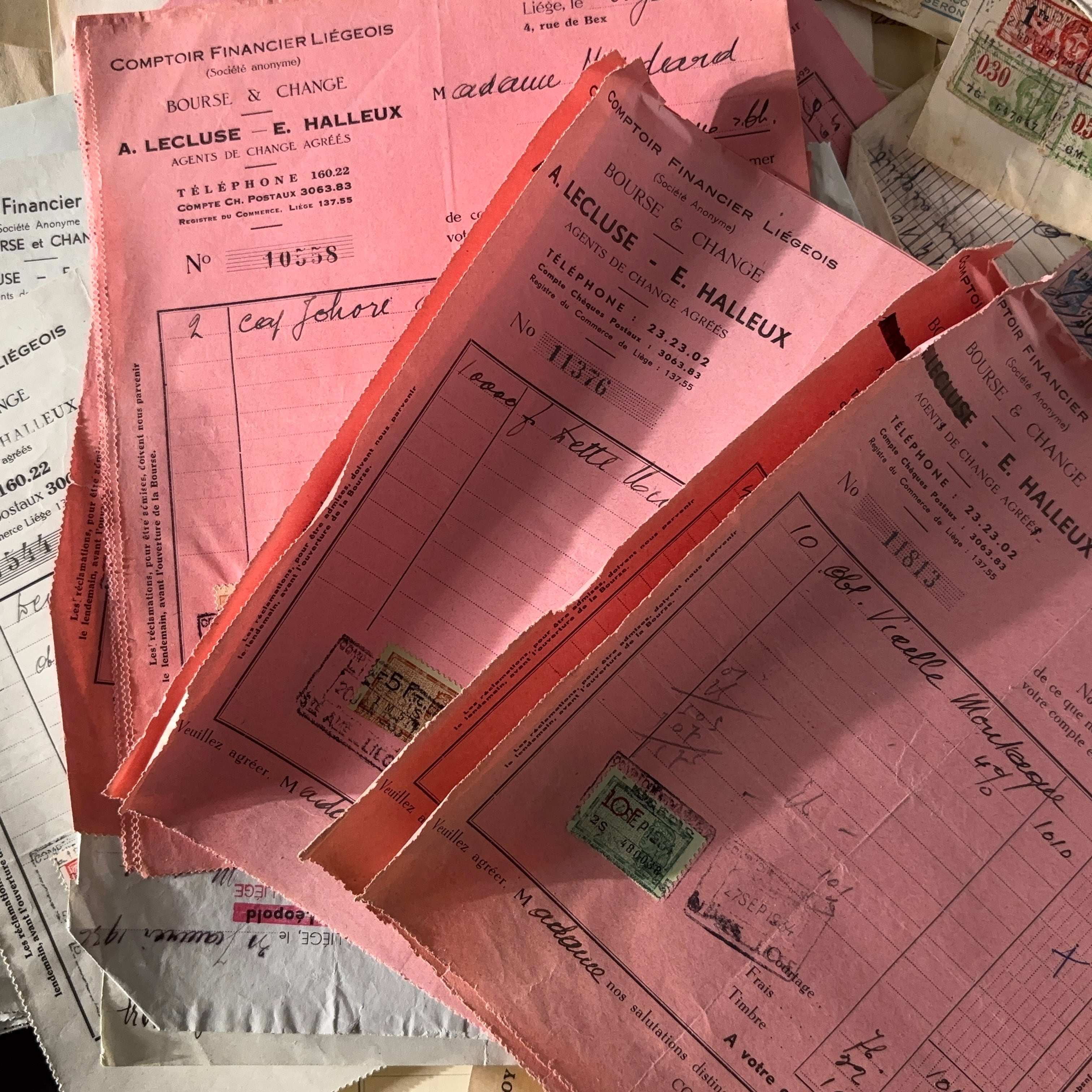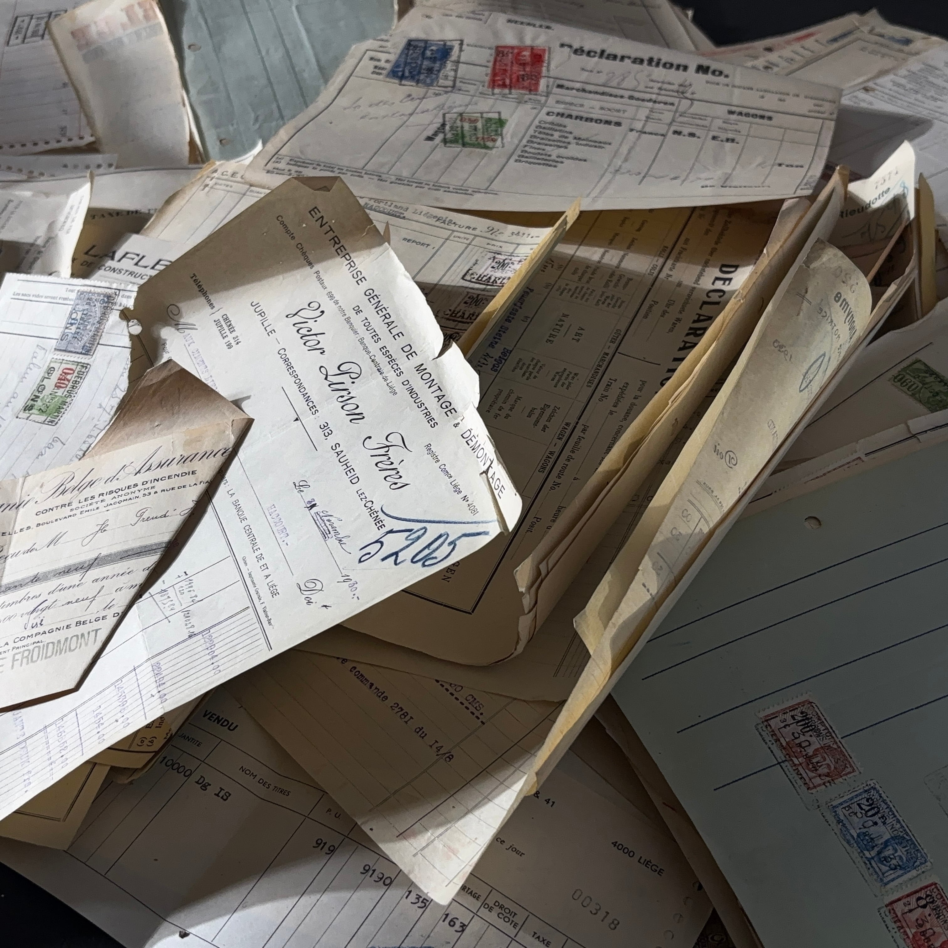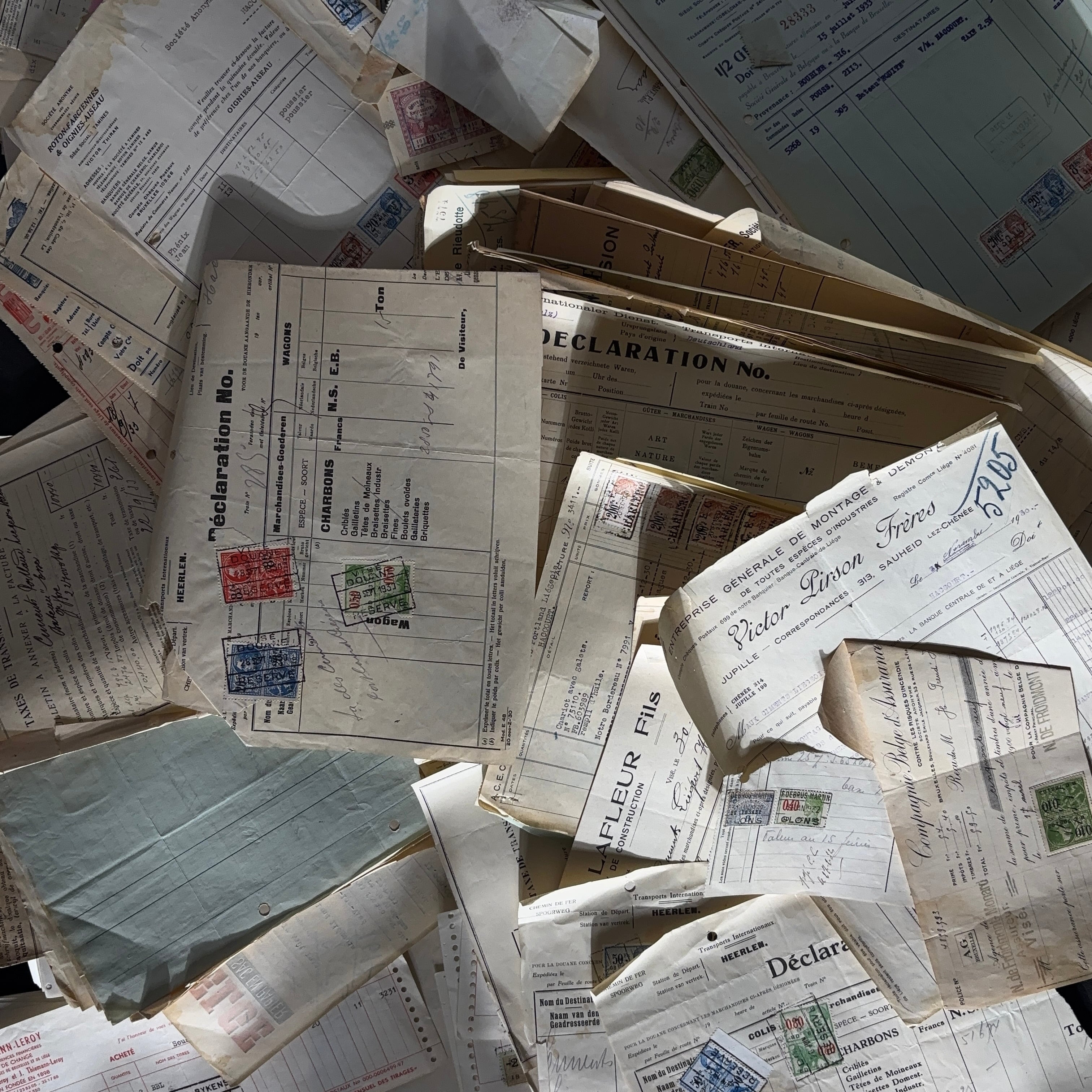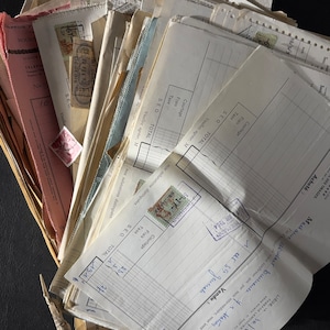 幅広い年代の古い伝票・請求書類のロット1.4kgです。
