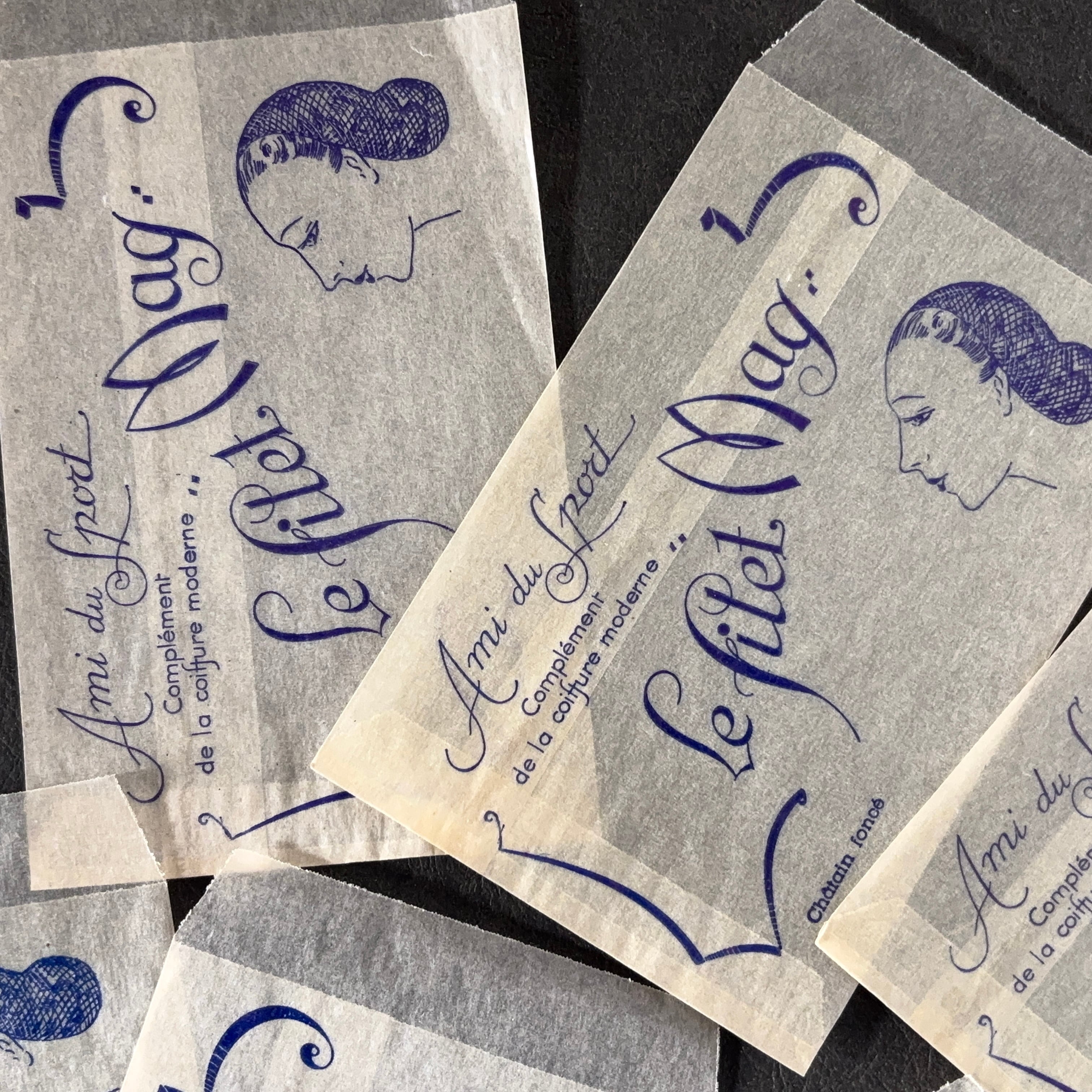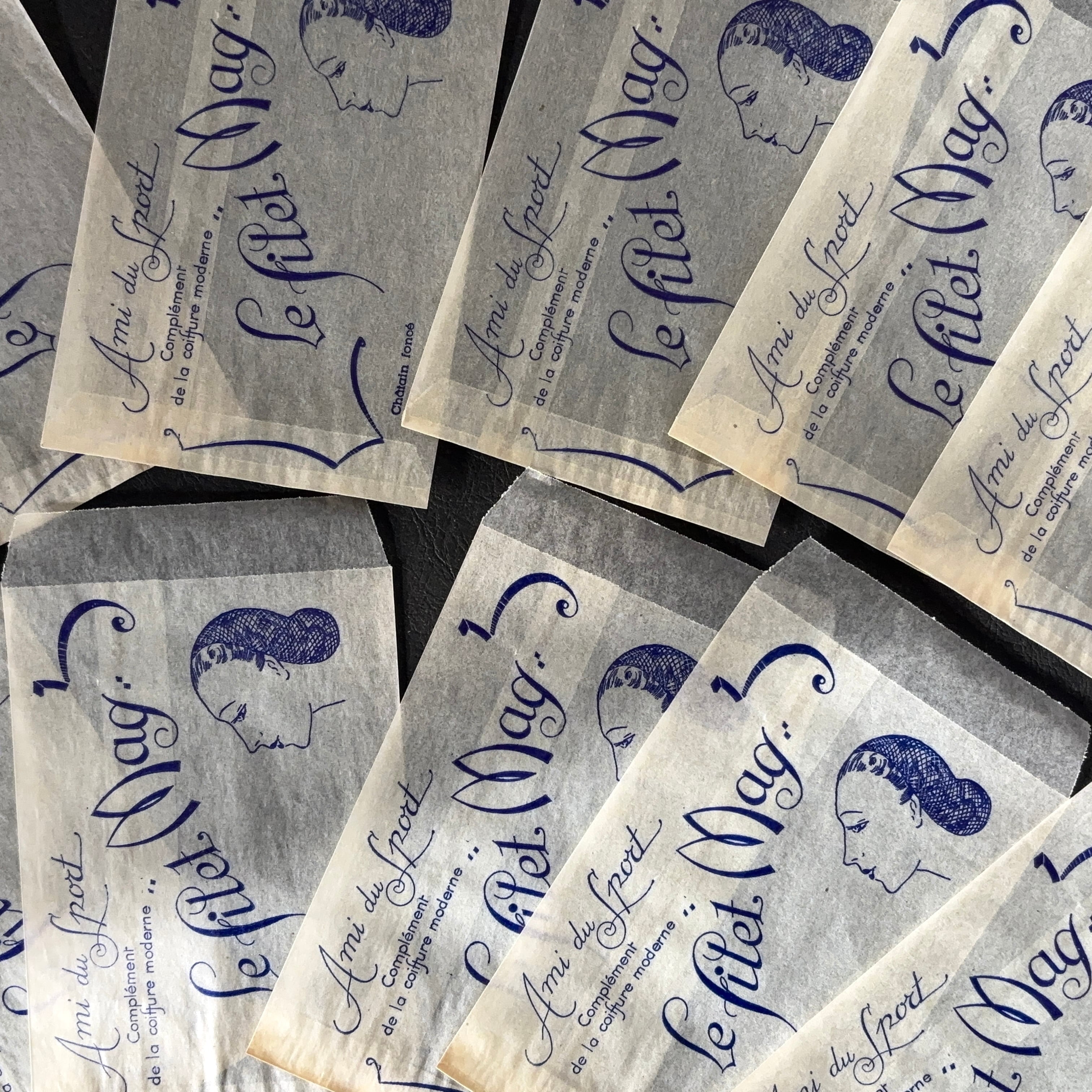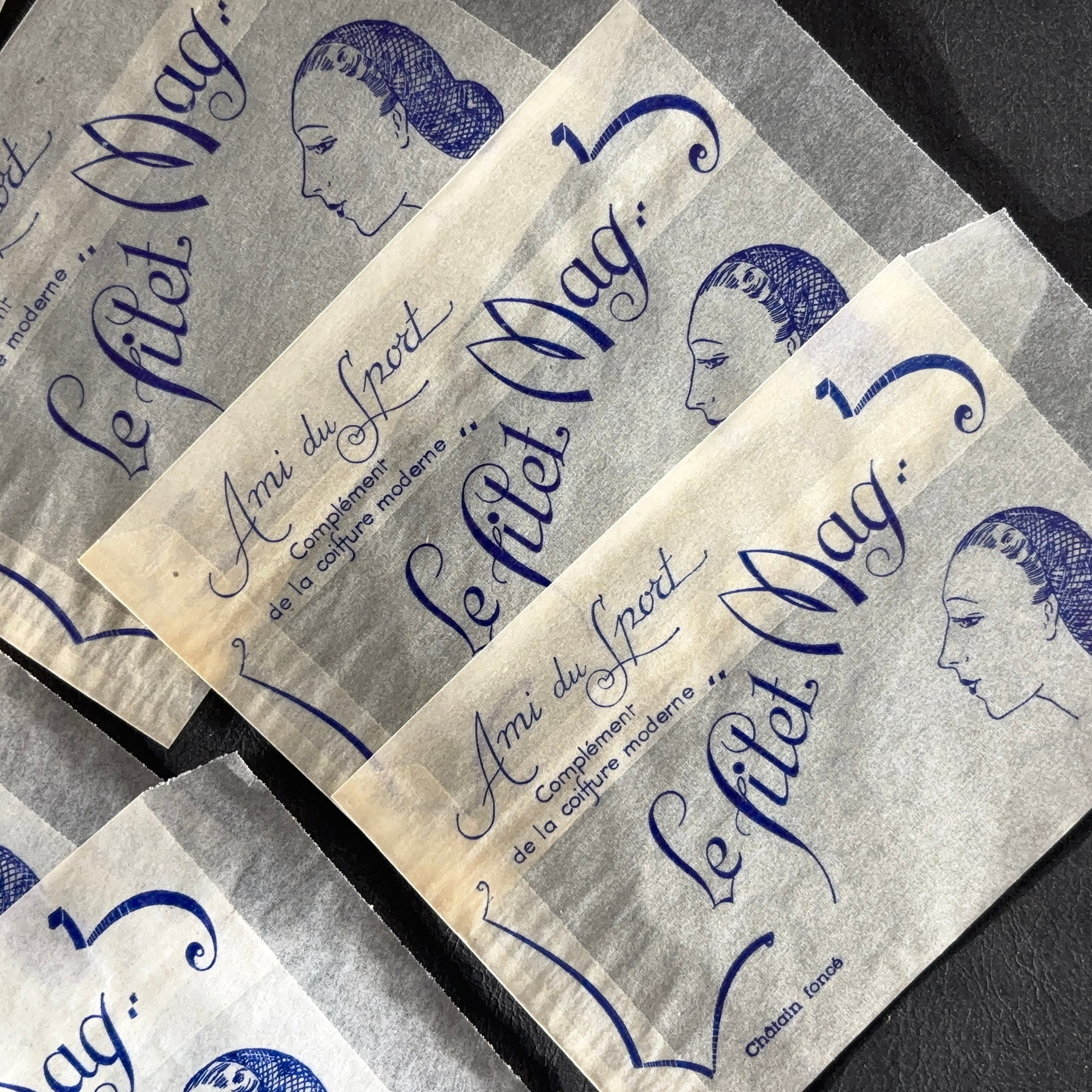 フランス ヴィンテージ 10枚 美容サロン紙袋(グラシン)Le filet Mag 広告デザイン 紙もの 1