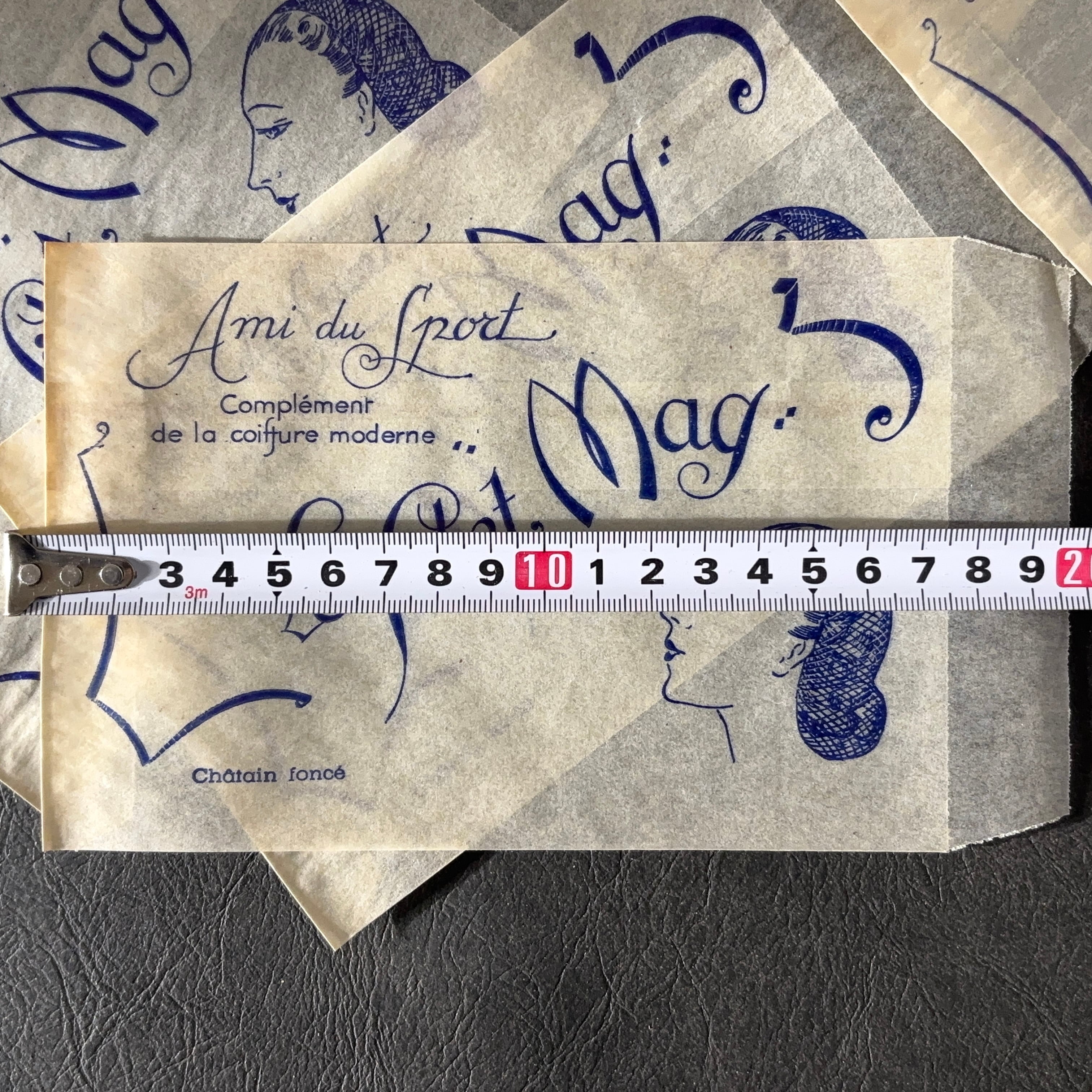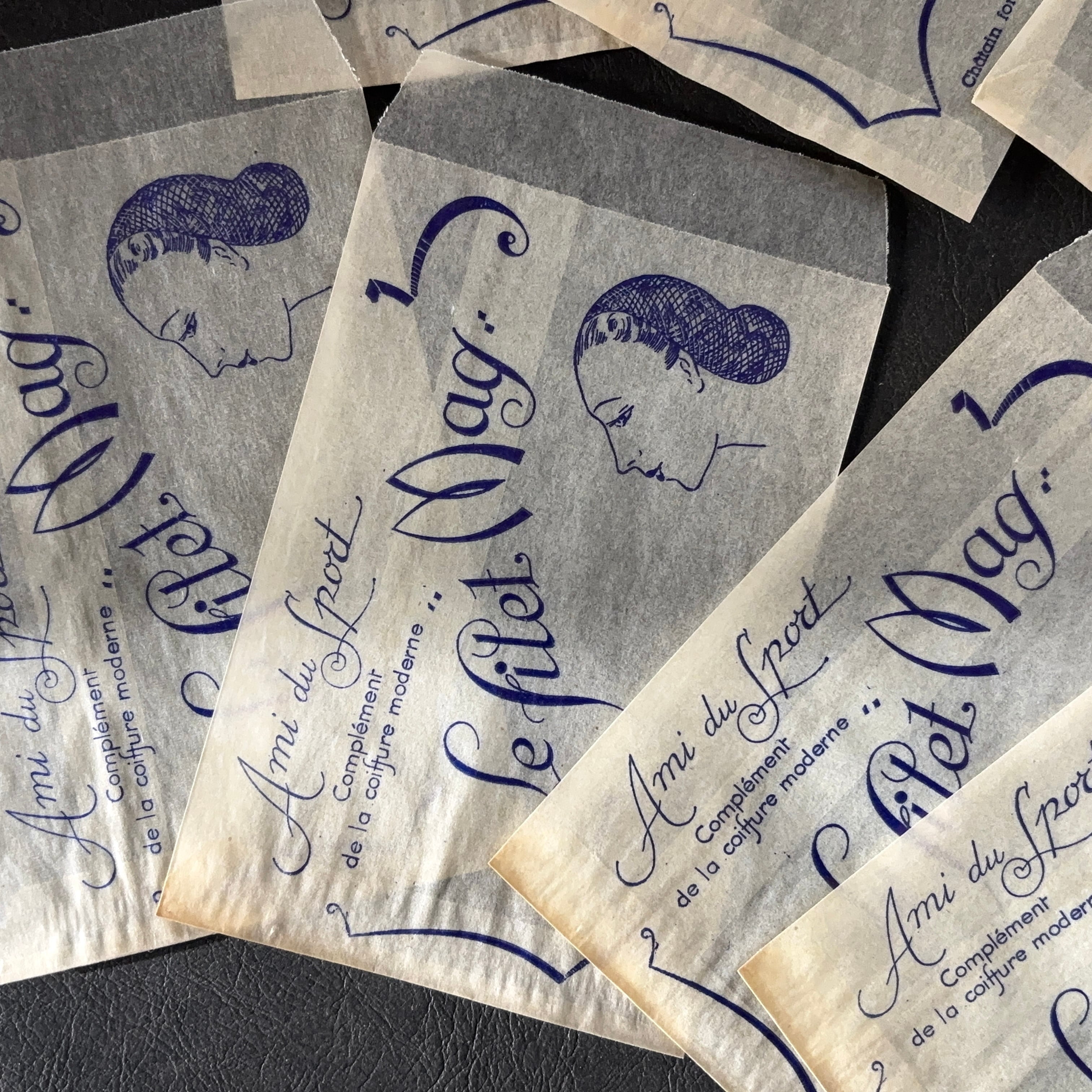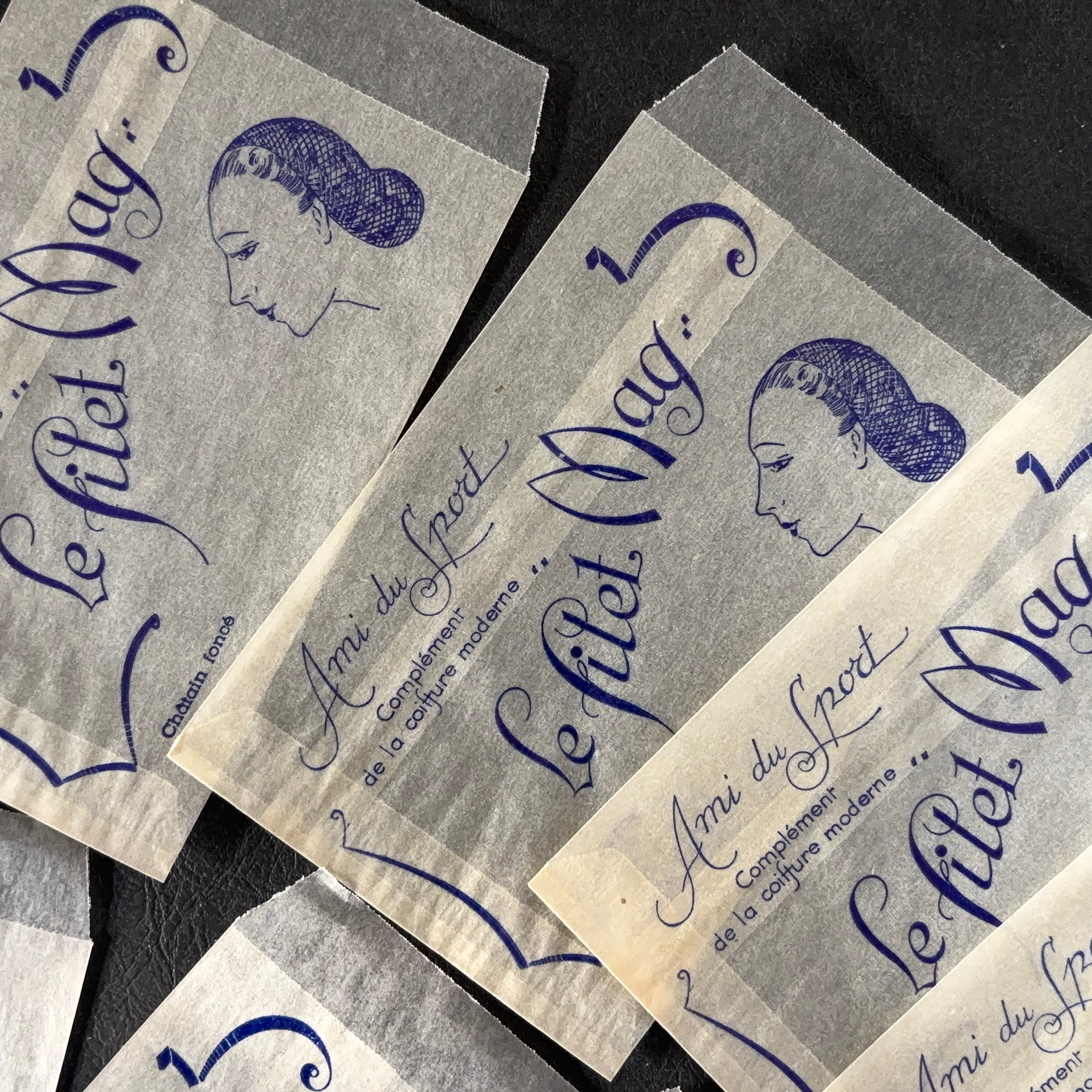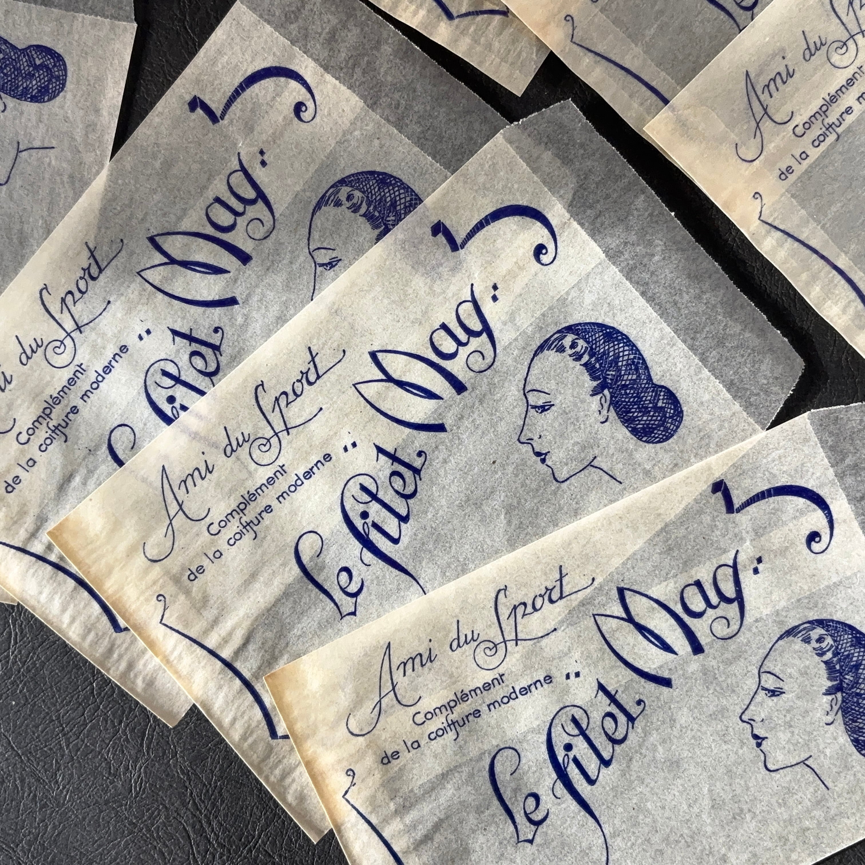 フランス ヴィンテージ 10枚 美容サロン紙袋(グラシン)Le filet Mag 広告デザイン 紙もの 1