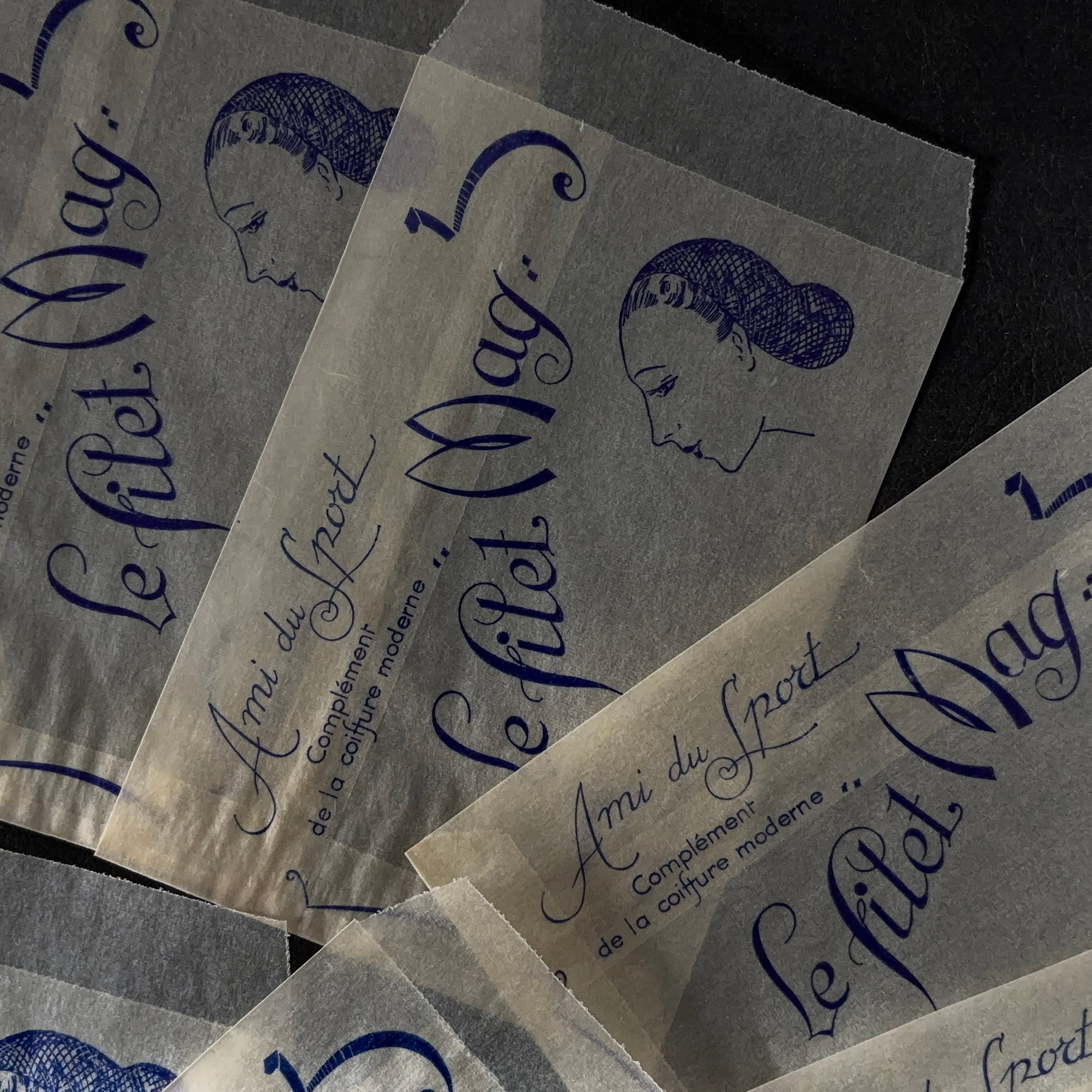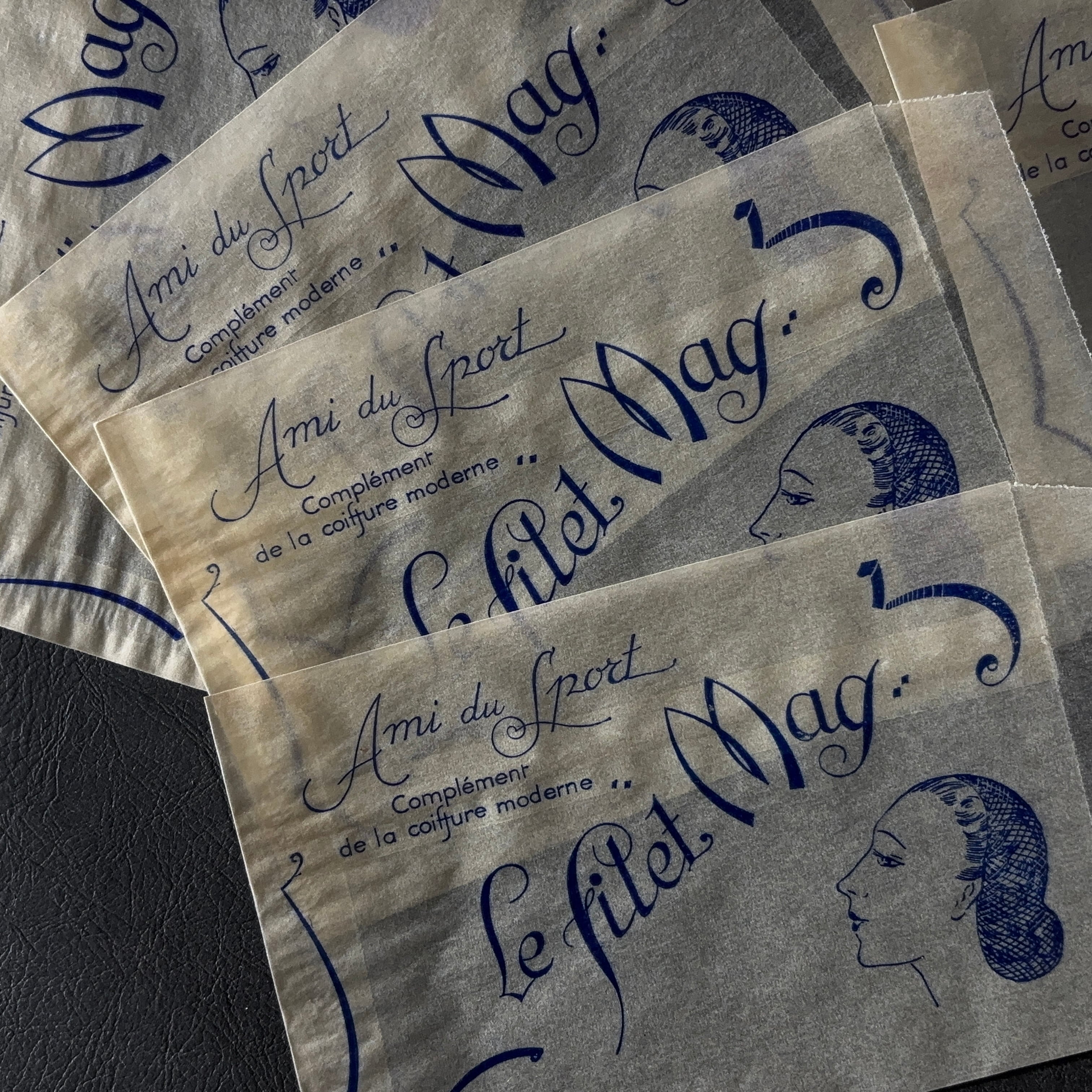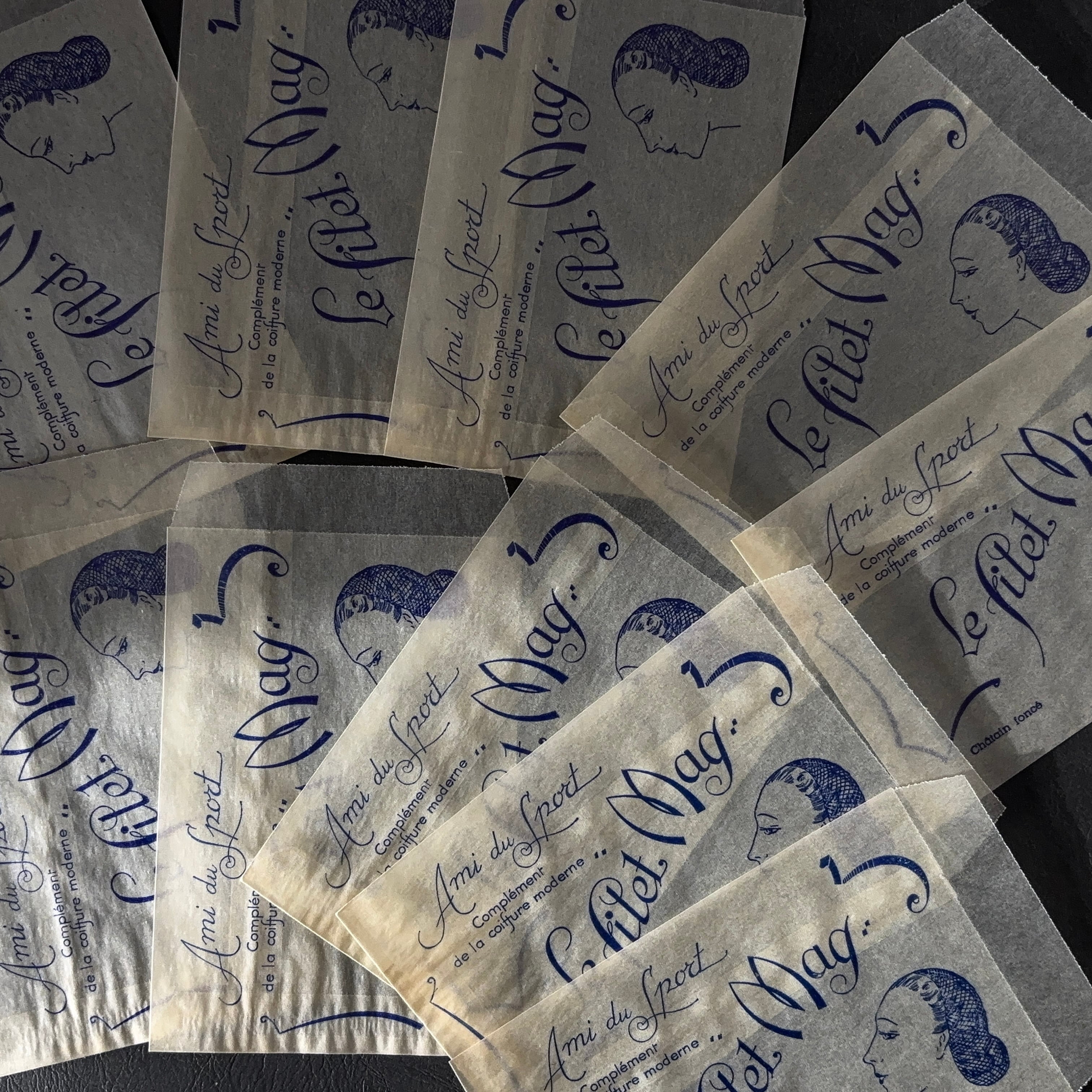 フランス ヴィンテージ 10枚 美容サロン紙袋(グラシン)Le filet Mag 広告デザイン 紙もの 2