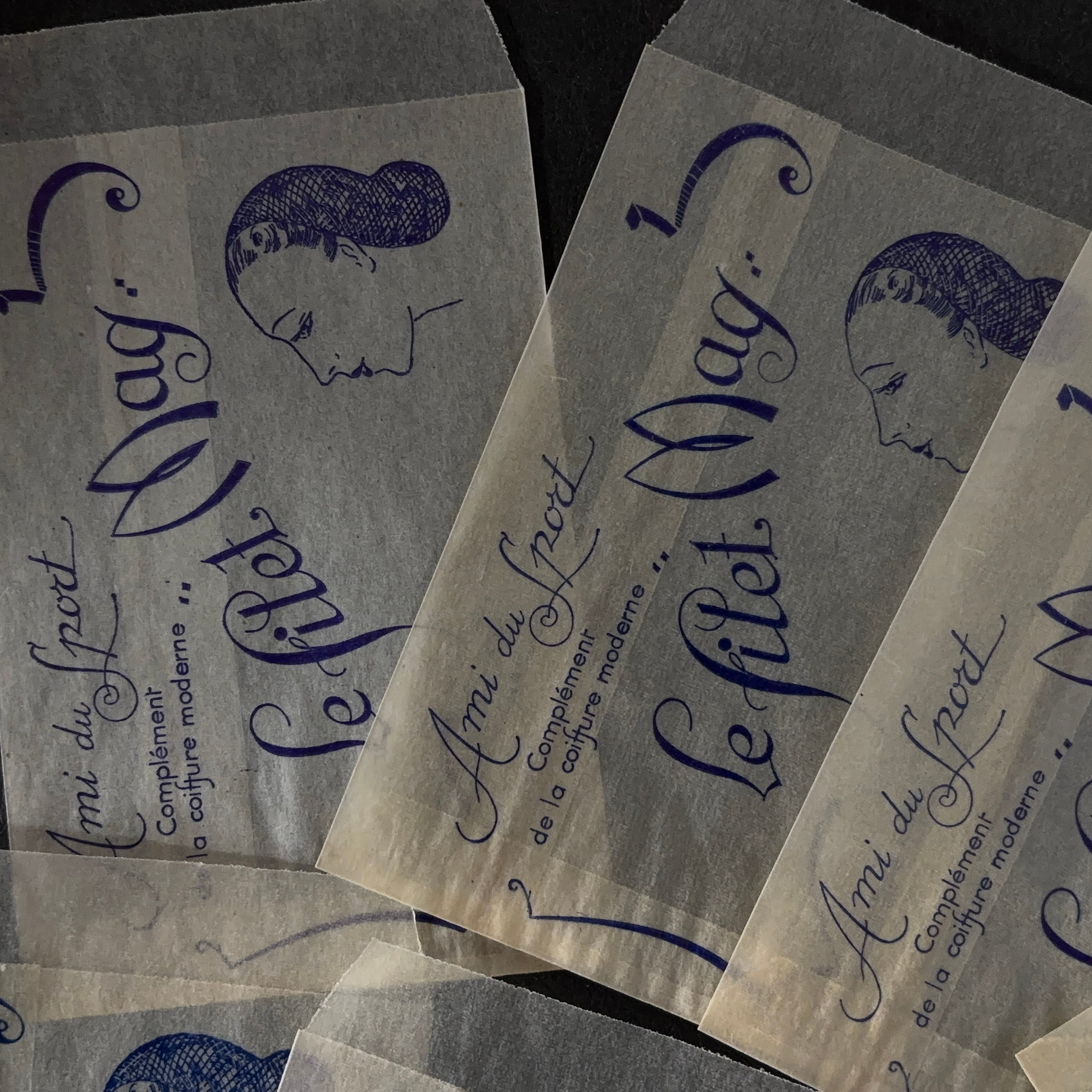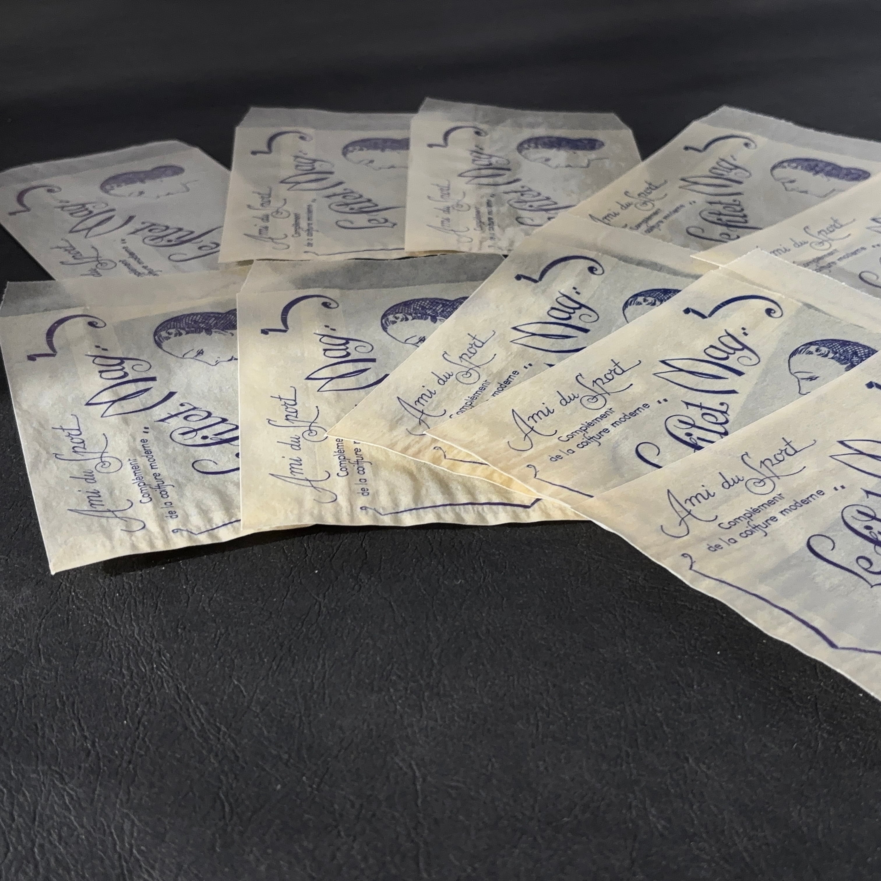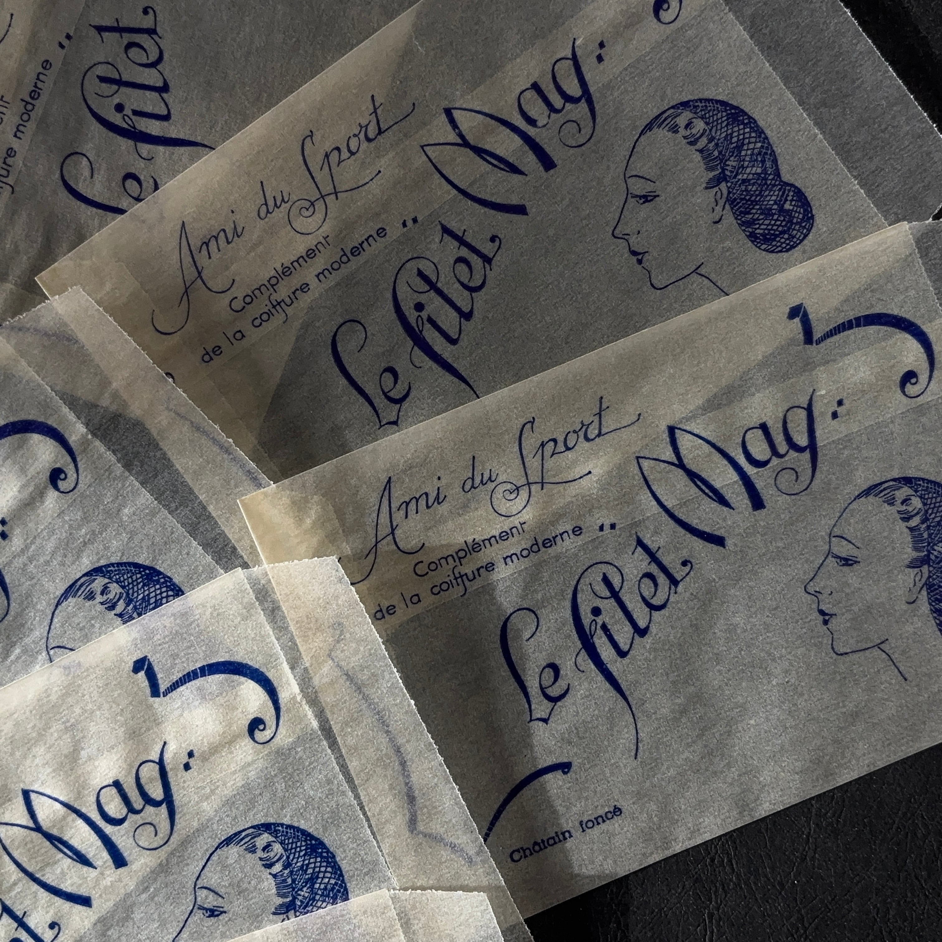 フランス ヴィンテージ 10枚 美容サロン紙袋(グラシン)Le filet Mag 広告デザイン 紙もの 2