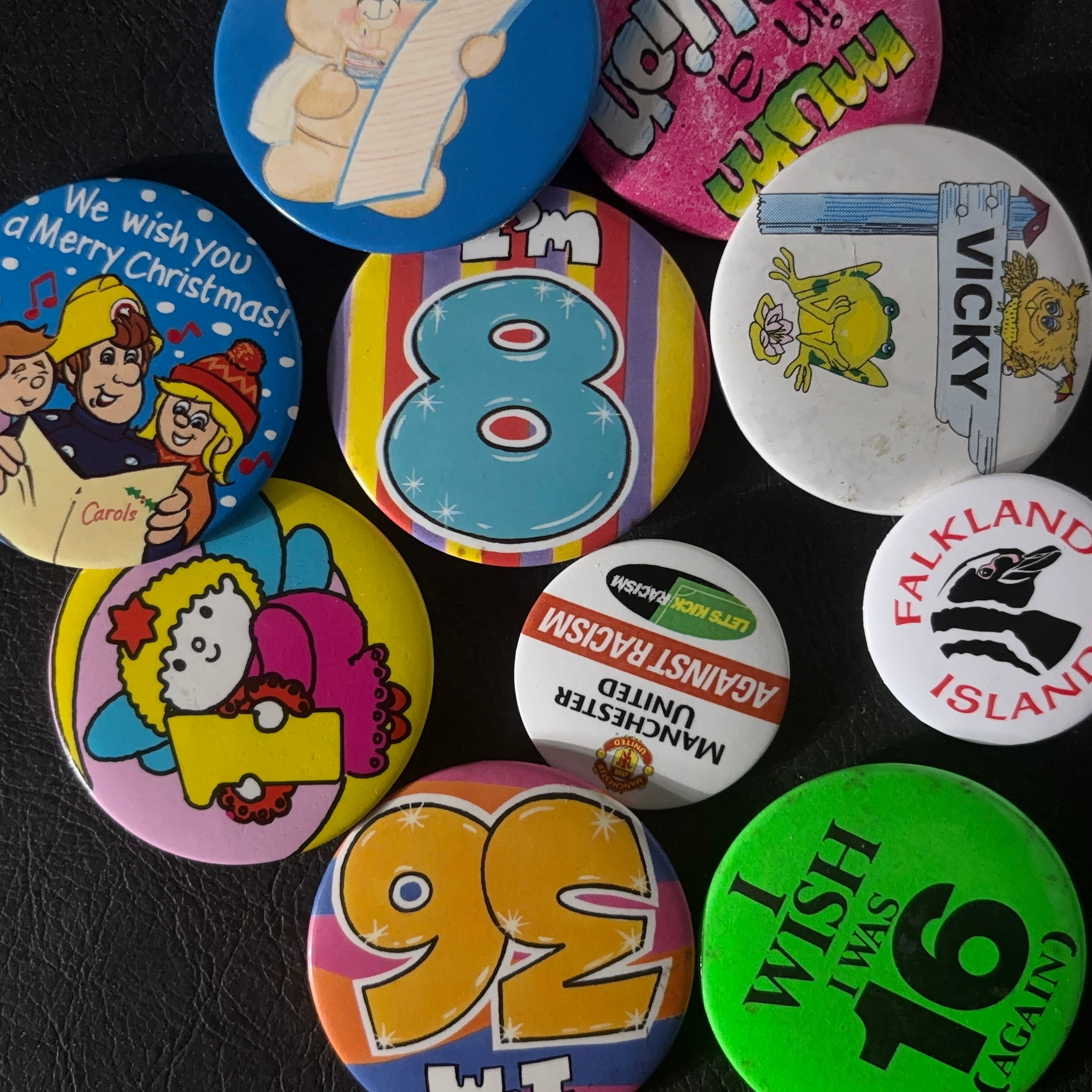 ヴィンテージの缶バッジ10個セットとなります。