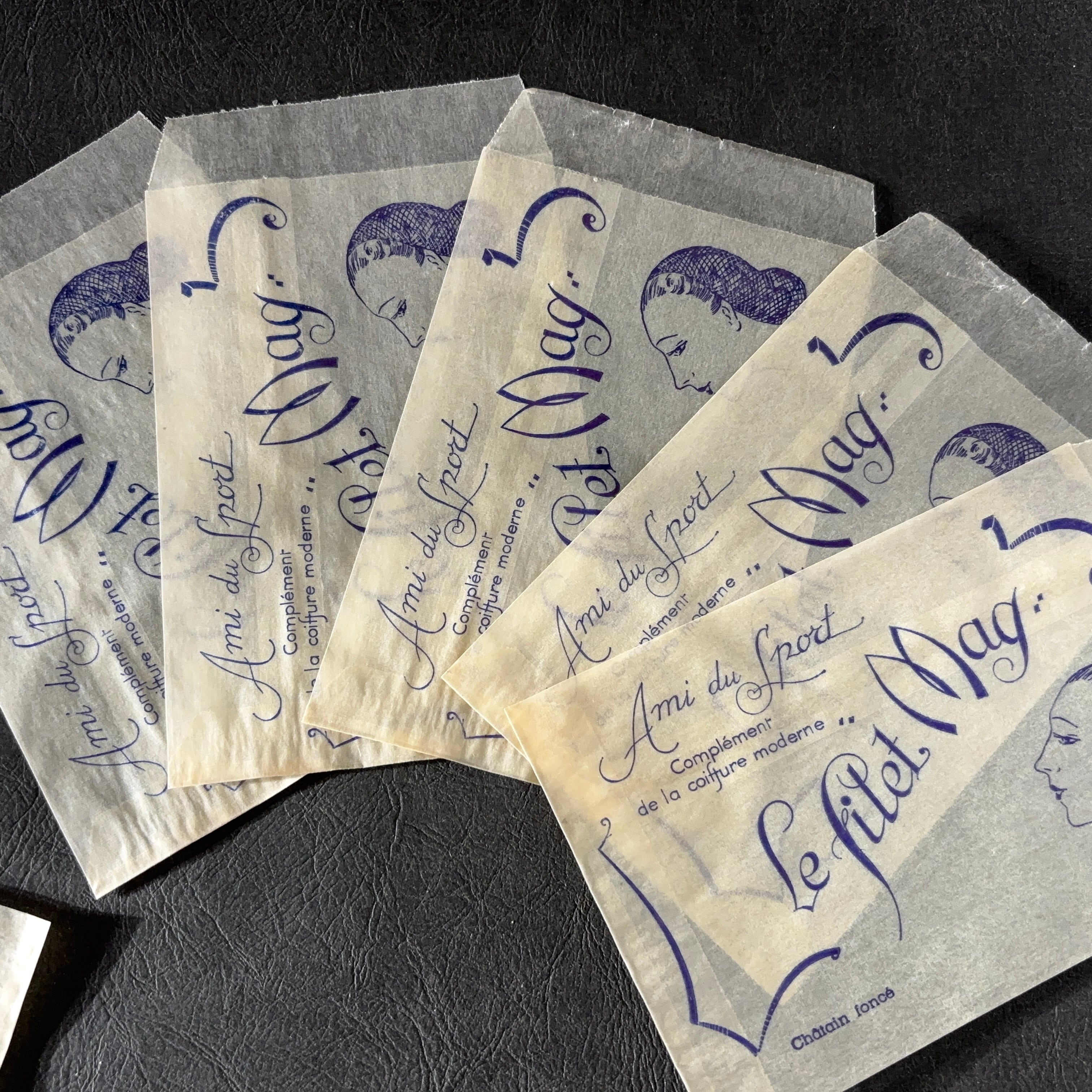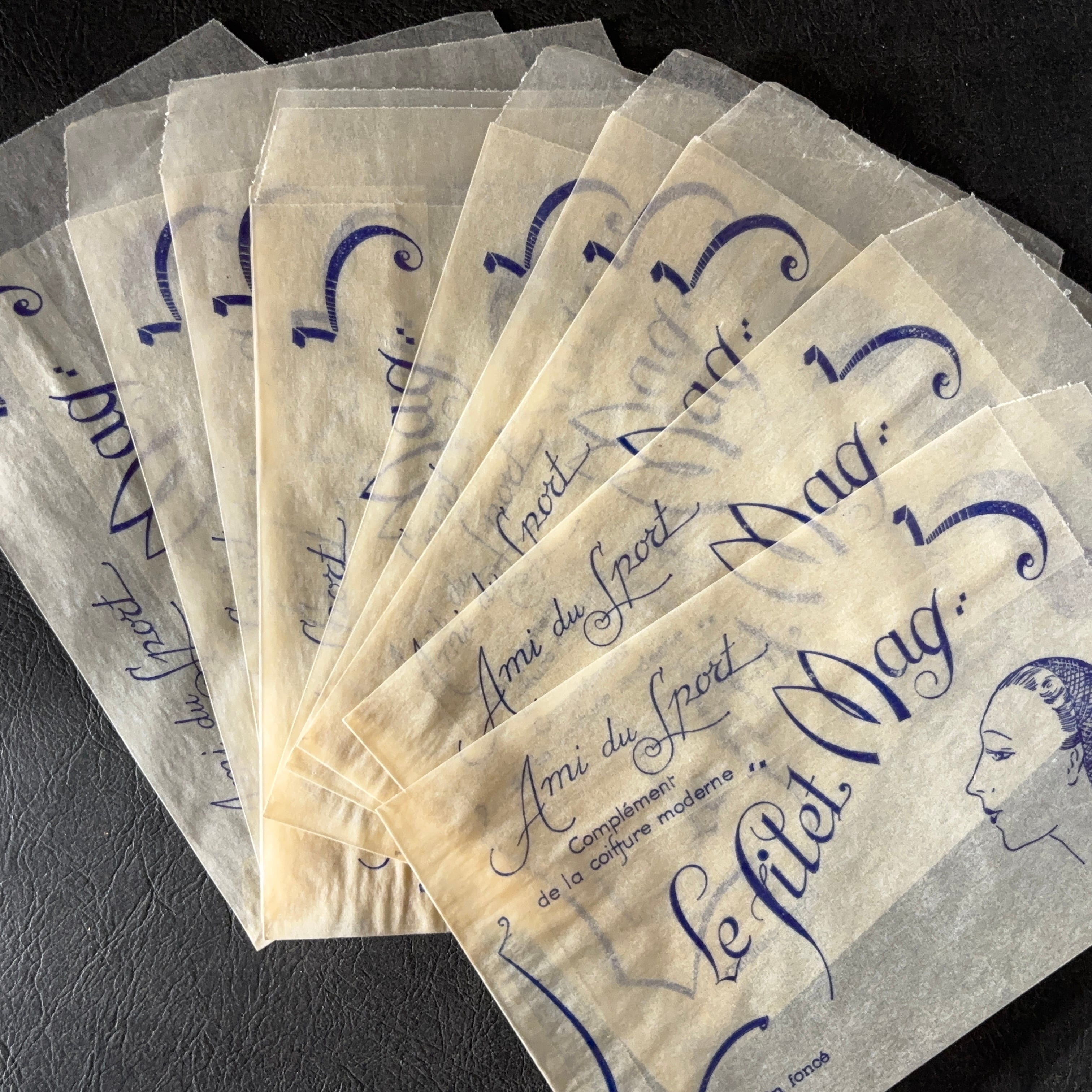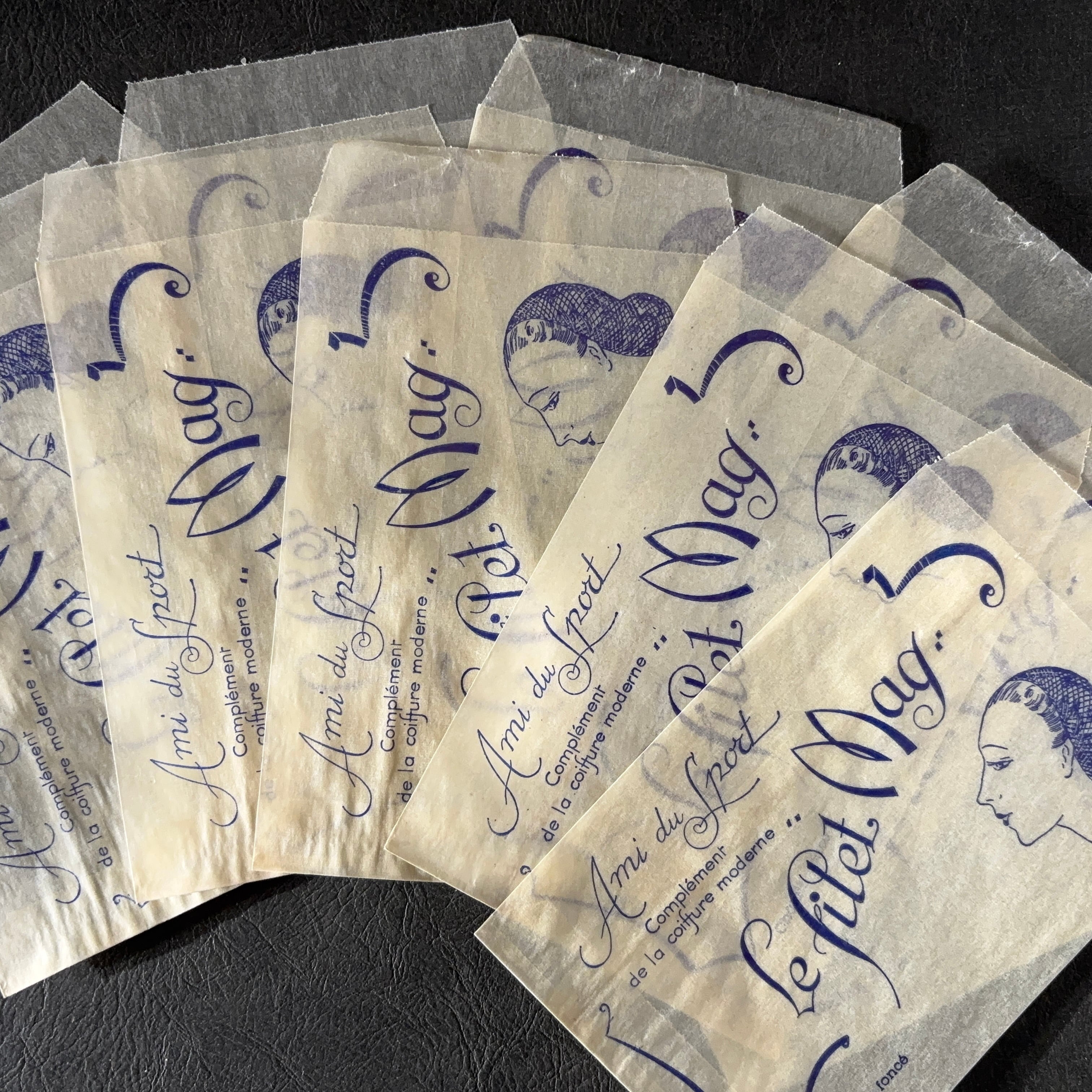 フランス ヴィンテージ 10枚 美容サロン紙袋(グラシン)Le filet Mag 広告デザイン 紙もの 1
