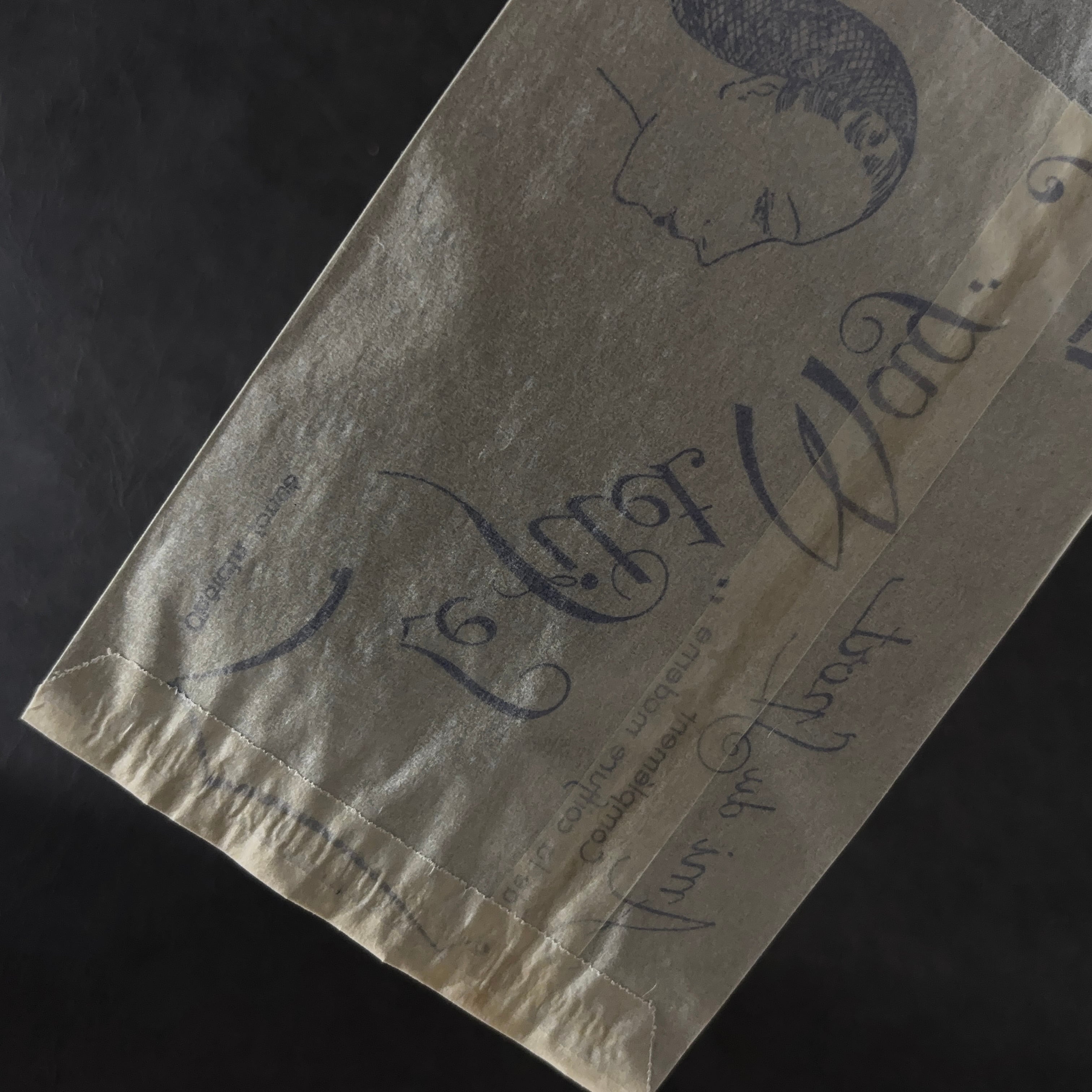薄く透け感のあるグラシン紙に、深いブルーのインクで印刷されており、