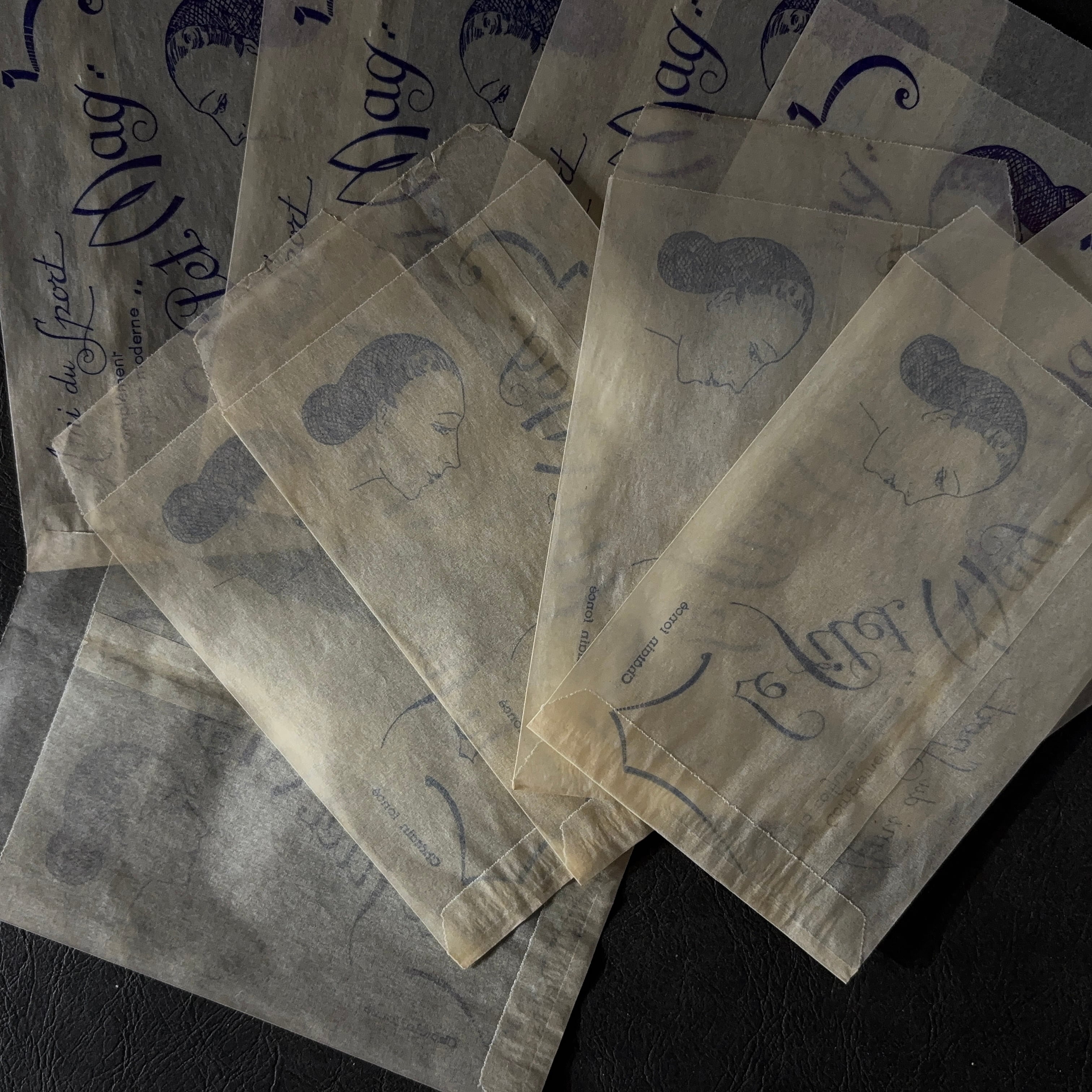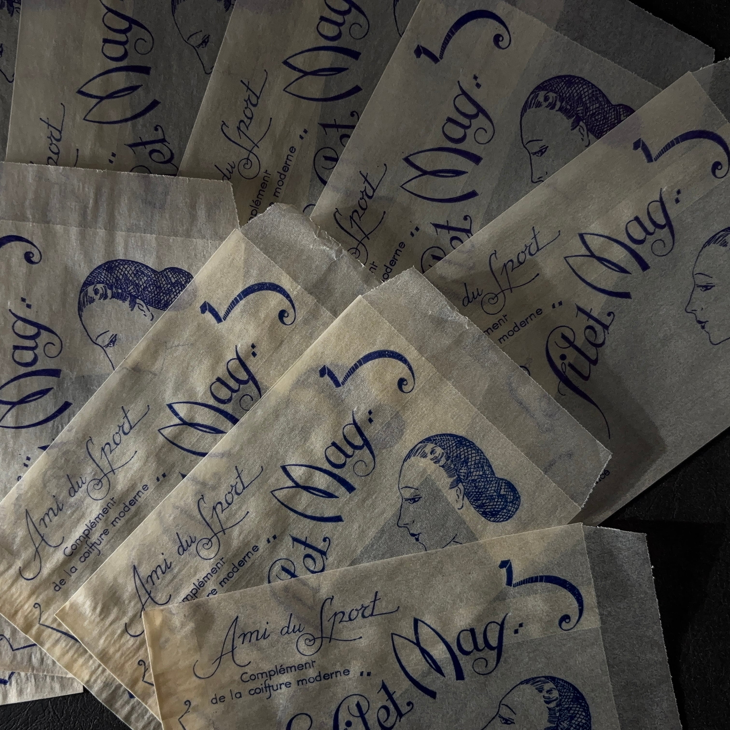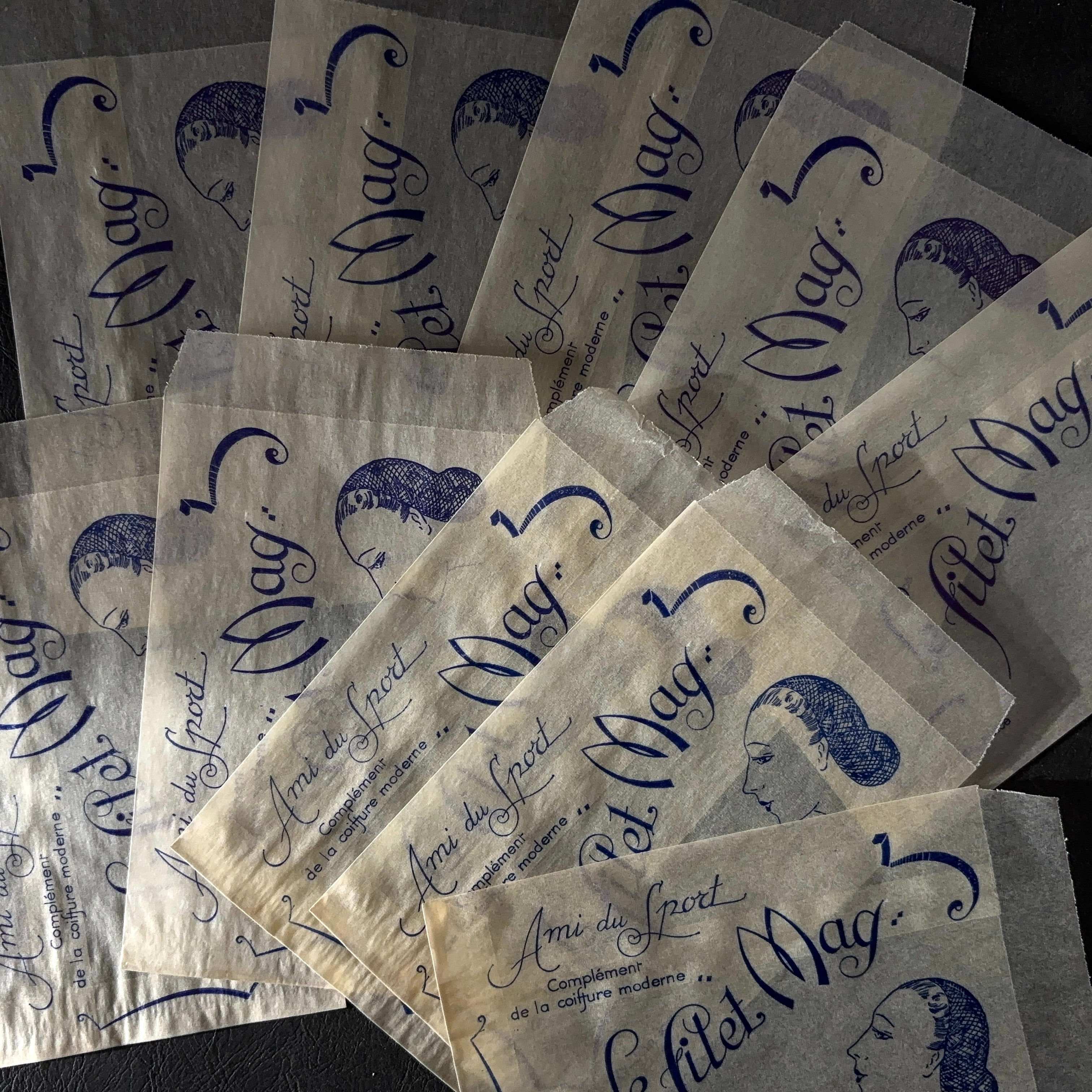 フランス ヴィンテージ 10枚 美容サロン紙袋(グラシン)Le filet Mag 広告デザイン 紙もの 3