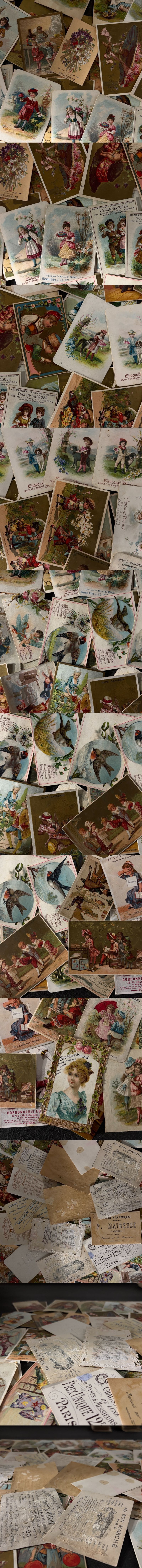 フランス アンティーク クロモスカード 100枚セット 1900年代初頭~ 広告 紙もの・ジャンクジャーナル素材 2604002-2