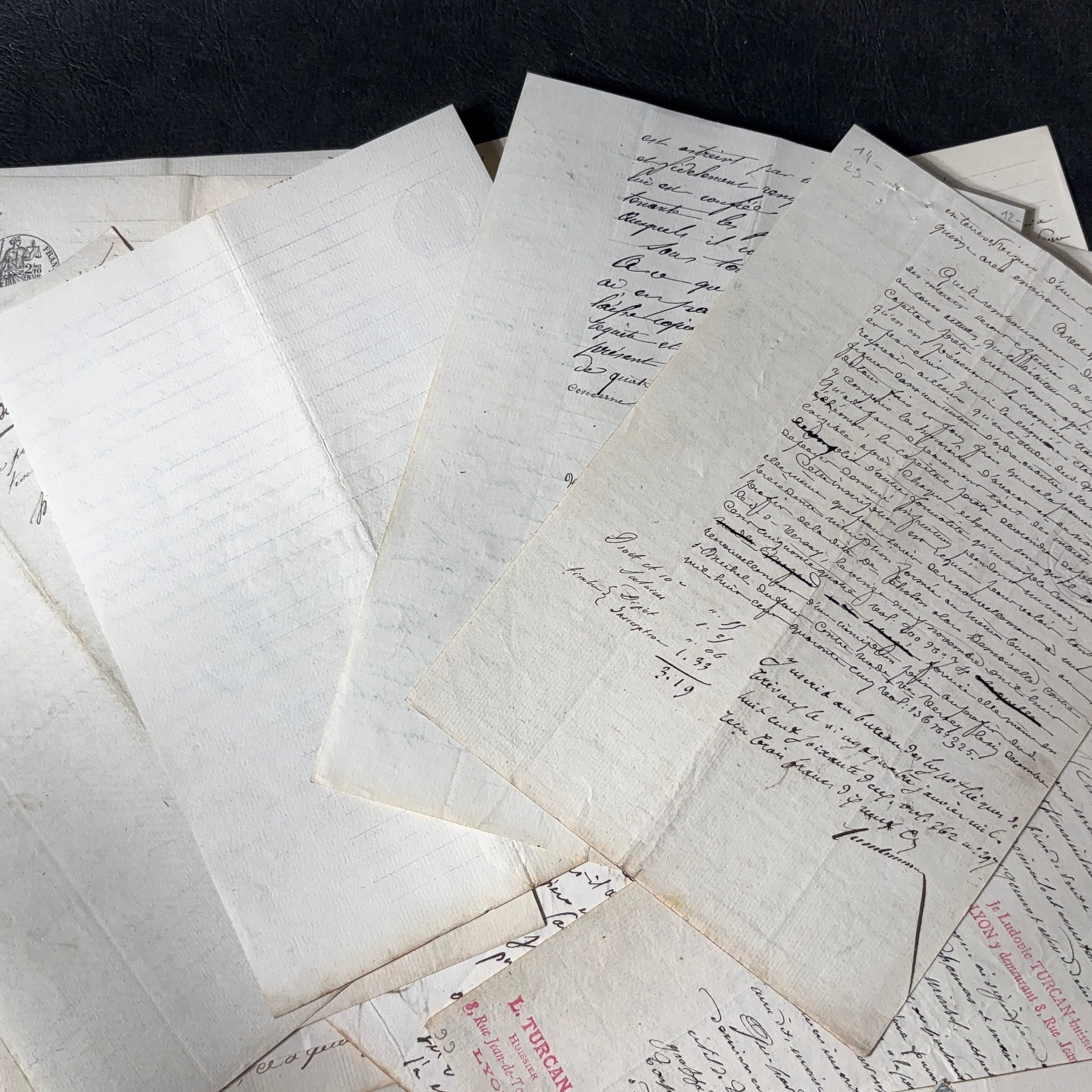 19世紀フランスで実際に使われていた古文書などの手書き資料。
